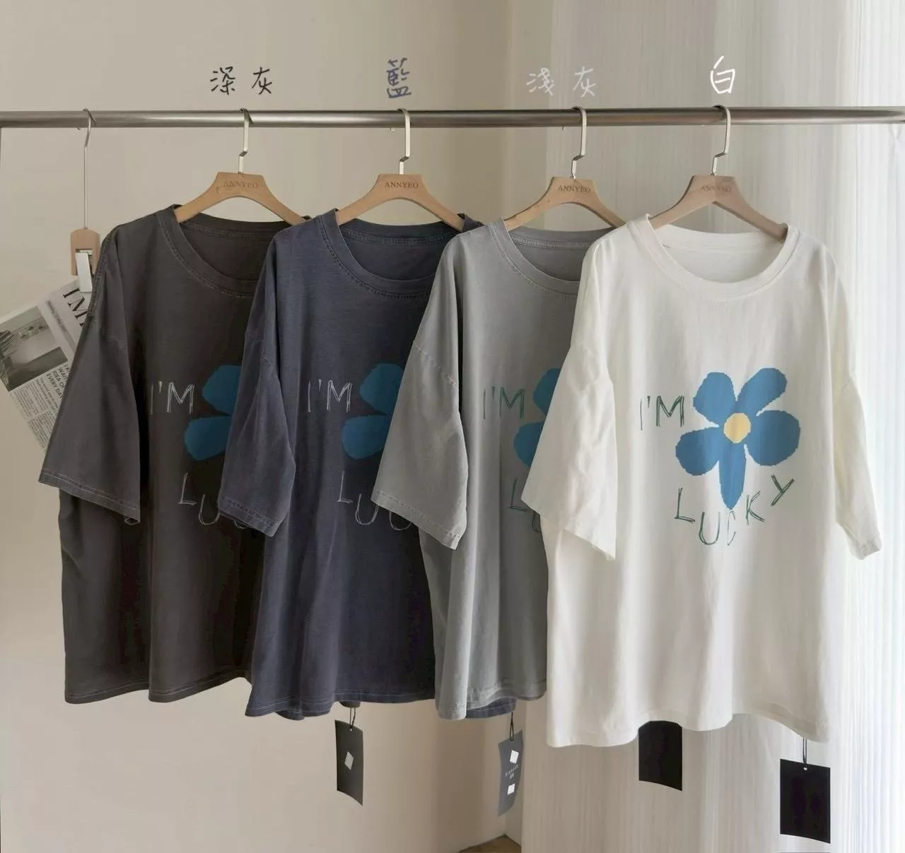 洗水面料花朵大T 藍1
