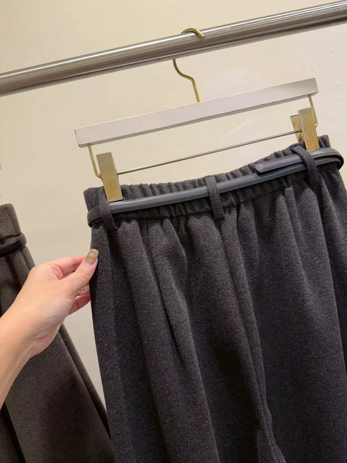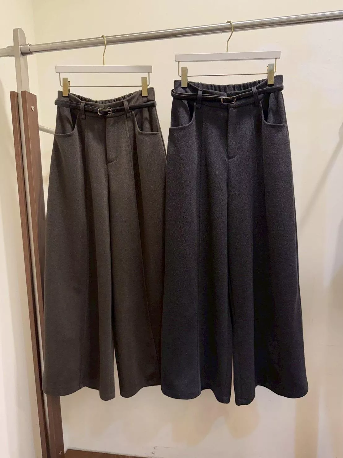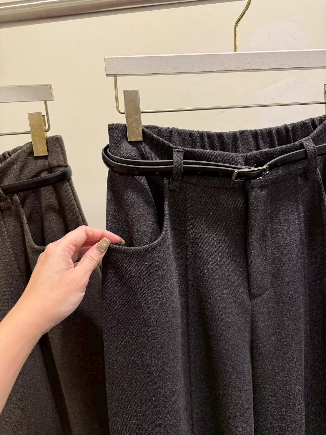 後鬆緊呢料磨毛直筒寬褲 #8891