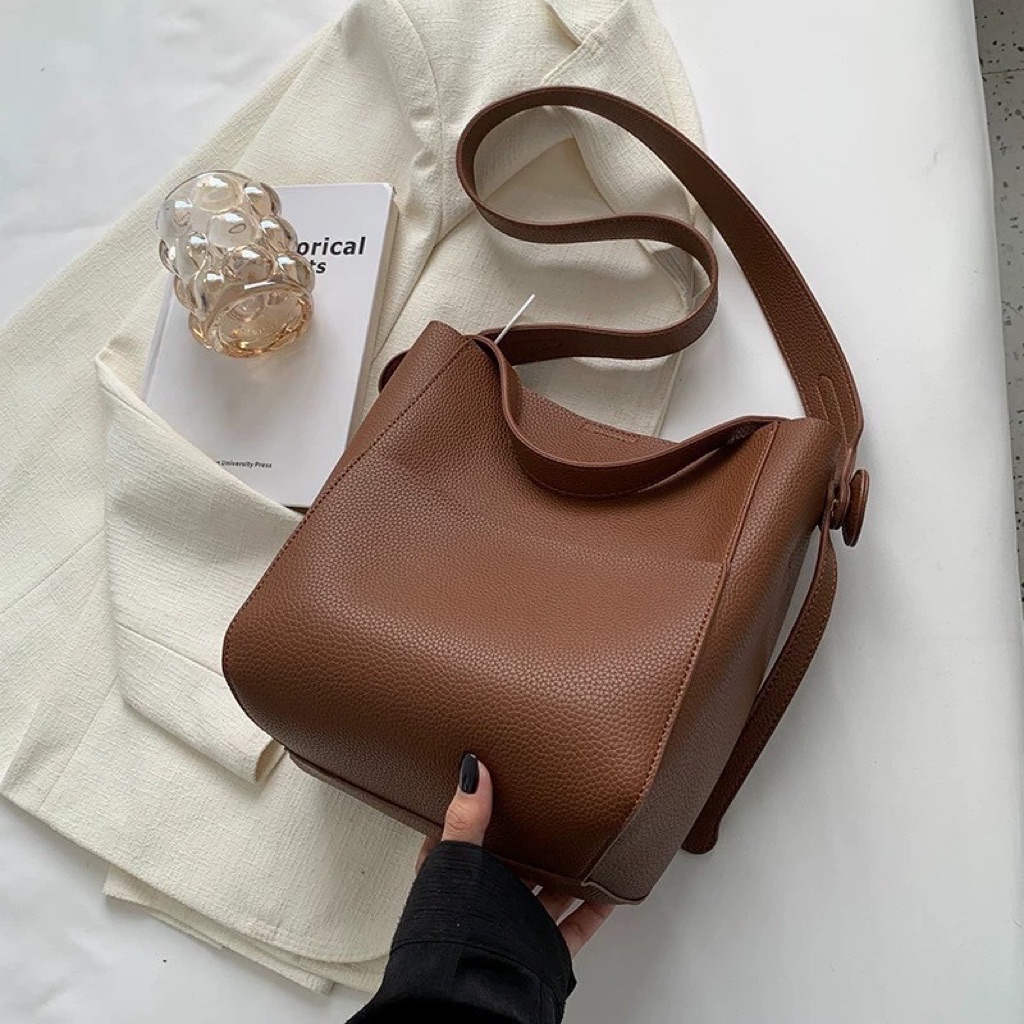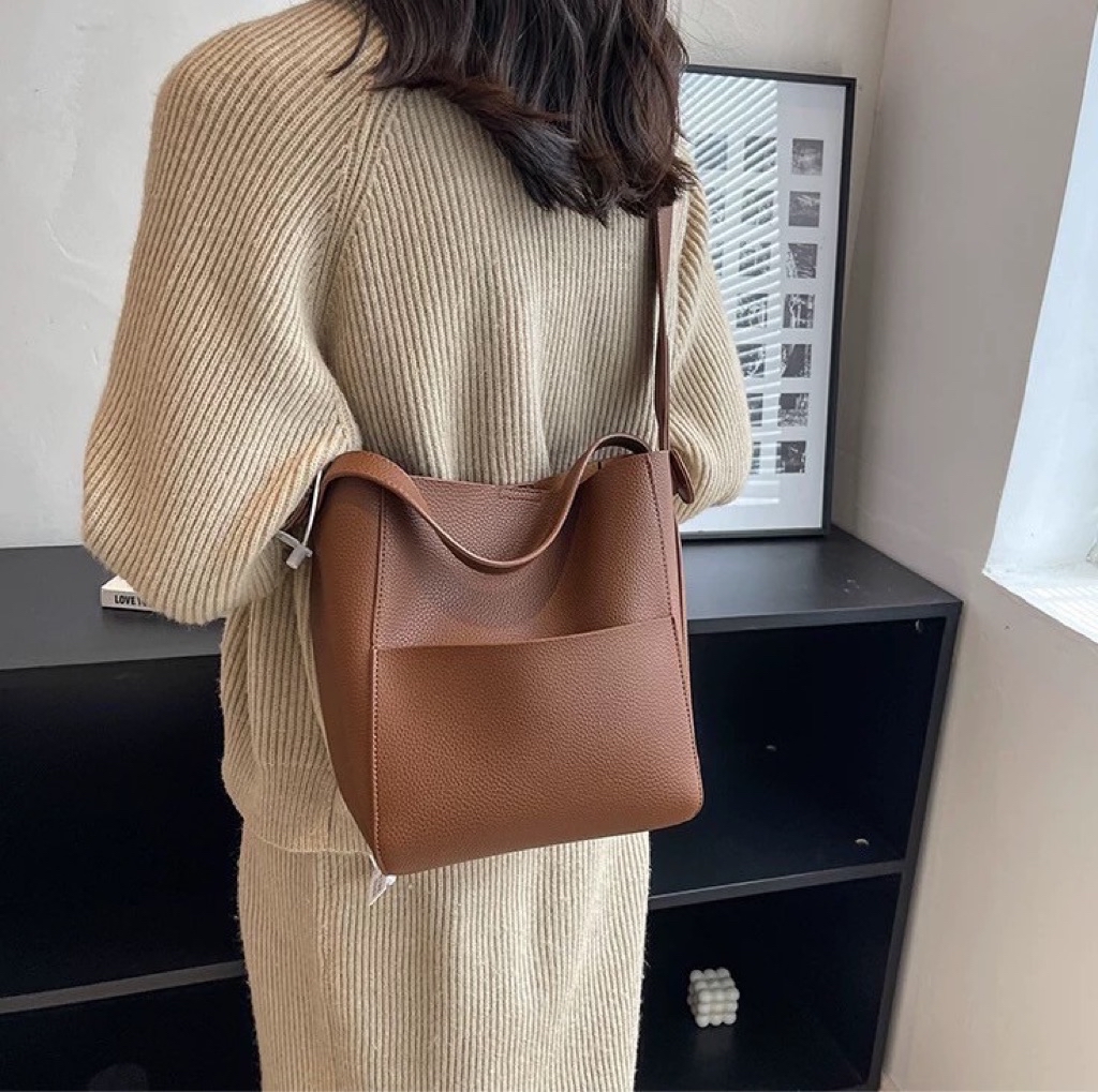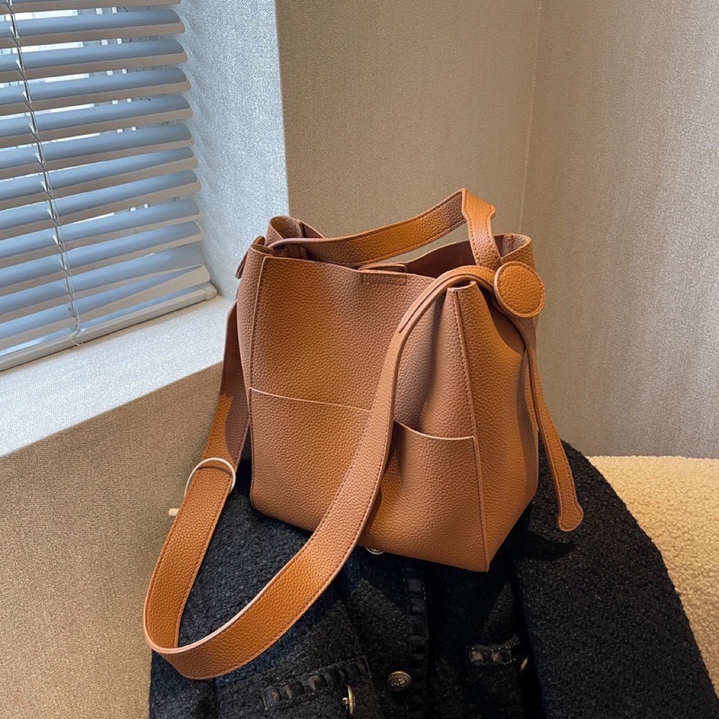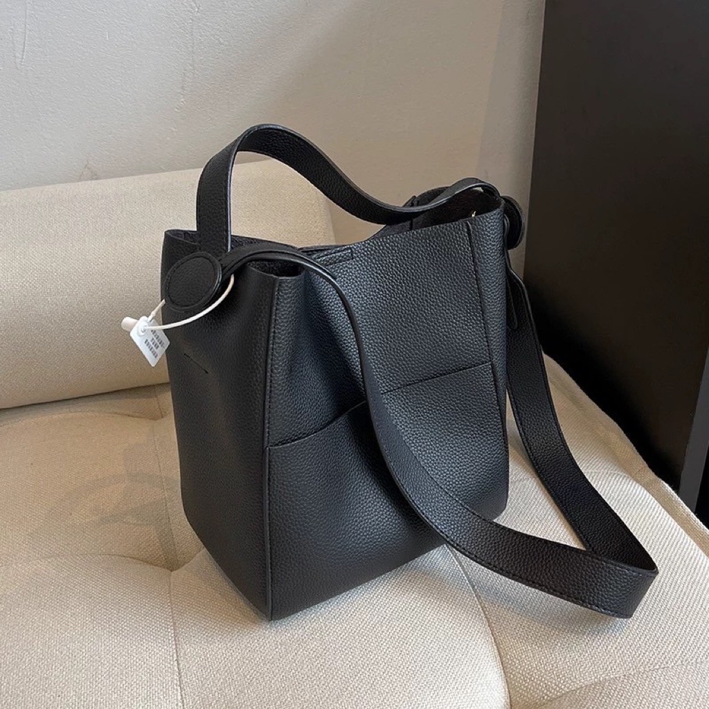 🔸復古簡約軟皮單肩大容量百搭通勤水桶包