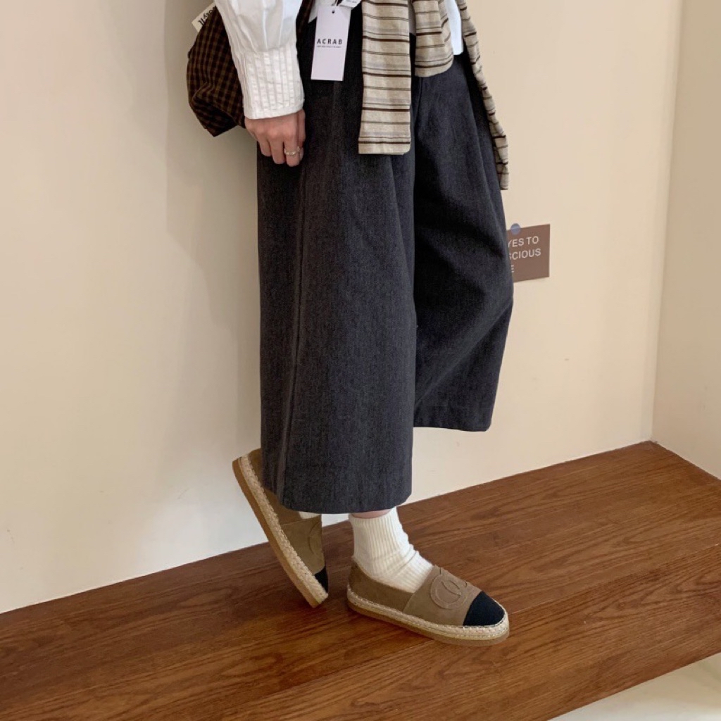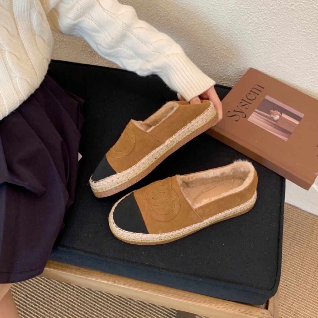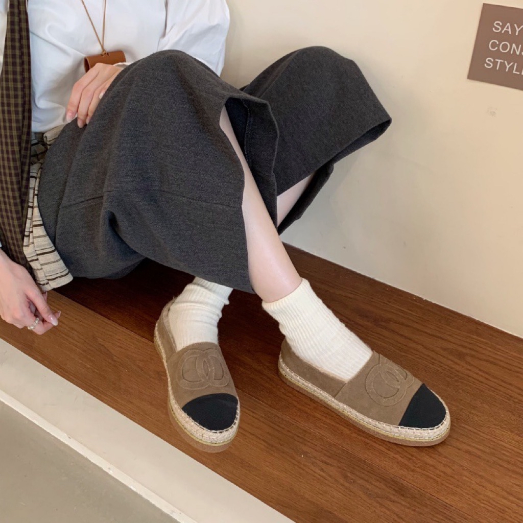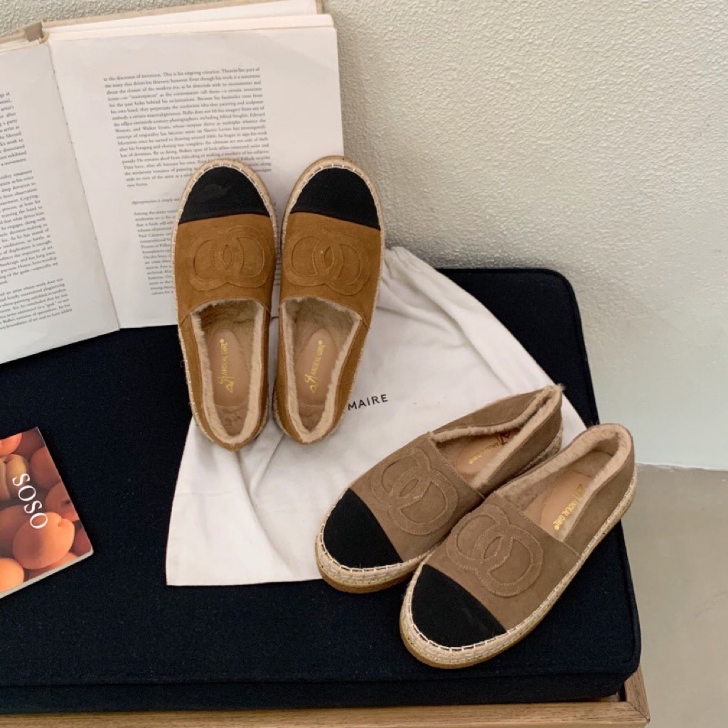 🇰🇷正韓牛麂皮雙圈標誌拼接草編軟Q加絨樂福漁夫鞋