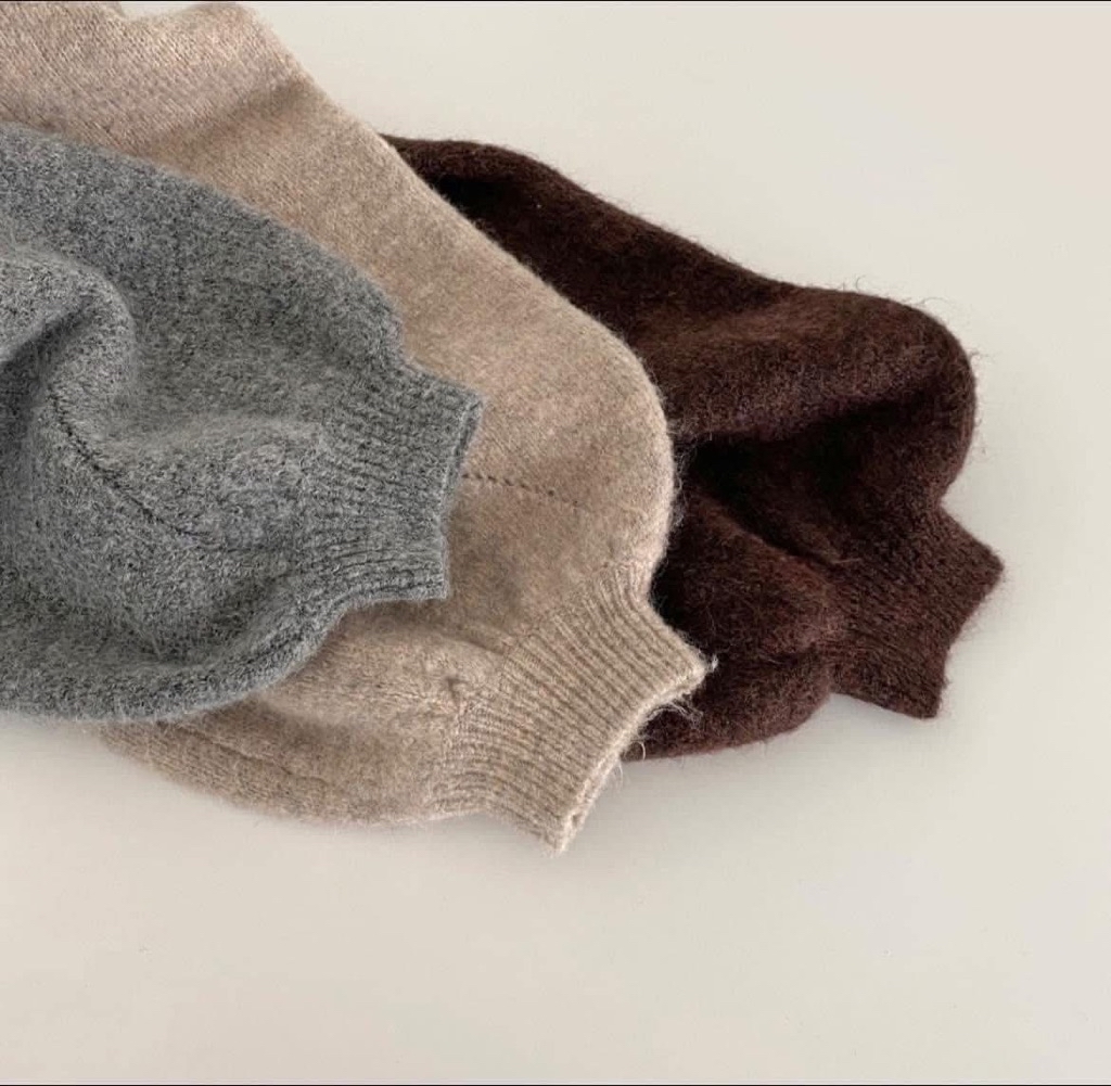 ᴍᴀᴅᴇ ɪɴ ᴋᴏʀᴇᴀ -🇰🇷 #正韓追加追加🙌🙌下襬前短後長設計顯瘦又顯腳長~~~#澎袖設計更顯可愛材質超舒服 😍😍🔺寬鬆澎袖毛衣 #Q652顏色:杏/咖/灰尺寸:胸74 / 長69