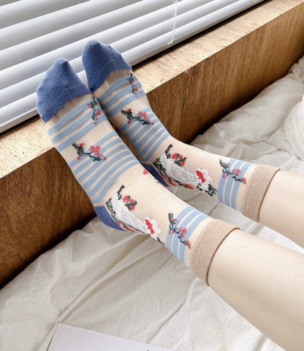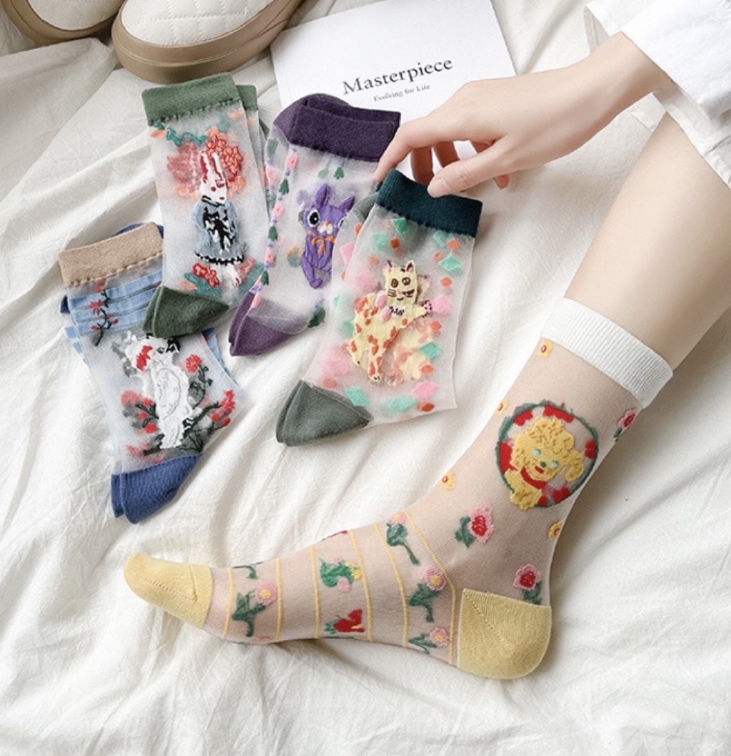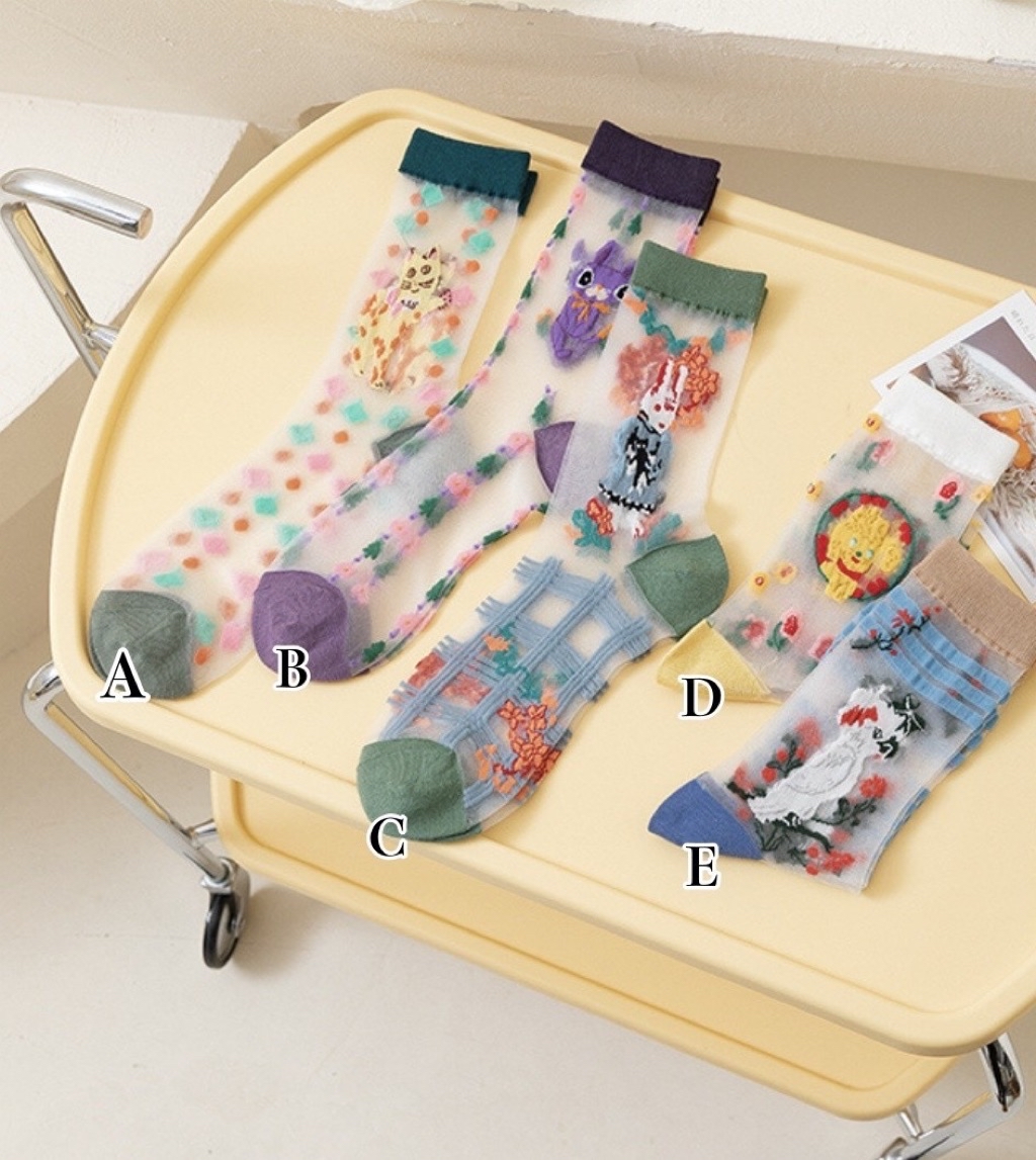 日系卡通動物透明玻璃短襪✅貨號:26041710顏色:A/B/C/D/E精緻的刺繡圖騰透氣材質夏天穿了不悶熱搭配涼鞋也超好看❤️