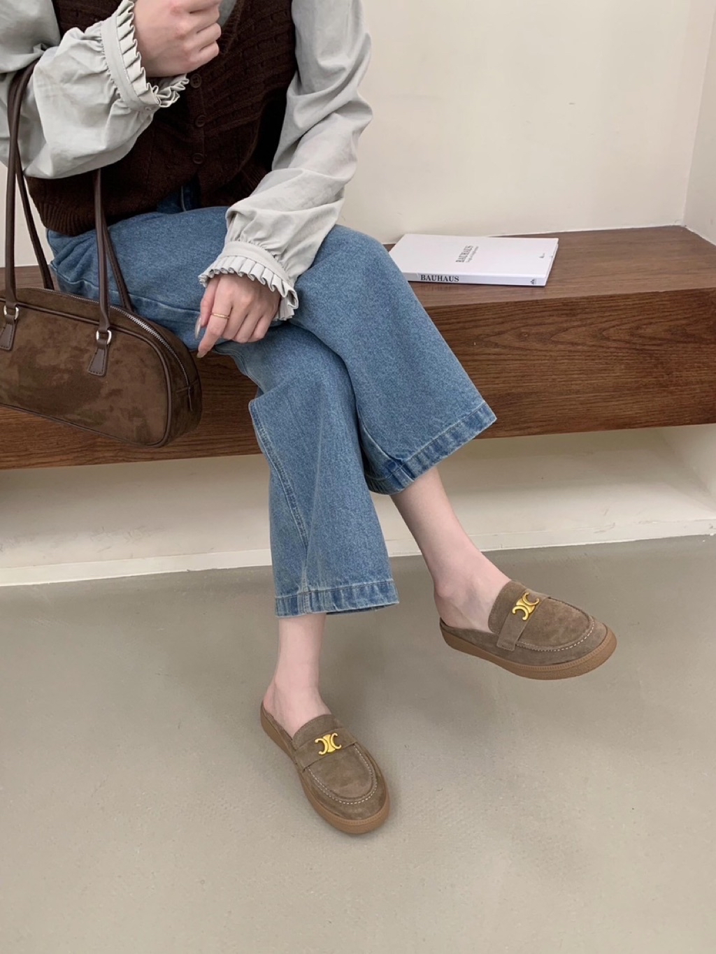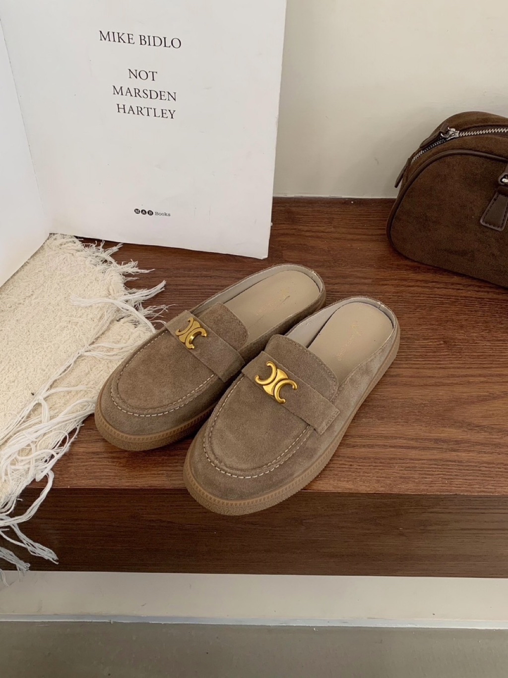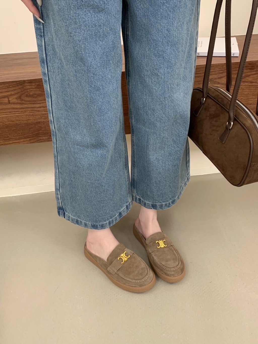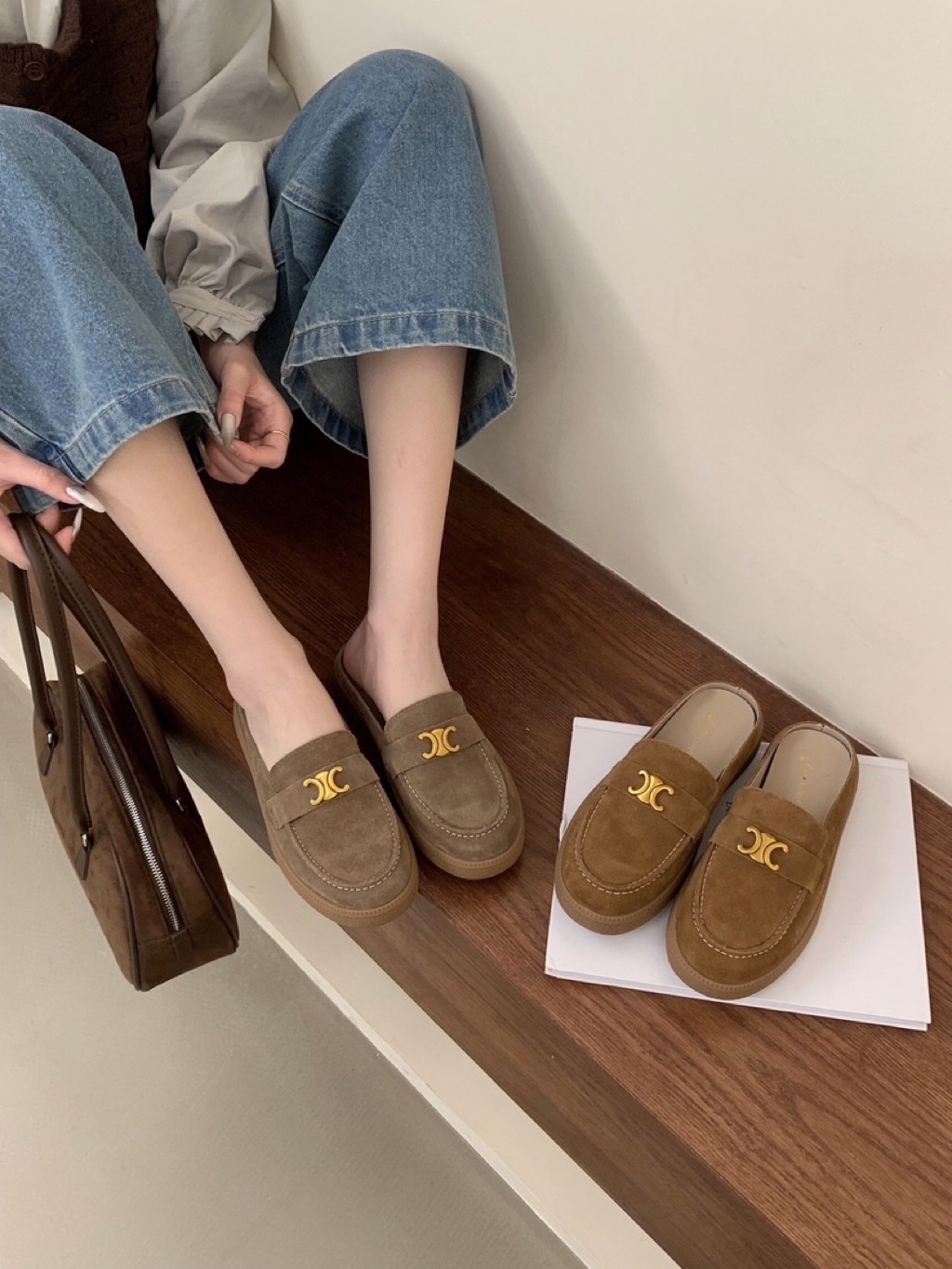 🇰🇷正韓真皮電鍍金凱旋門釦軟底半拖