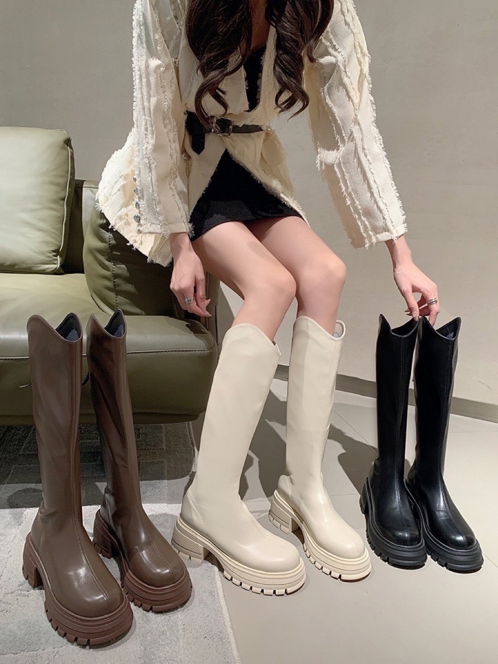 1,480 🇰🇷正韓真皮復古帥氣皮帶釦騎士短靴 790 🇰🇷正韓復古翻毛加絨保暖短筒厚底雪靴 1,150 🇰🇷正韓真皮電鍍金凱旋門釦軟底半拖 2,180 🇰🇷正韓RV網布透氣水鑽方釦厚底增高老爹鞋 淚之女王 金秀賢
