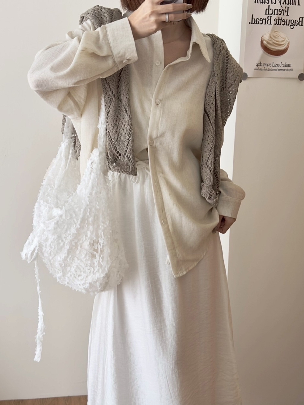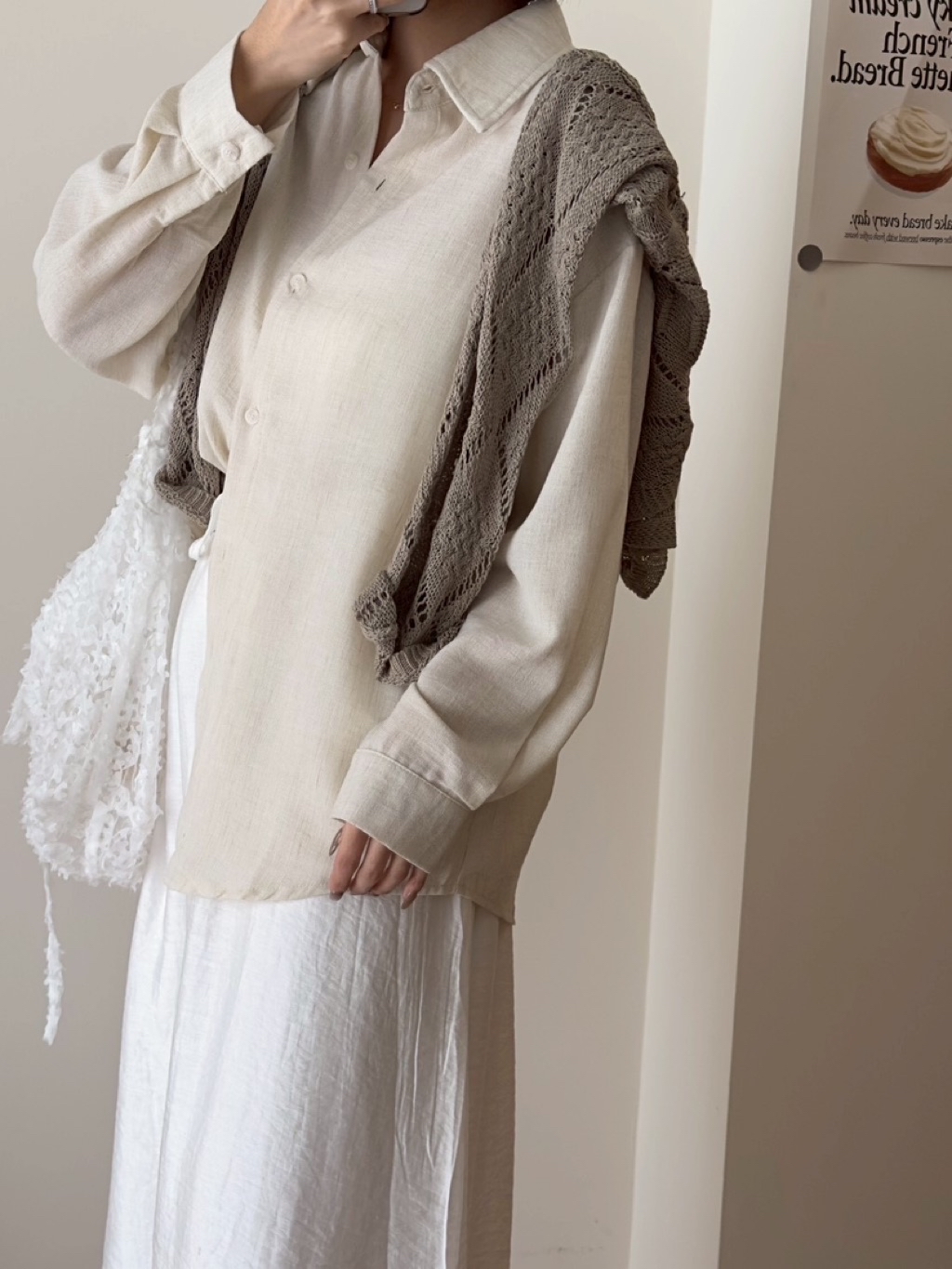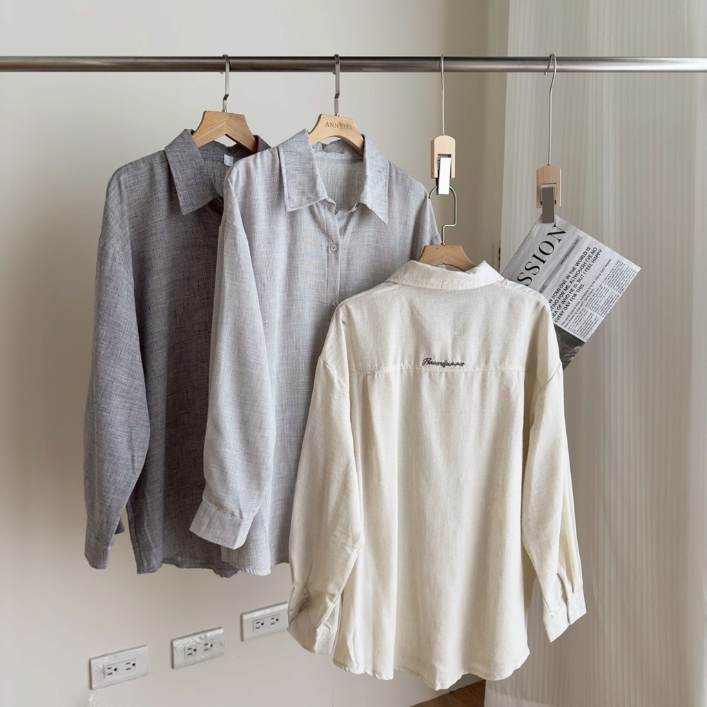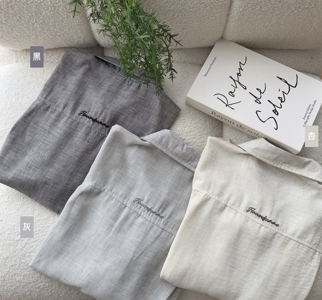 韓🇰🇷秋款🍂後刺繡英文麻棉襯衫🤍🤍