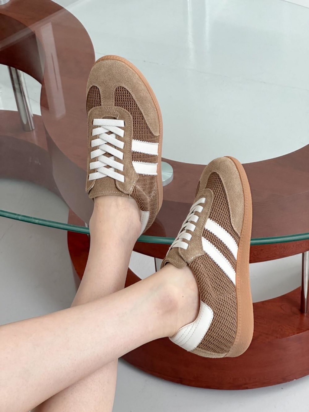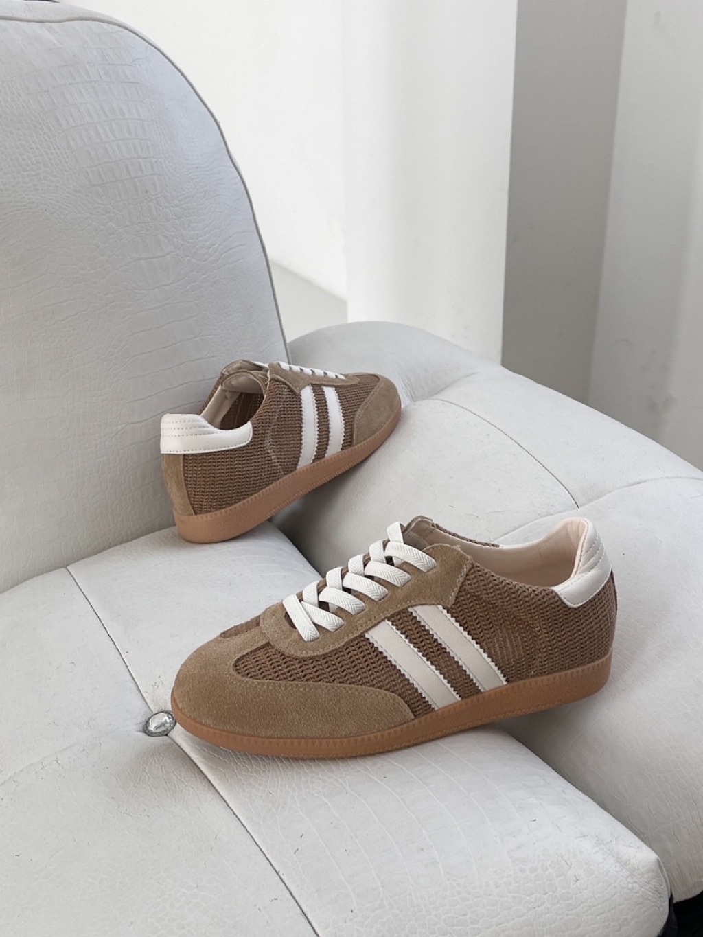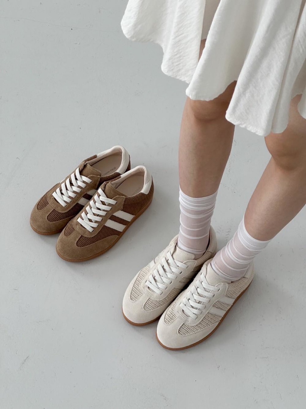 🇰🇷正韓東大門真皮透氣舒適拼接雙條槓德訓休閒鞋