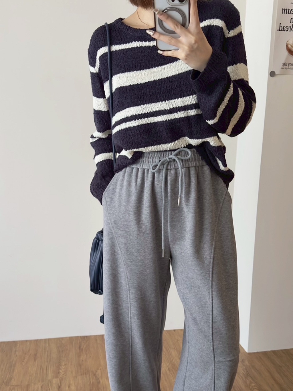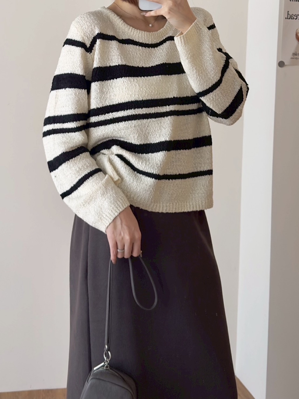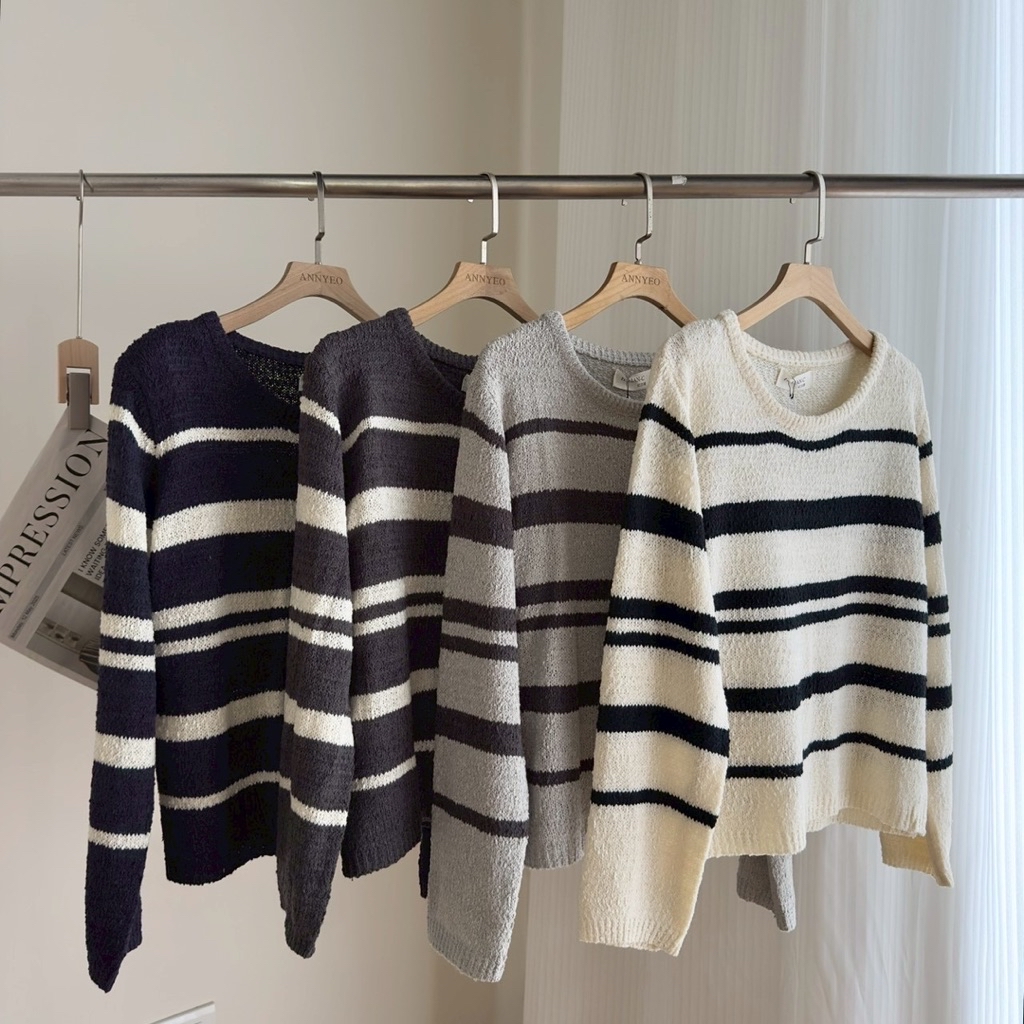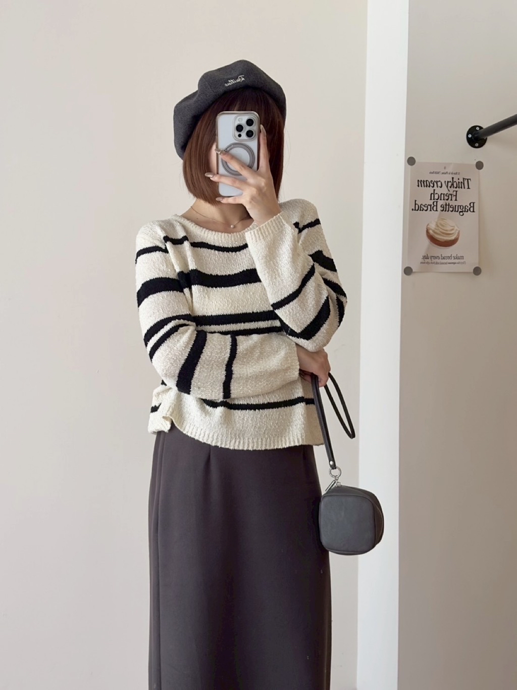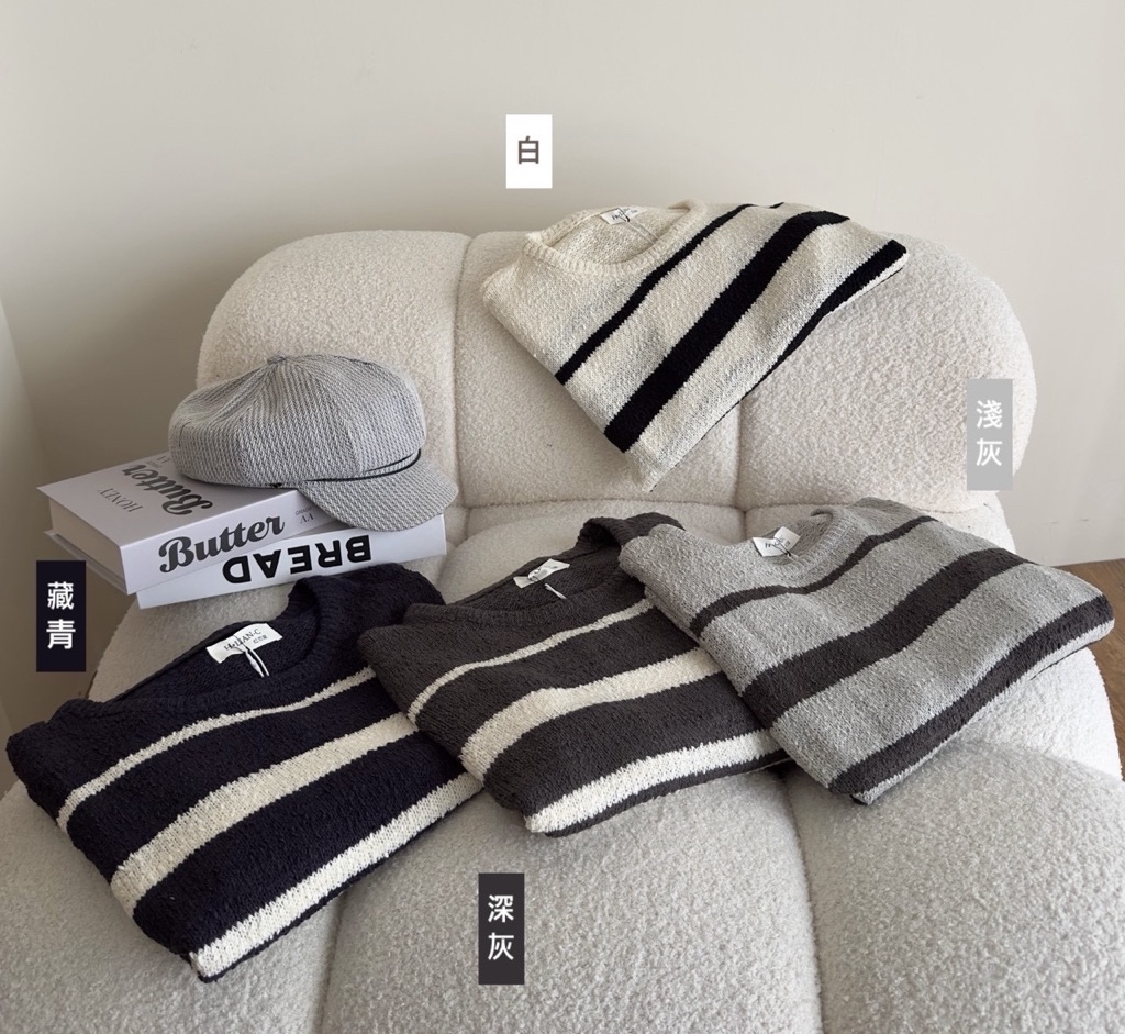 ✨New新款號:8902🇰🇷韓秋款🍂橫條顆粒感針織上衣🤍🤍面料敲好顏色:白、藏青、淺灰、深灰胸寬:54 衣長:57