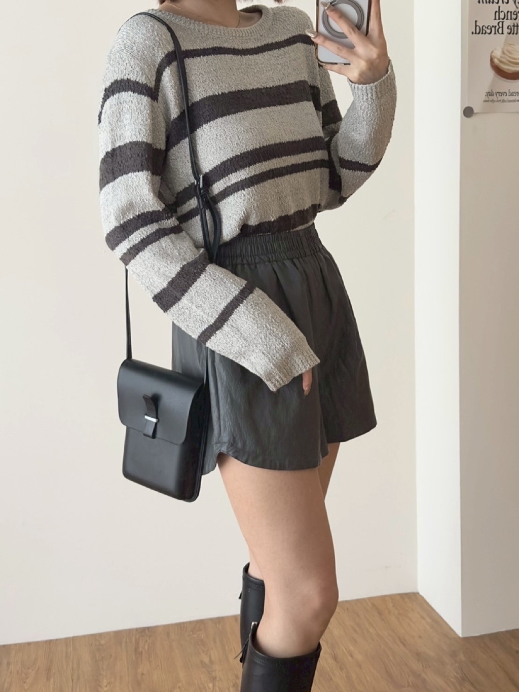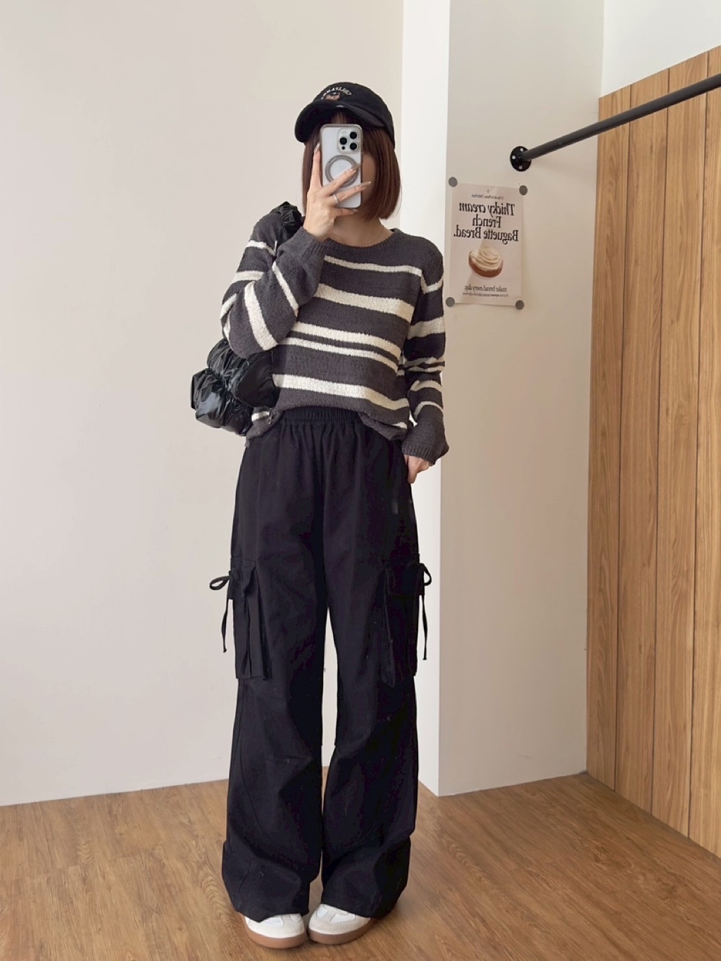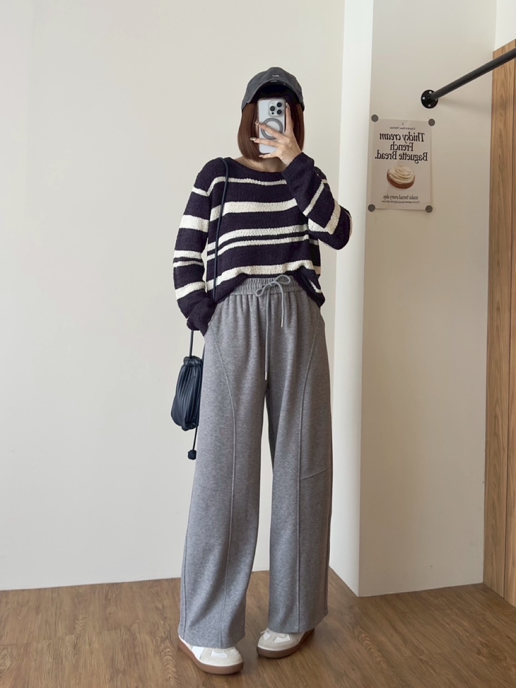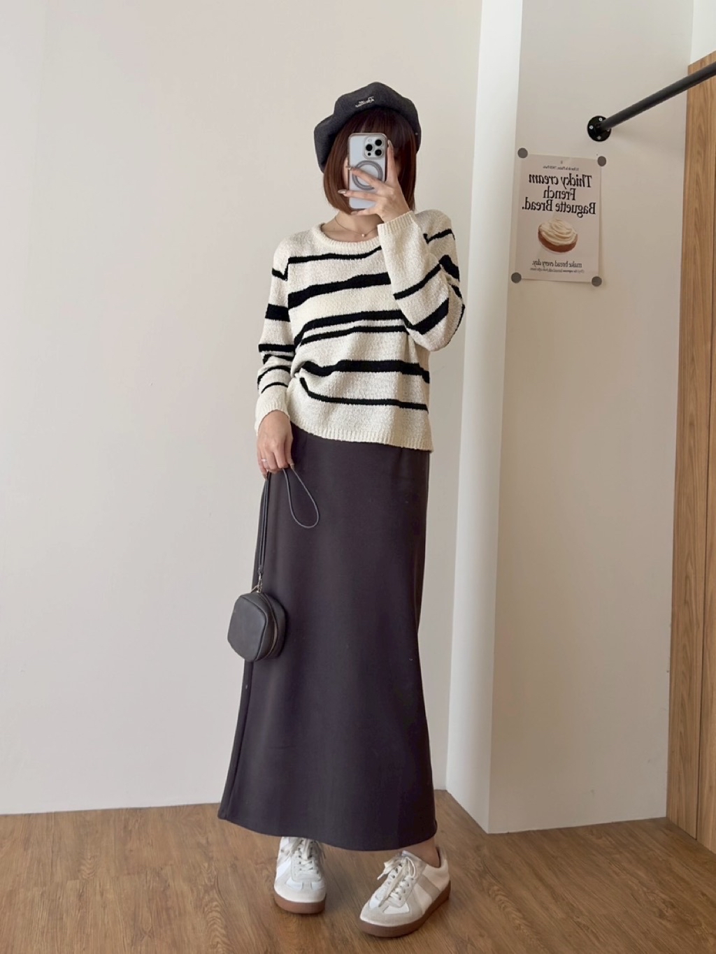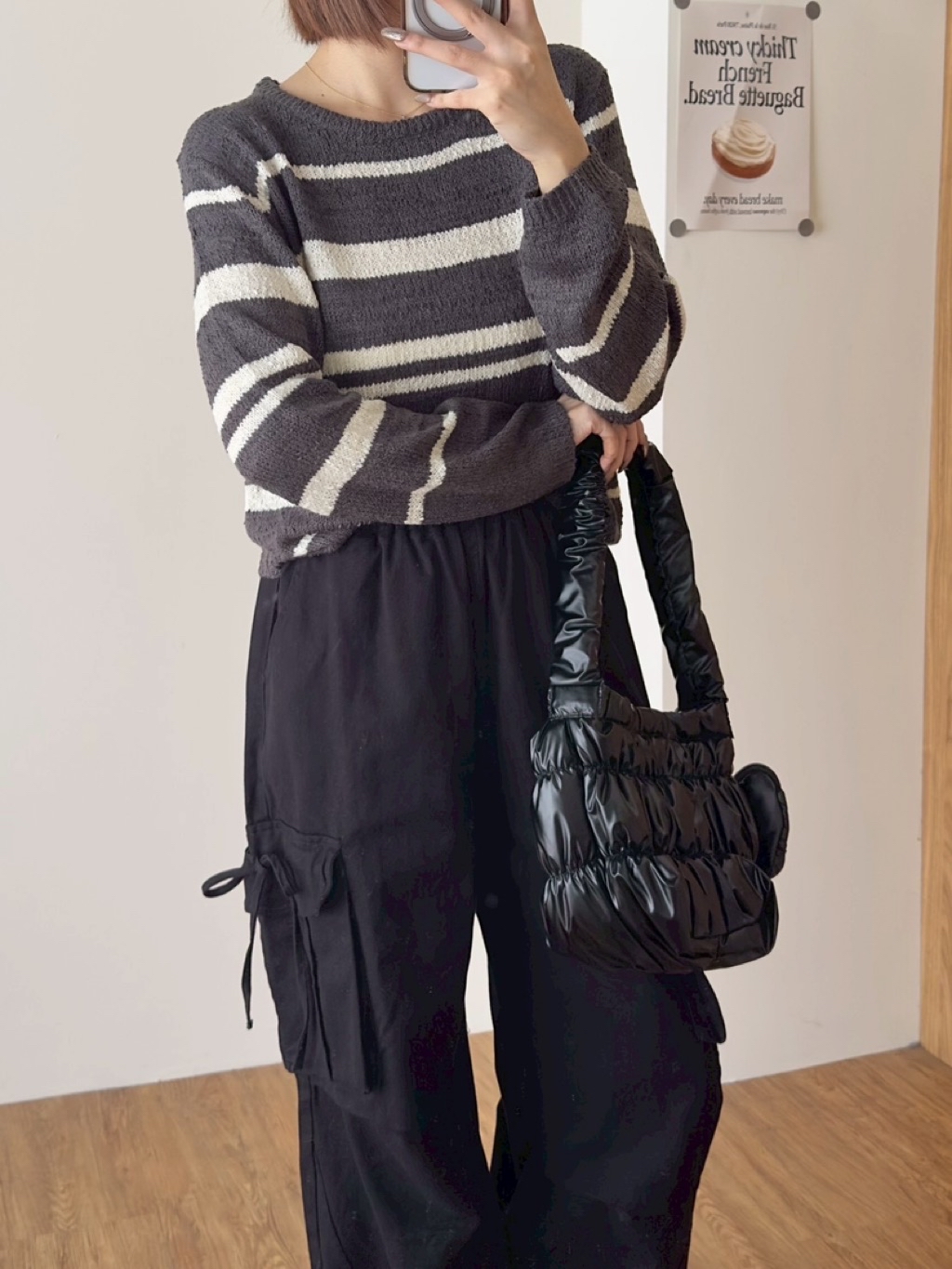 ✨New新款號:8902🇰🇷韓秋款🍂橫條顆粒感針織上衣🤍🤍面料敲好顏色:白、藏青、淺灰、深灰胸寬:54 衣長:57