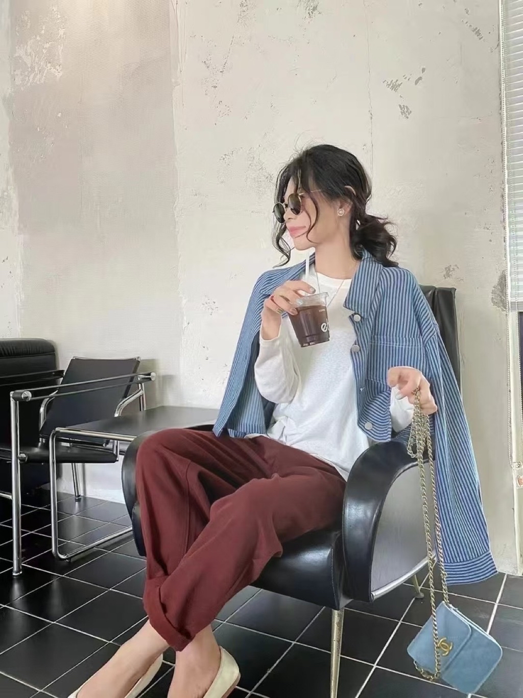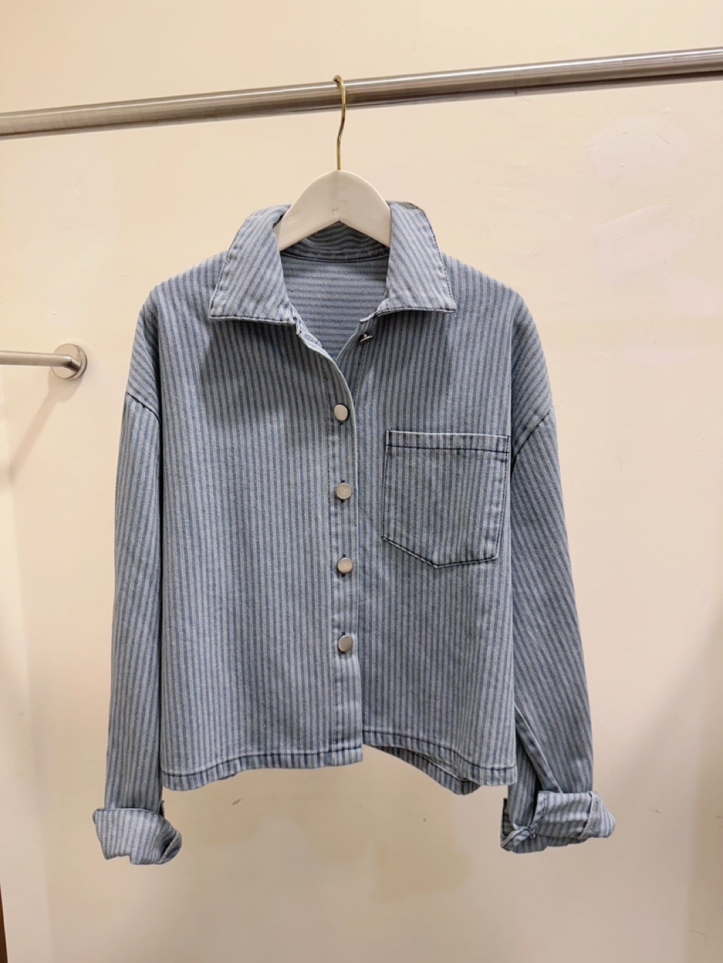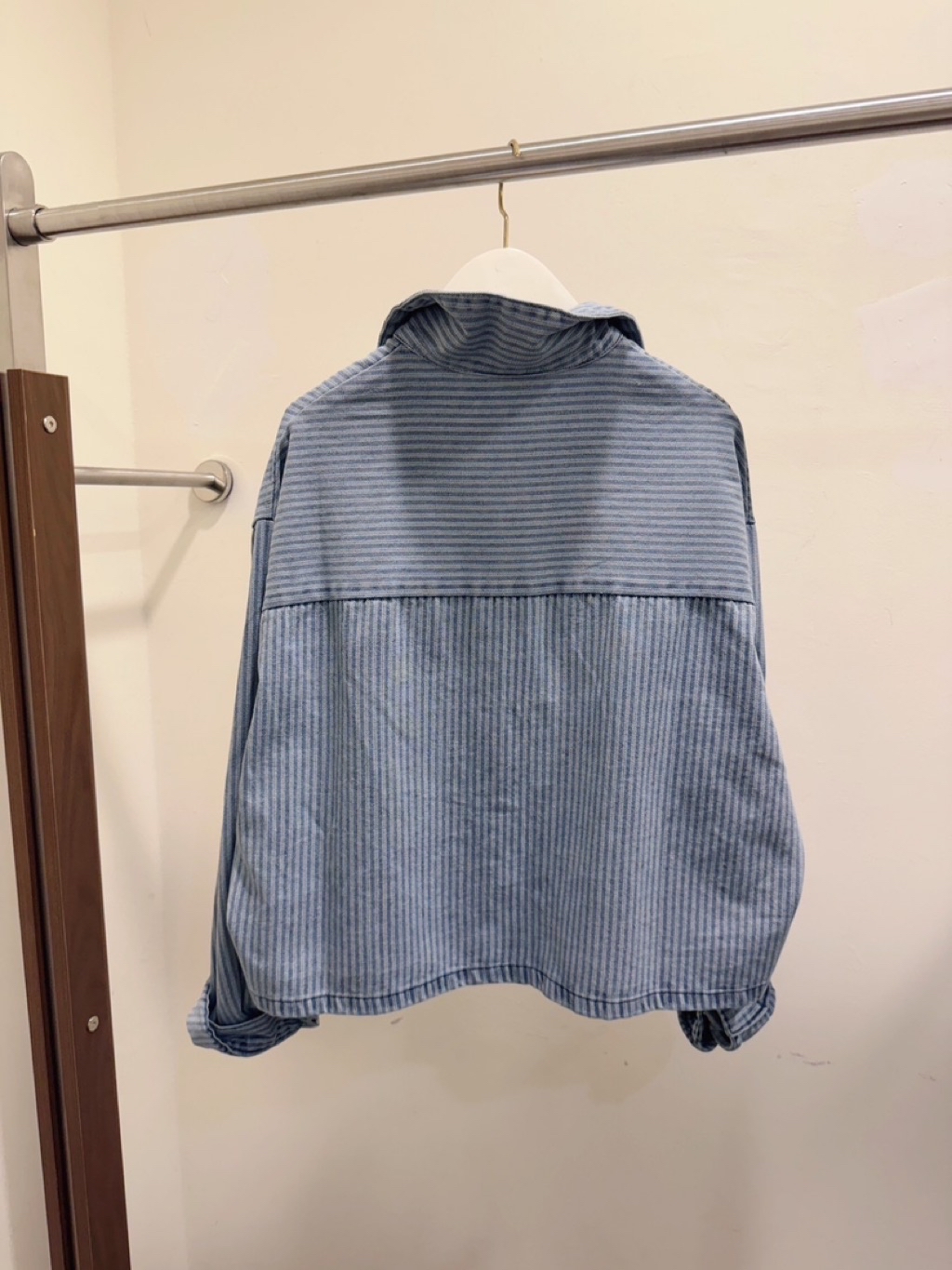 🤎2025 F/W ɴᴇᴡ ᴄᴏʟʟᴇᴄᴛɪᴏɴ 🤎 直條紋牛仔襯衫 #9697 直條紋的魅力真的好迷人 挺挺的牛仔材質當外套也好適合✔️ᴄᴏʟᴏʀ:淺藍✔️sɪᴢᴇ:F肩48胸59袖54長52