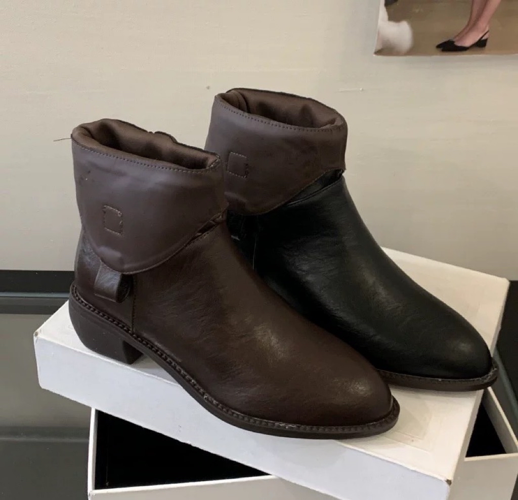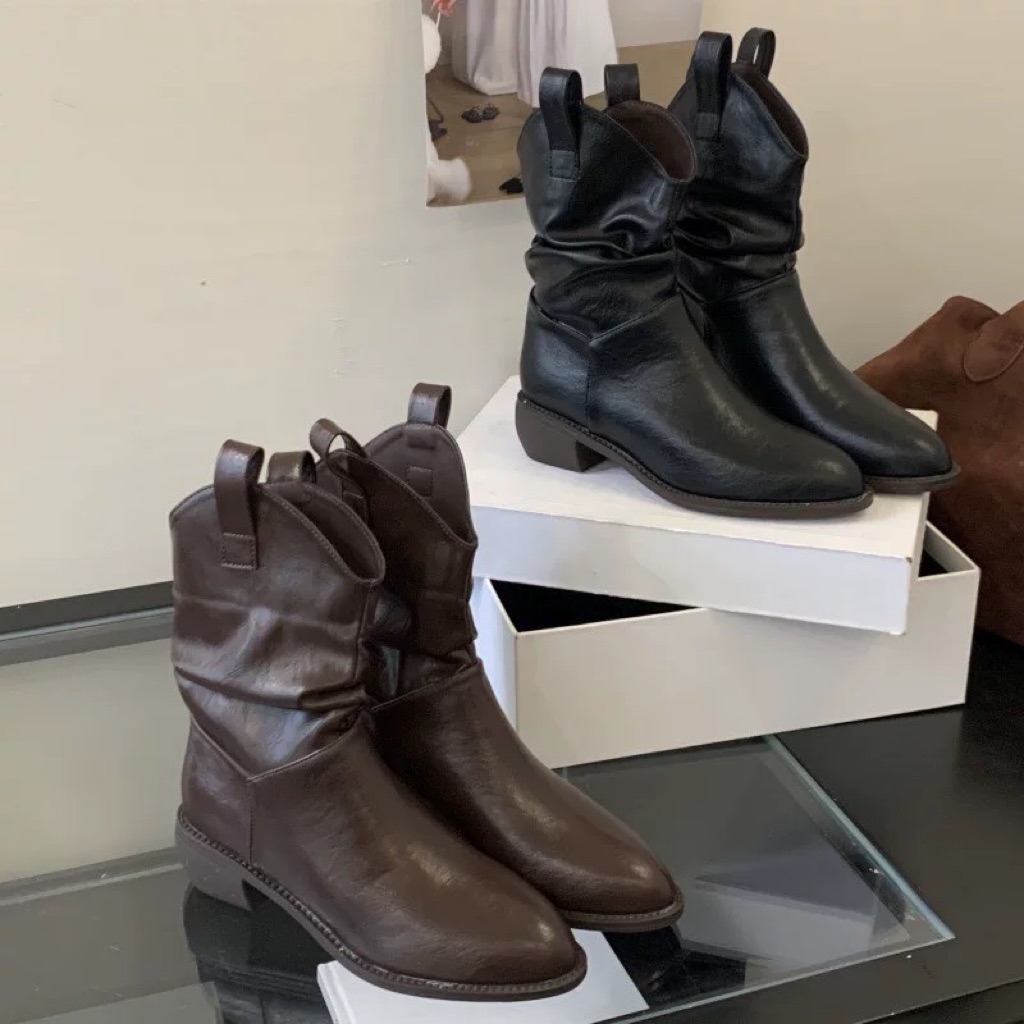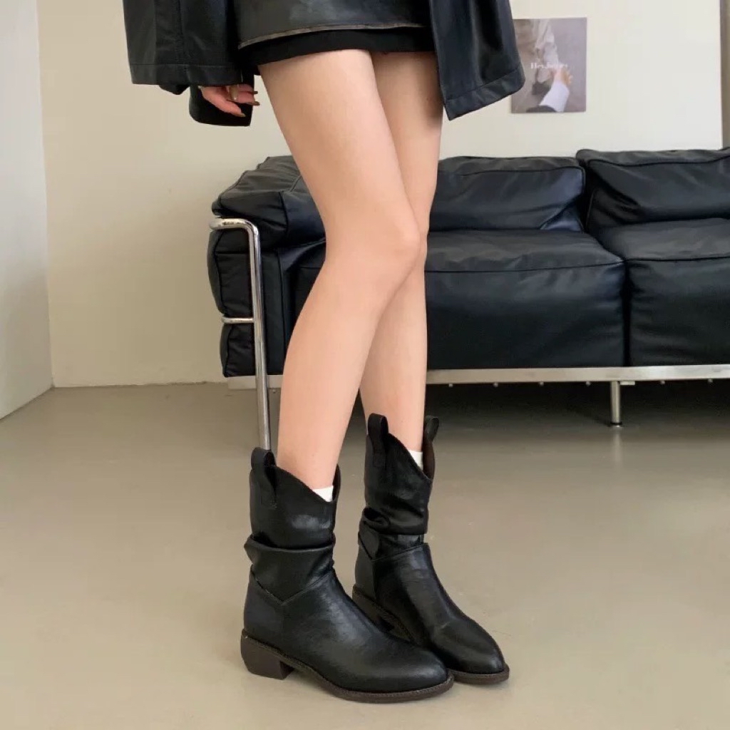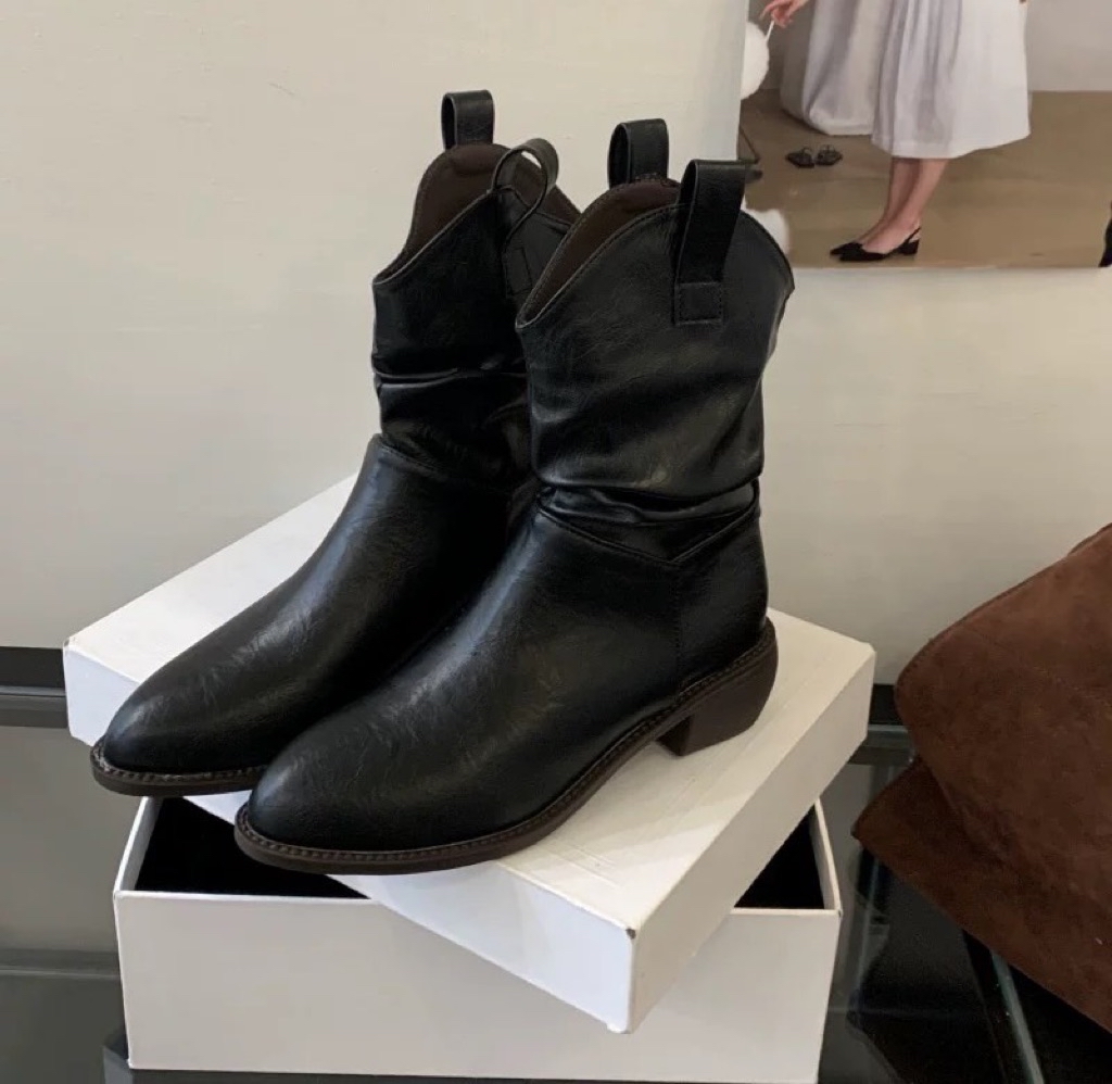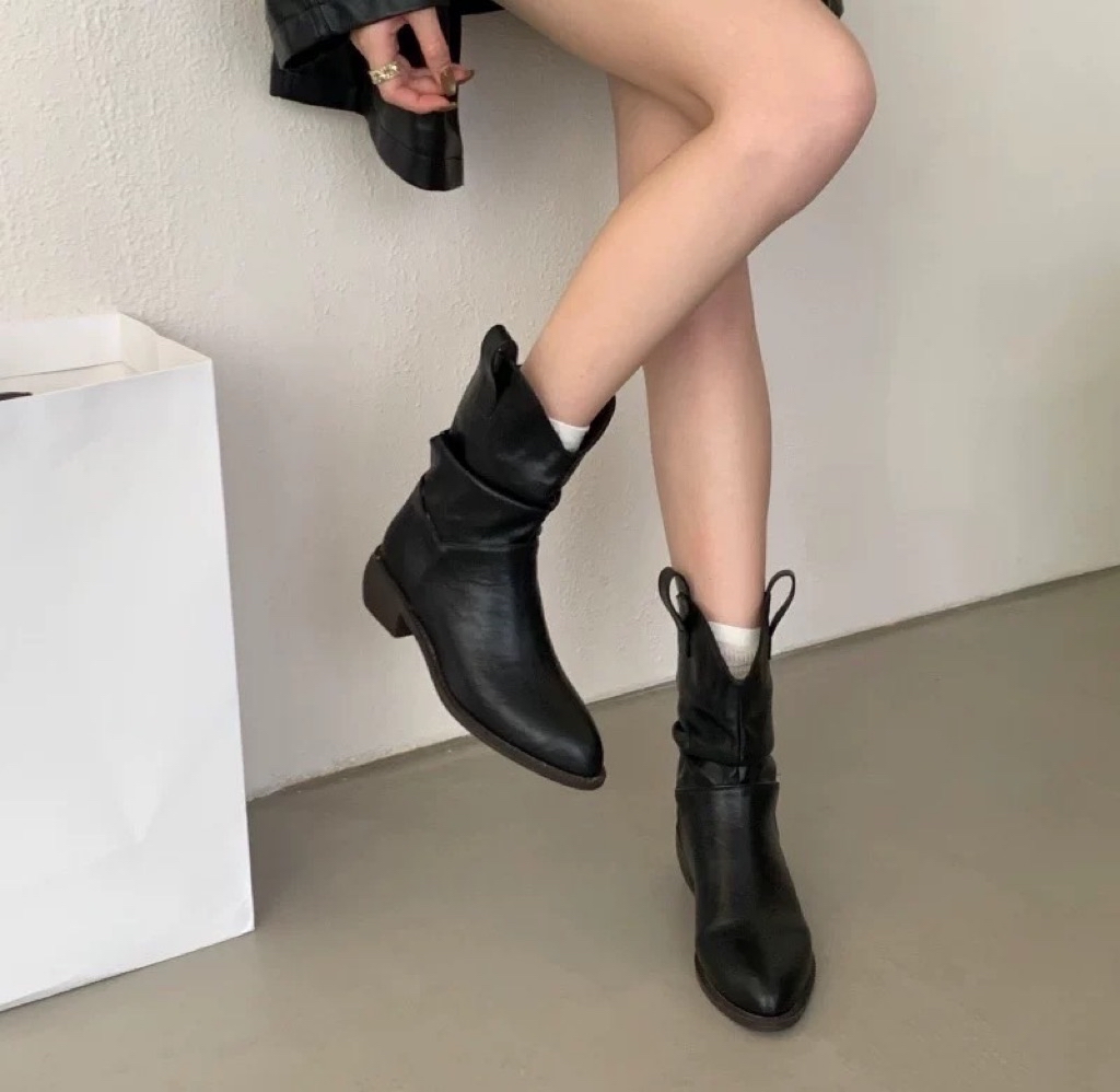 🇰🇷正韓美拉德尖頭堆堆褶皺V口時裝西部短靴