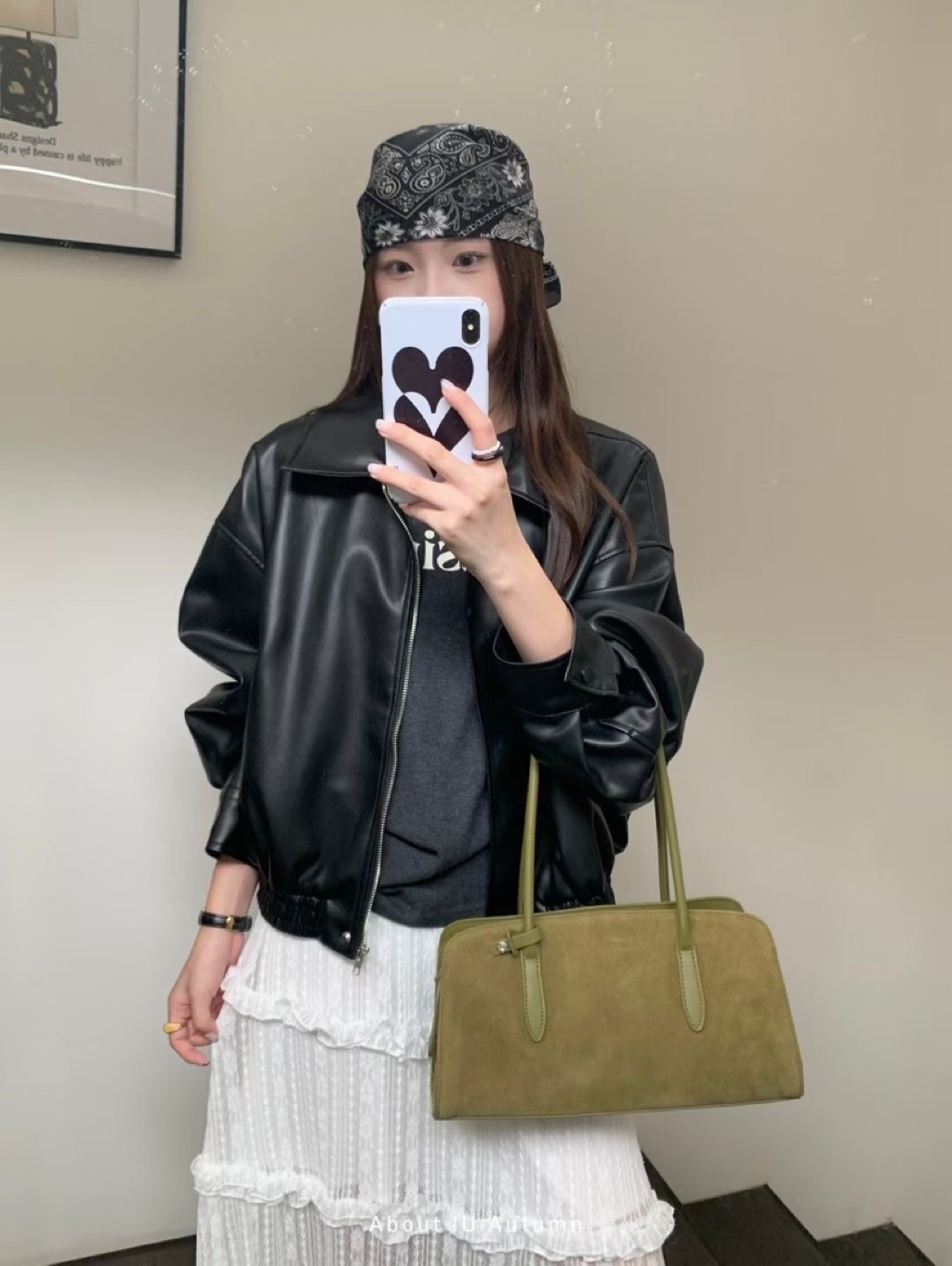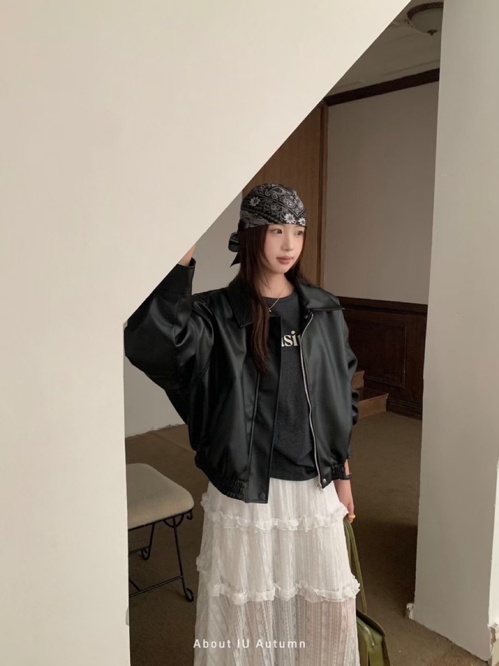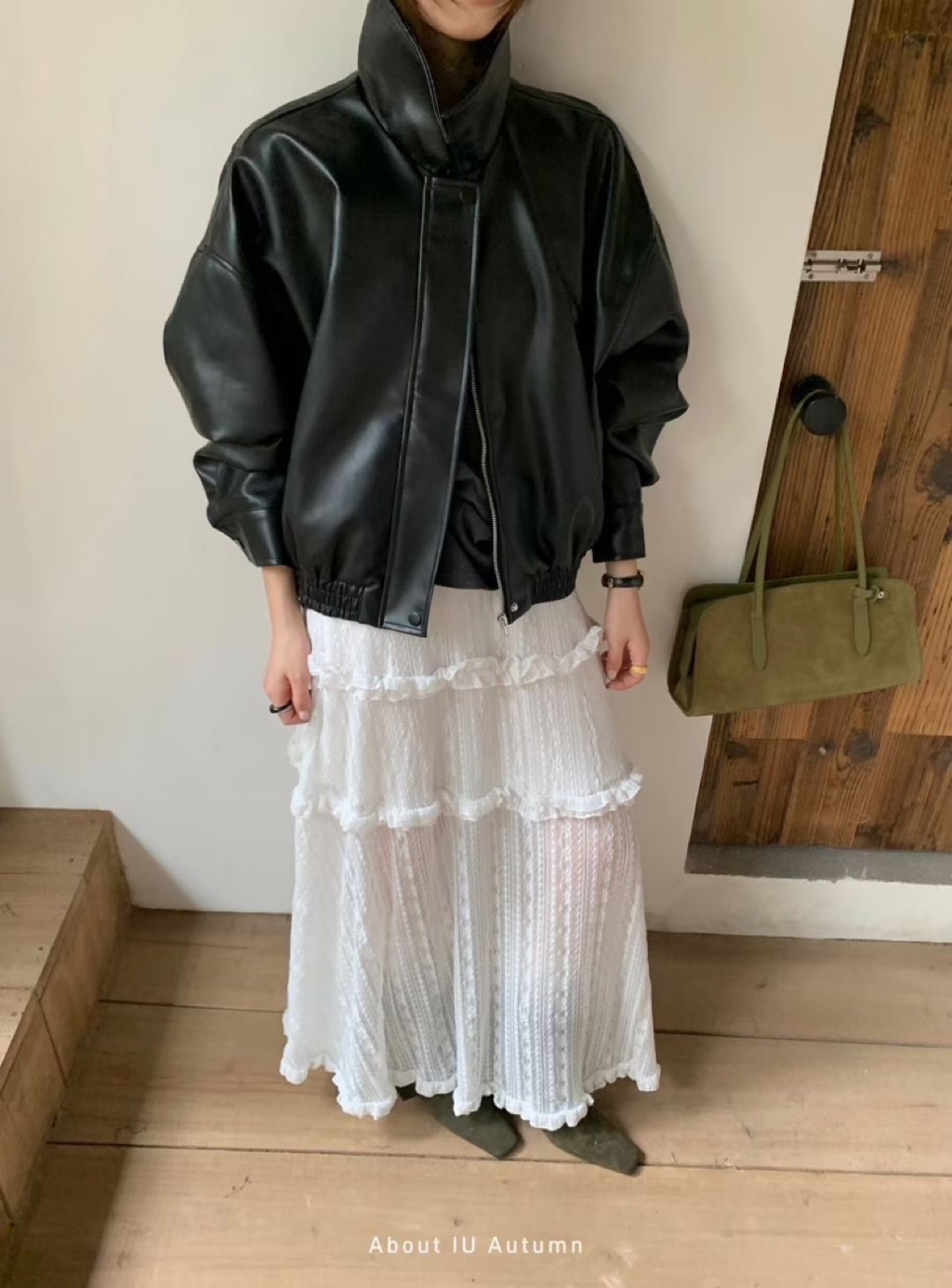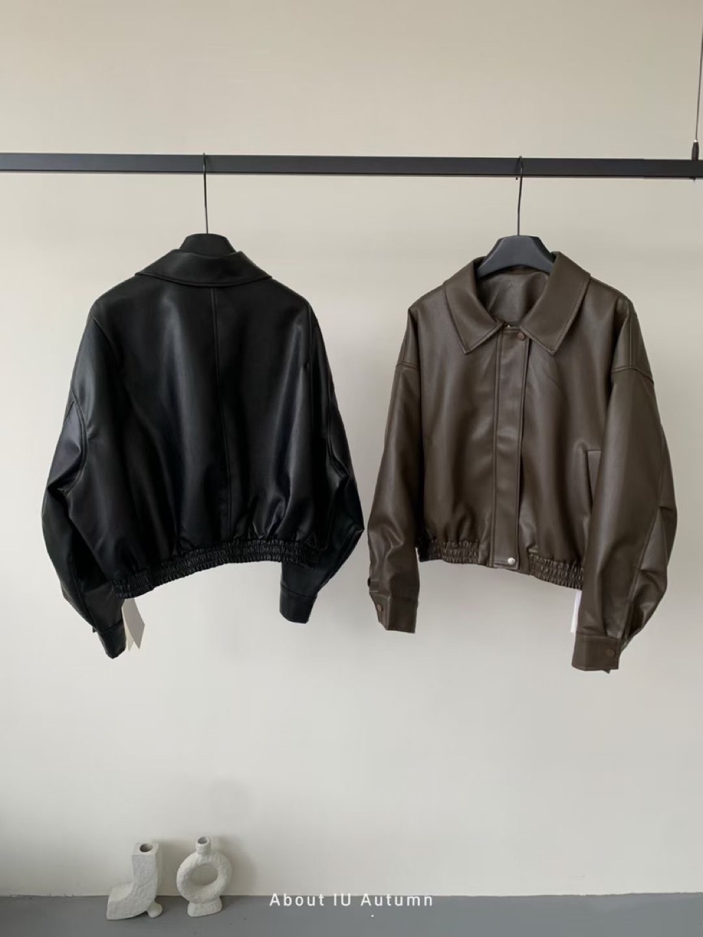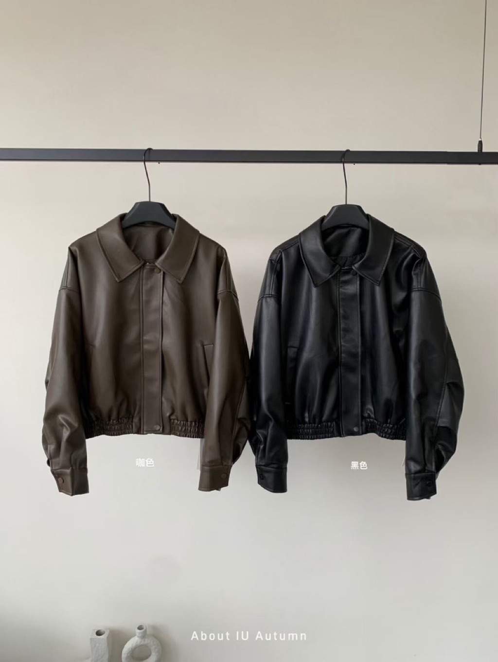 翻領皮革拉鍊外套🤍🤍
