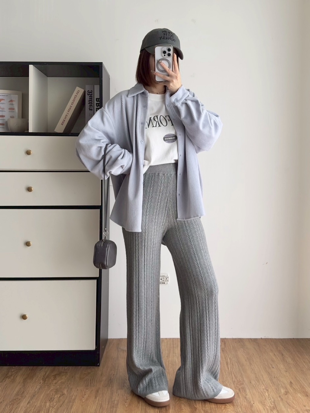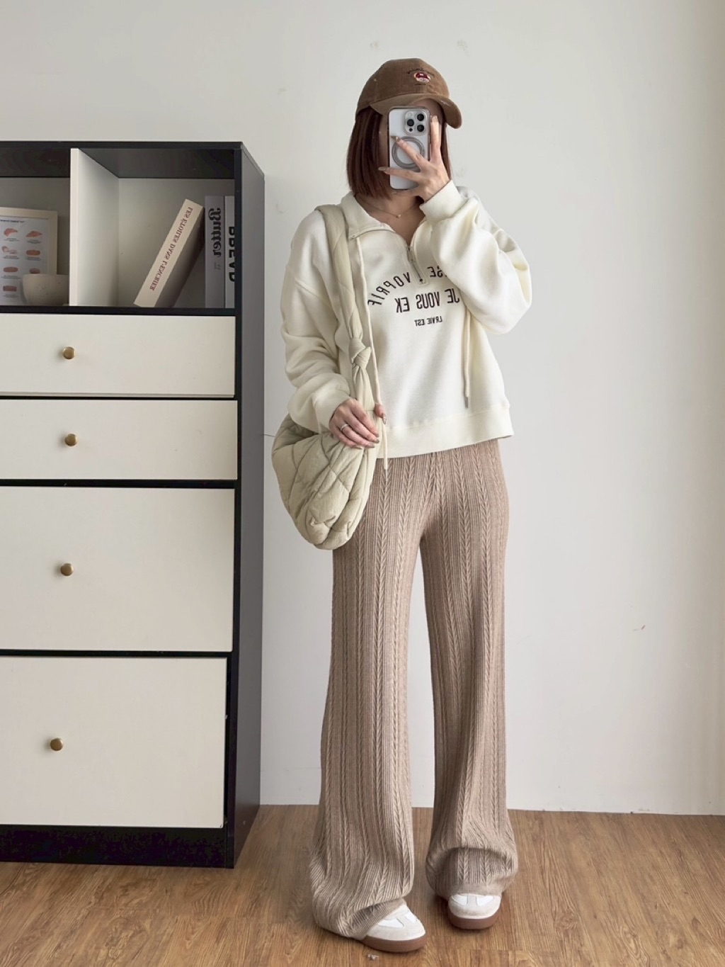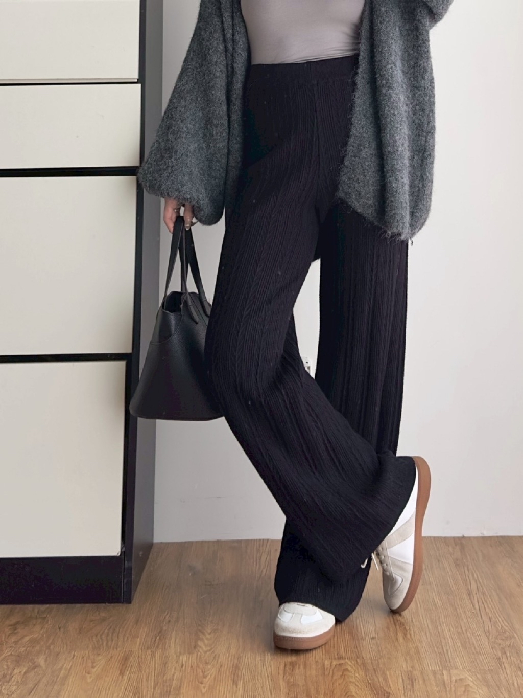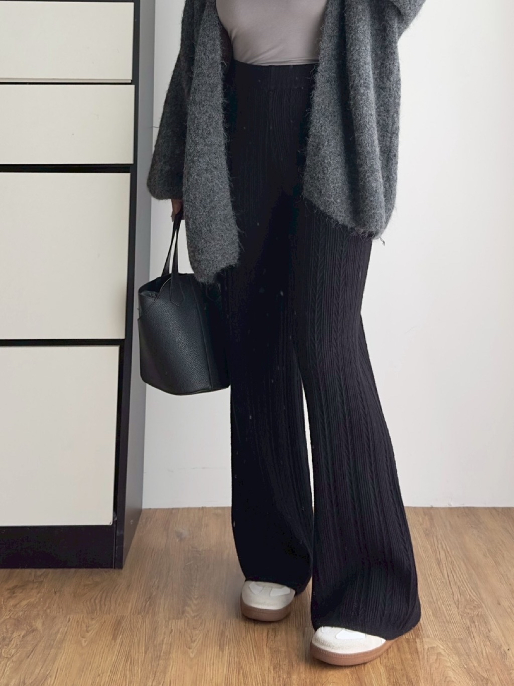 ✨New新款號:6803韓🇰🇷秋款🍂麻花針織闊腿褲🤍🤍顏色:卡、米白、灰、黑腰圍:36-62 臀圍:43 褲襠:37 褲長:110