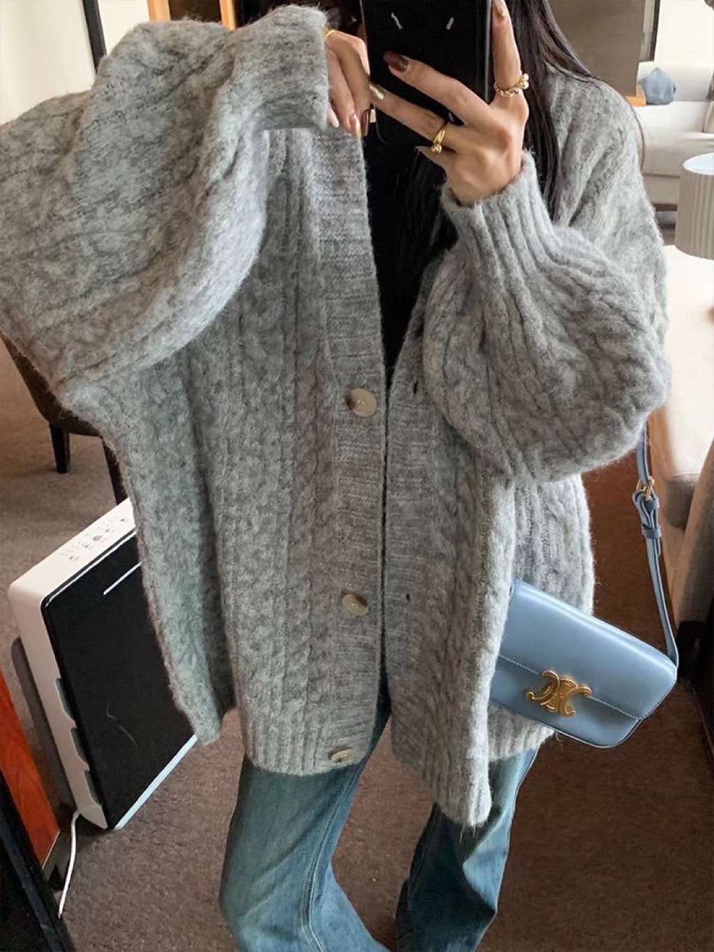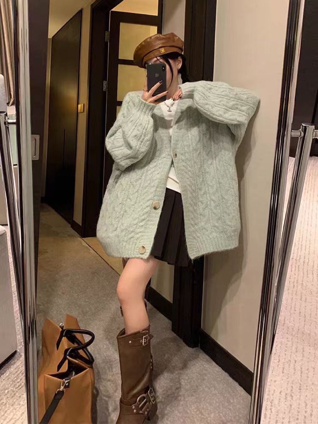 ✨New新款號:662毛線🧶麻花排釦外套質感爆炸好顏色:杏、綠、花灰、淺灰、咖、白、深灰肩寬:65胸圍:68衣長:70