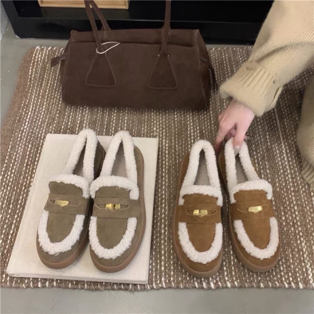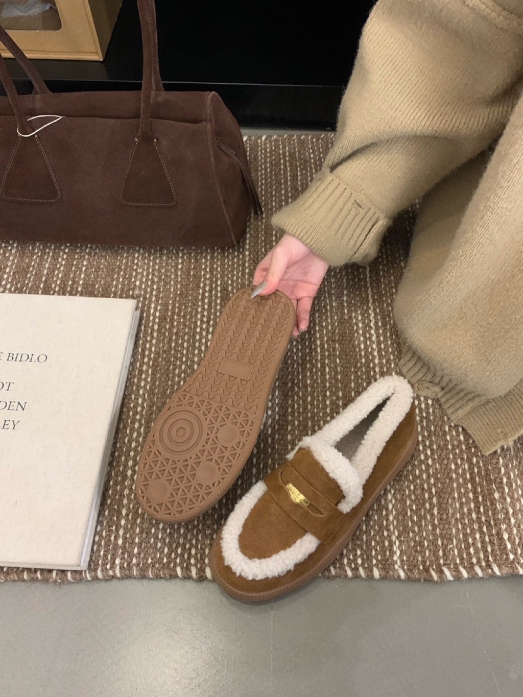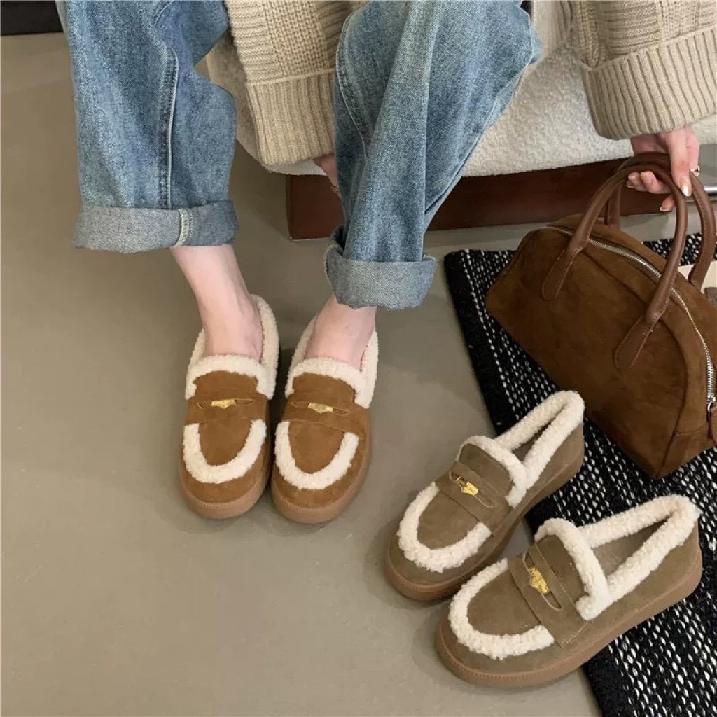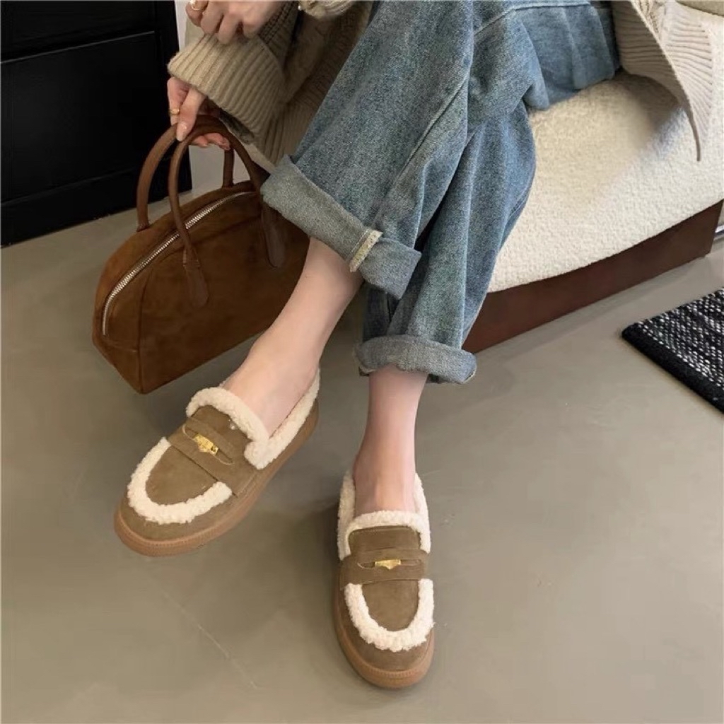 🇰🇷正韓牛反絨真皮羊羔毛金幣加絨軟Q樂福鞋