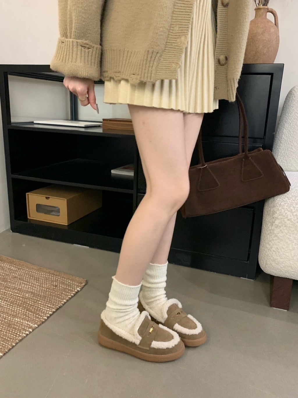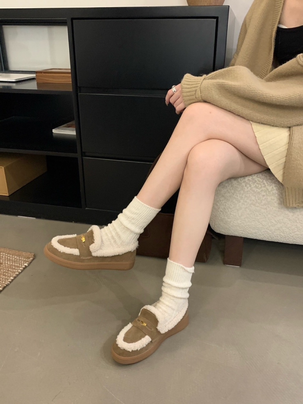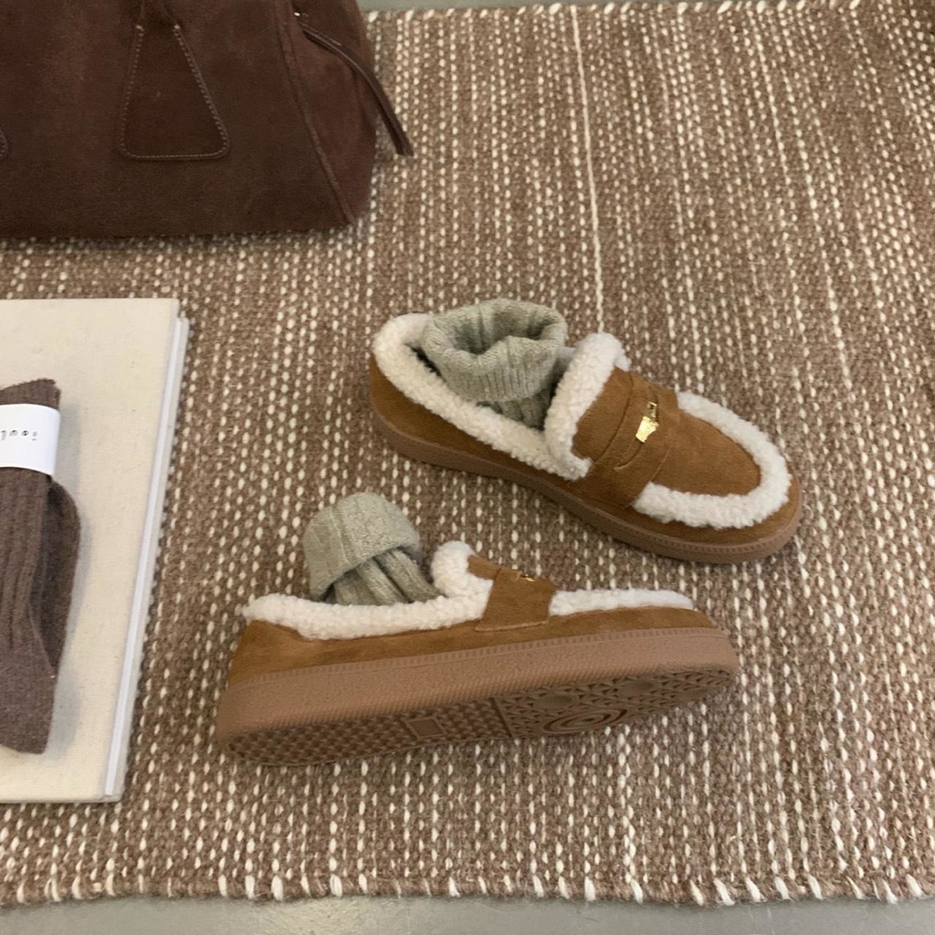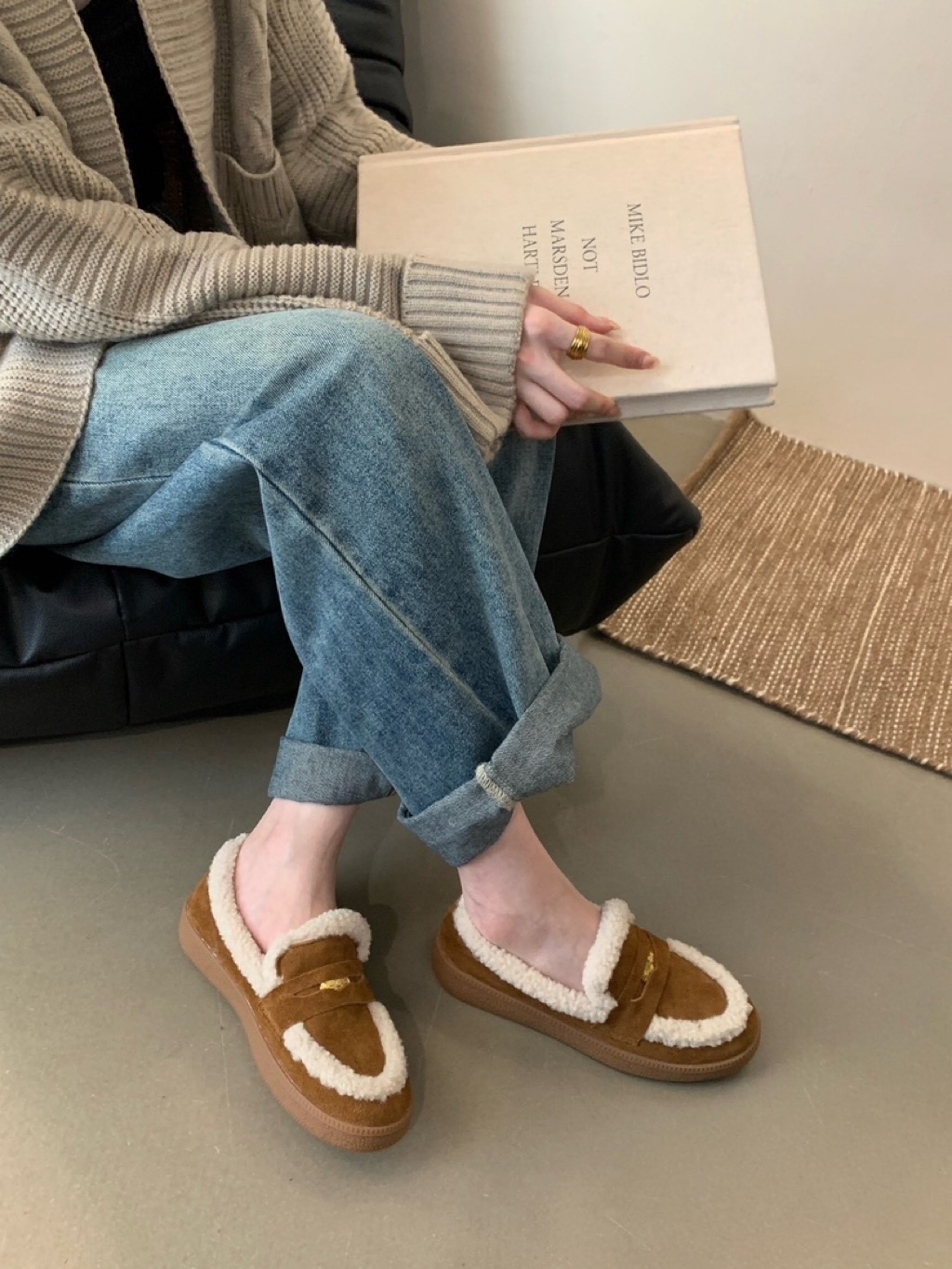 🇰🇷正韓牛反絨真皮羊羔毛金幣加絨軟Q樂福鞋
