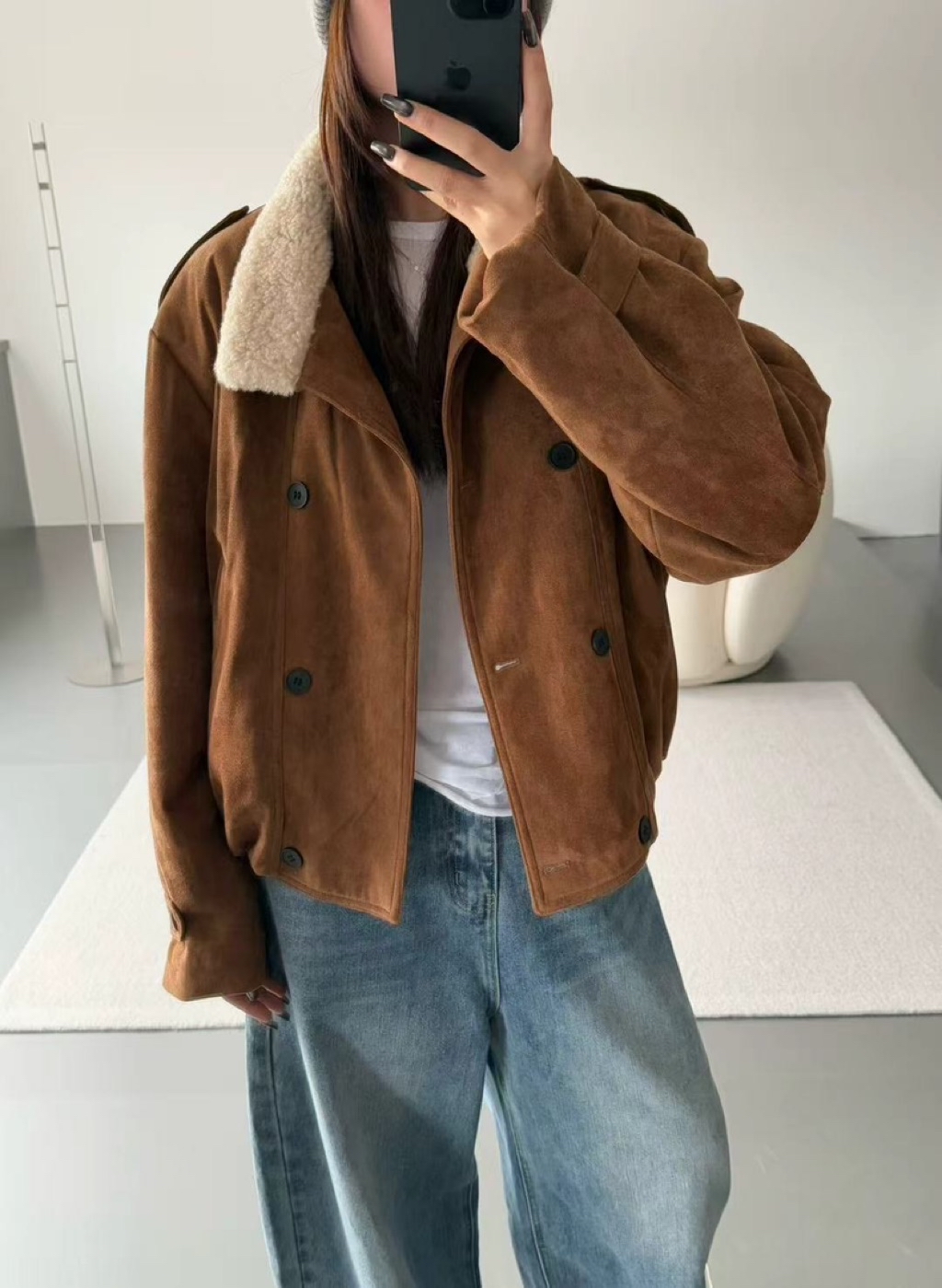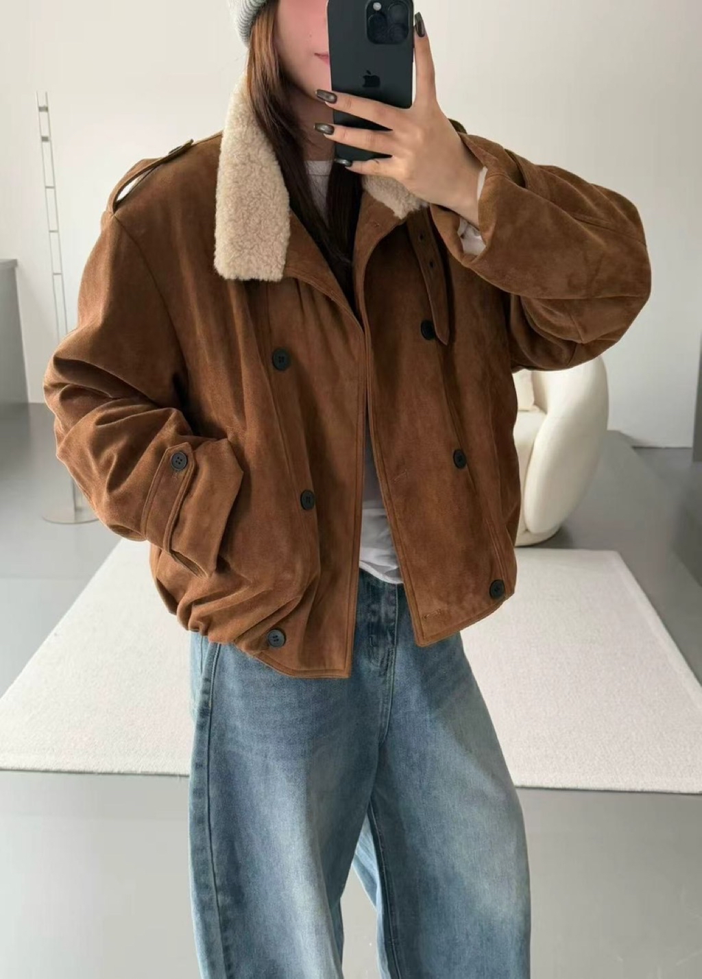 新款冬季🍂鹿絨皮雙排釦外套🤍🤍