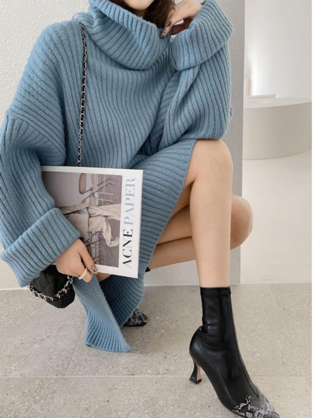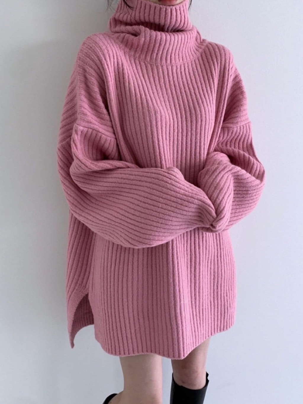 ᴍᴀᴅᴇ ɪɴ ᴋᴏʀᴇᴀ -🇰🇷 #正韓追加到貨~~~❗️❗️這款真的要多屯幾件啊❤️❤️整件寬鬆彈性慵懶版型#面料舒適不刺搭配長靴就超好看✔️回購率超高的😍商品:高領開叉針衣尺寸:胸77長85顏色:杏/粉/橘/咖/淺藍/深藍