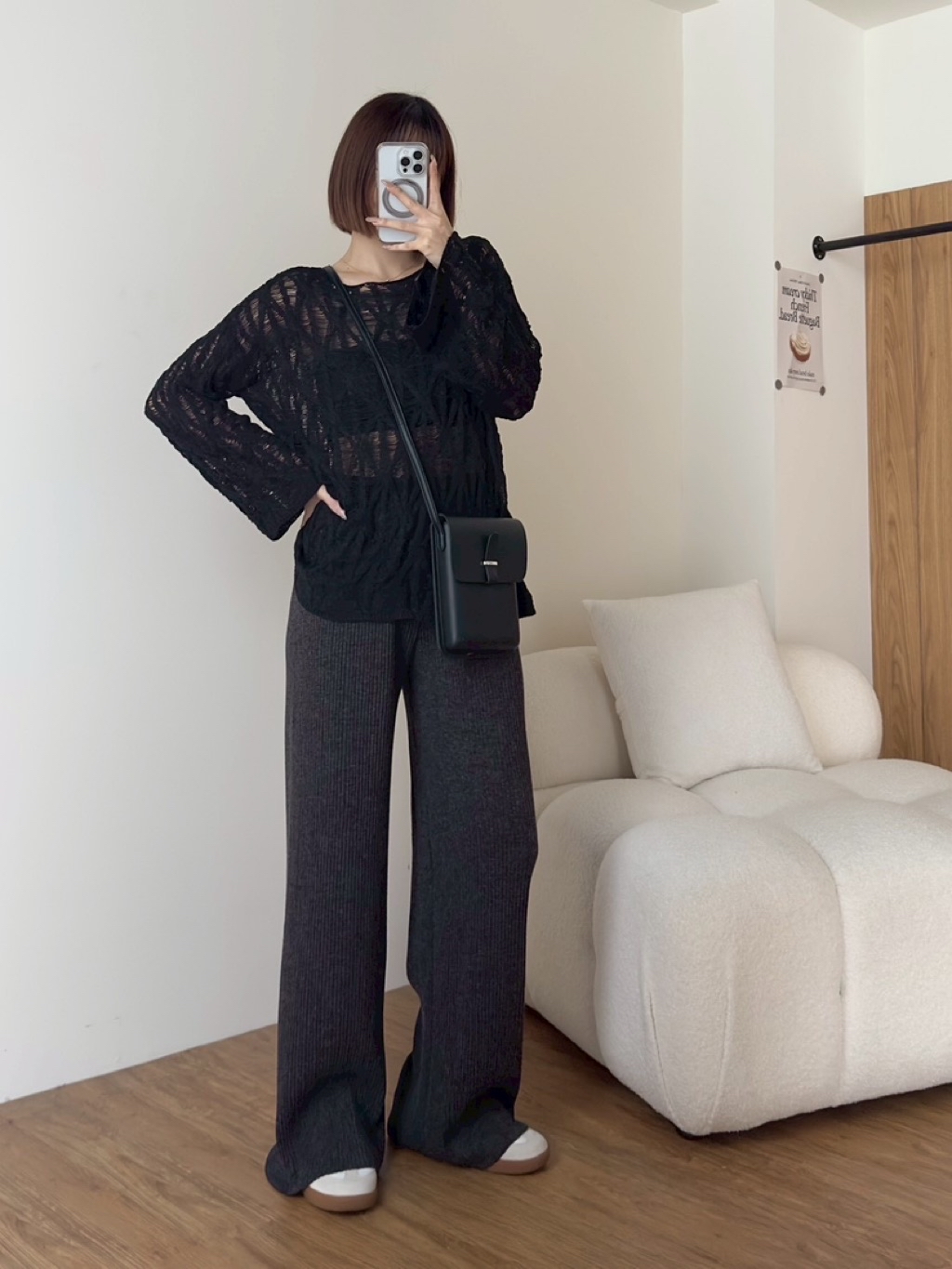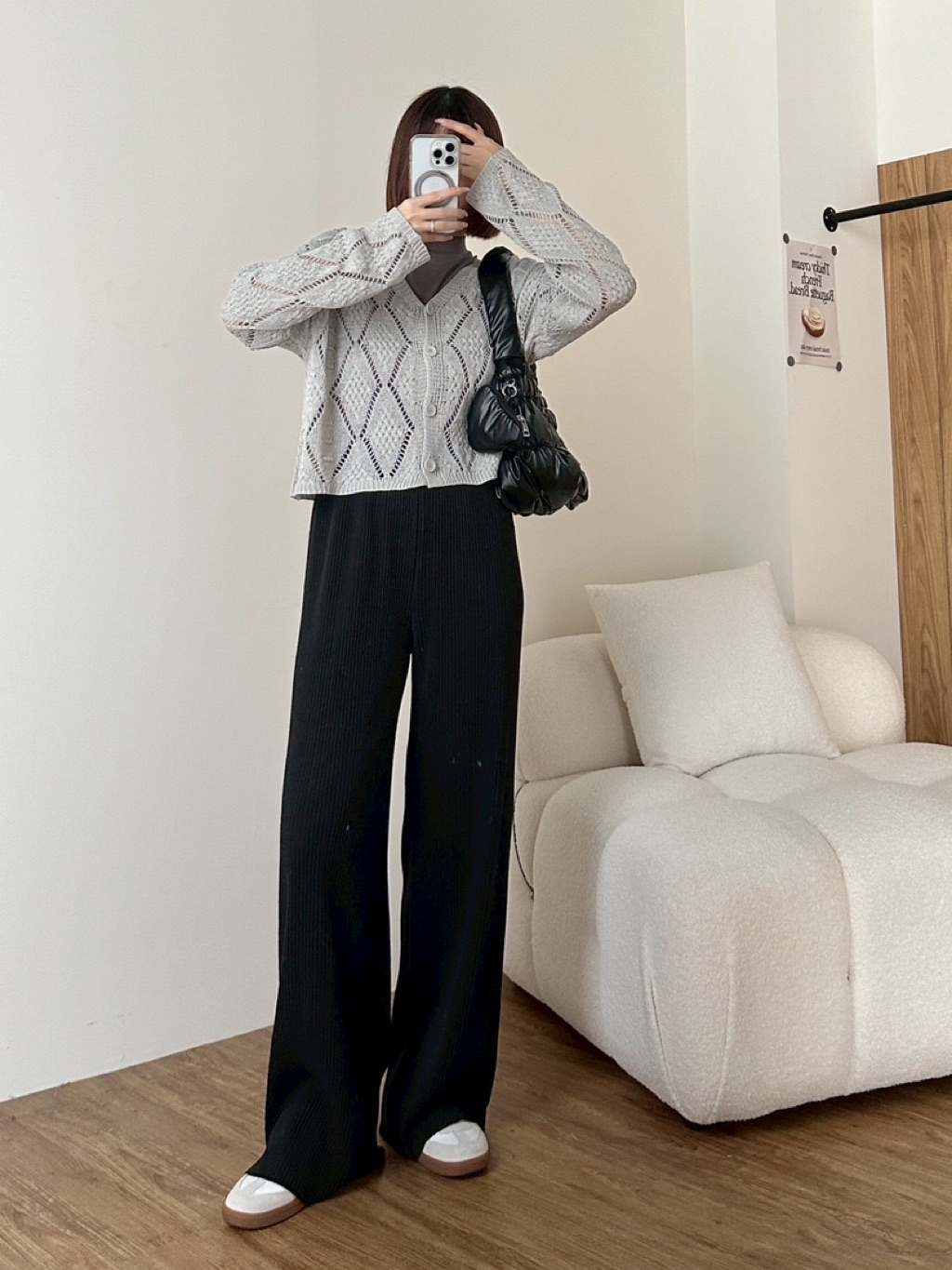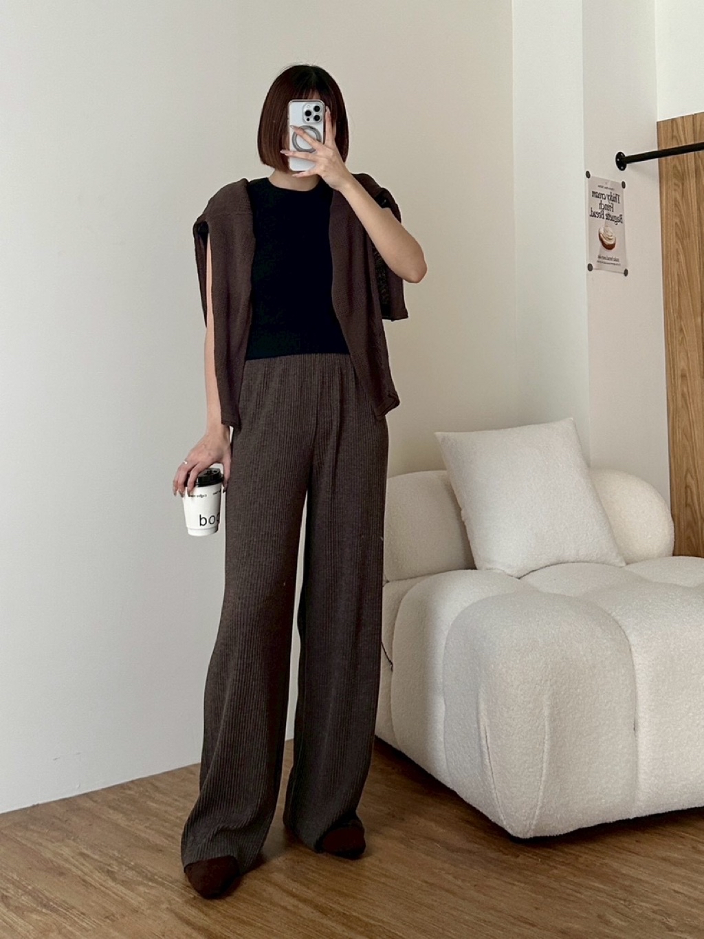 ✨New新款號:95023韓🇰🇷秋款🍂壓折直筒落地褲🤍顏色:米杏、奶茶、棕咖、花灰、深灰、黑腰圍:33-60 臀圍:54 褲襠:32 褲長:104