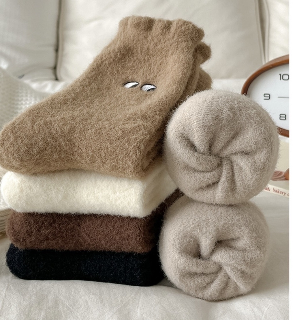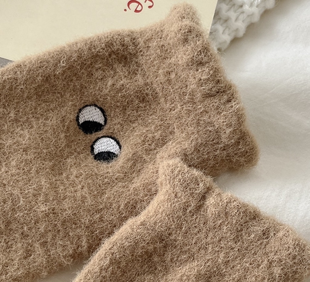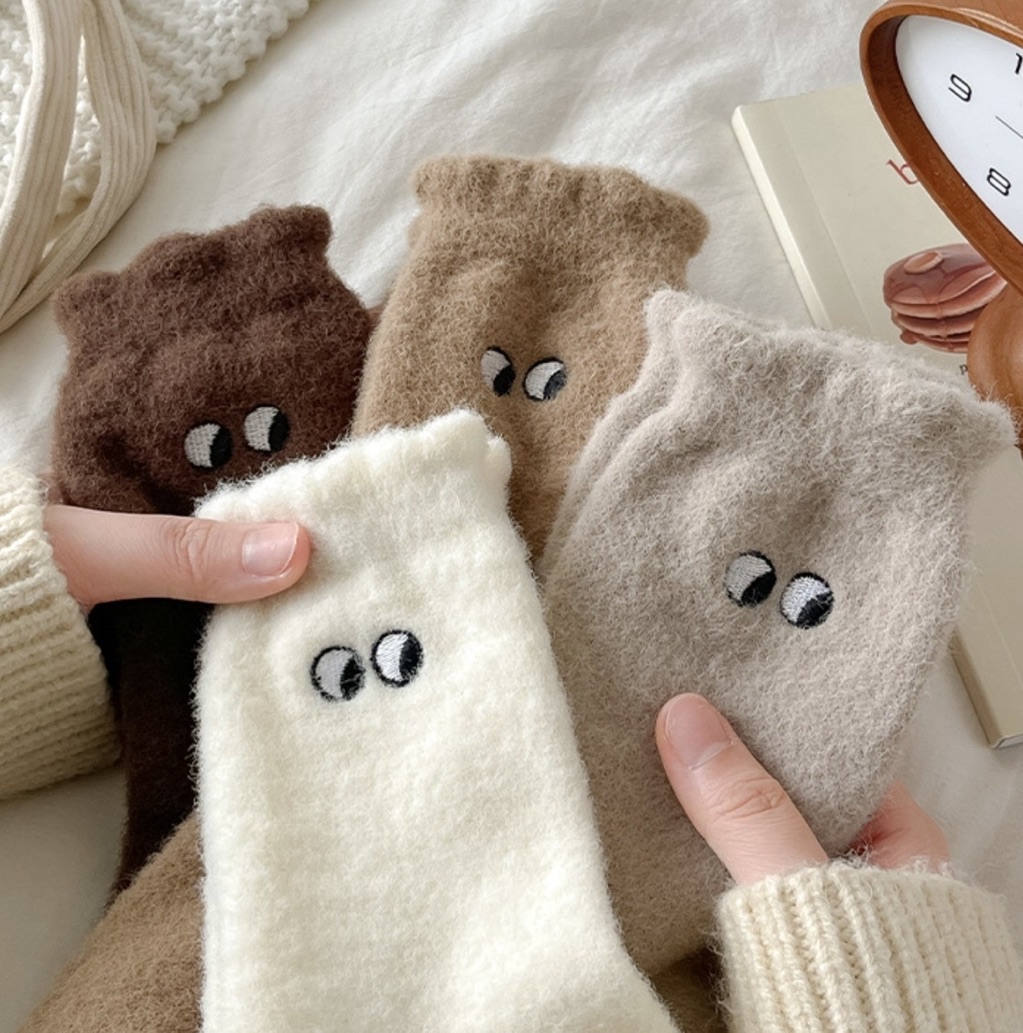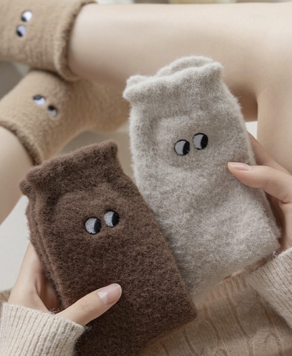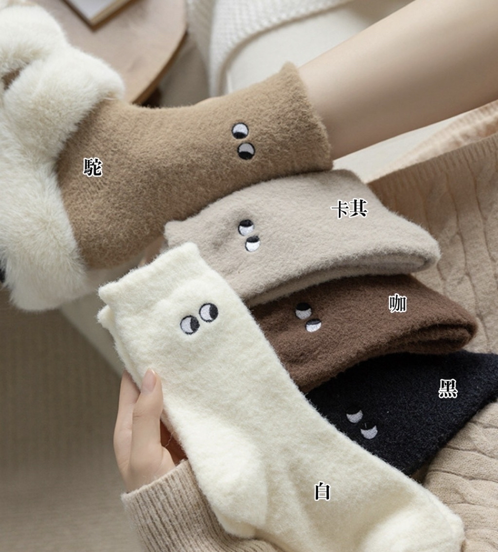 ʀ.ᴄʜ 日系澳絨眼睛刺繡居家保暖短襪