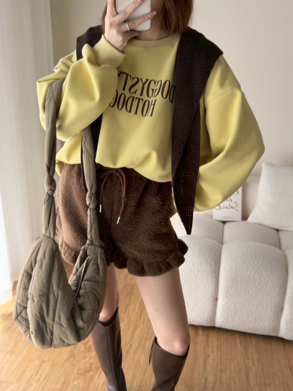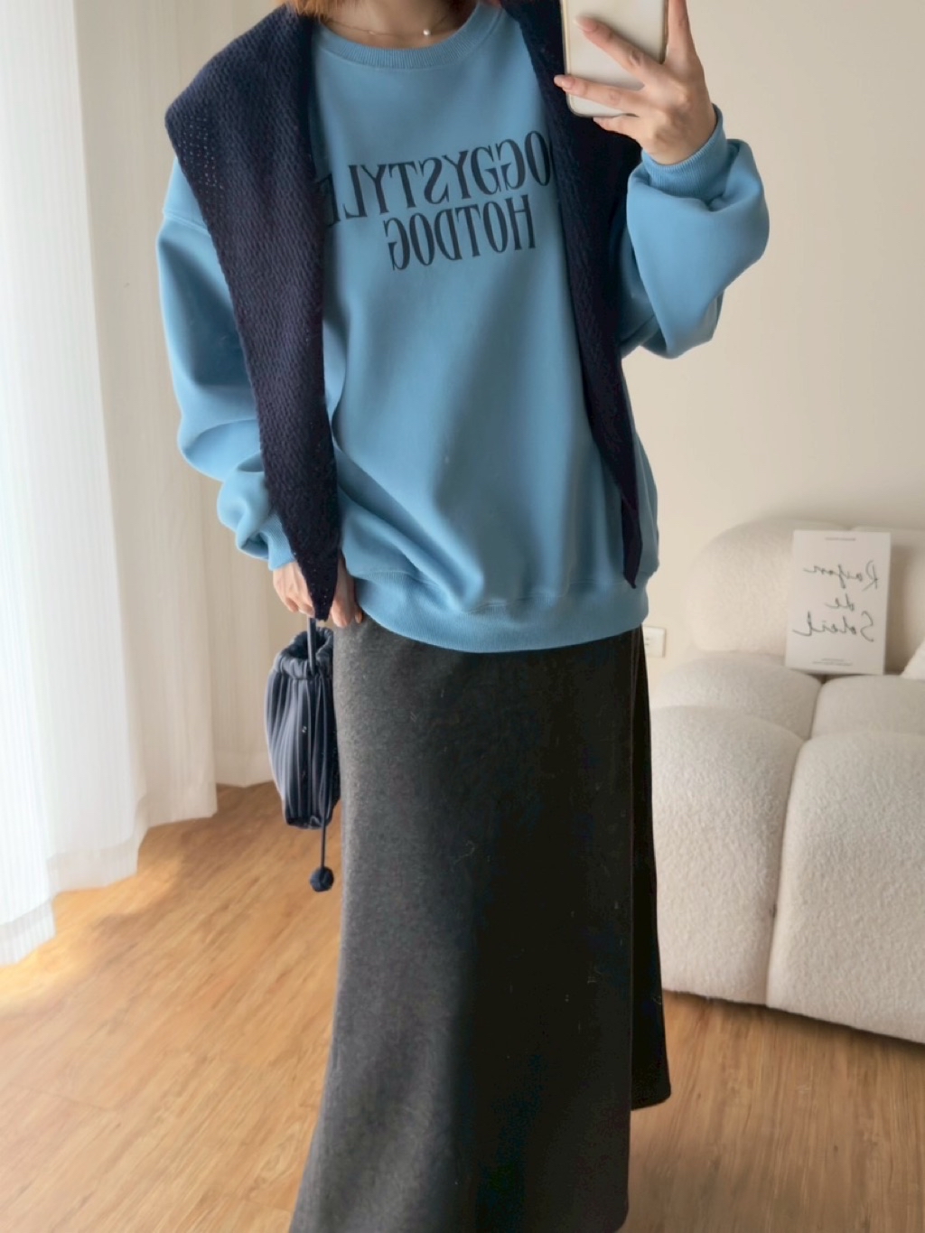 New新款號:6235◡̈ 秋冬季新款搭配𝗼𝗼𝘁𝗱披肩英文寶寶絨大T顏色:米灰、淺藍、藏藍、黃胸寬:67 衣長:66