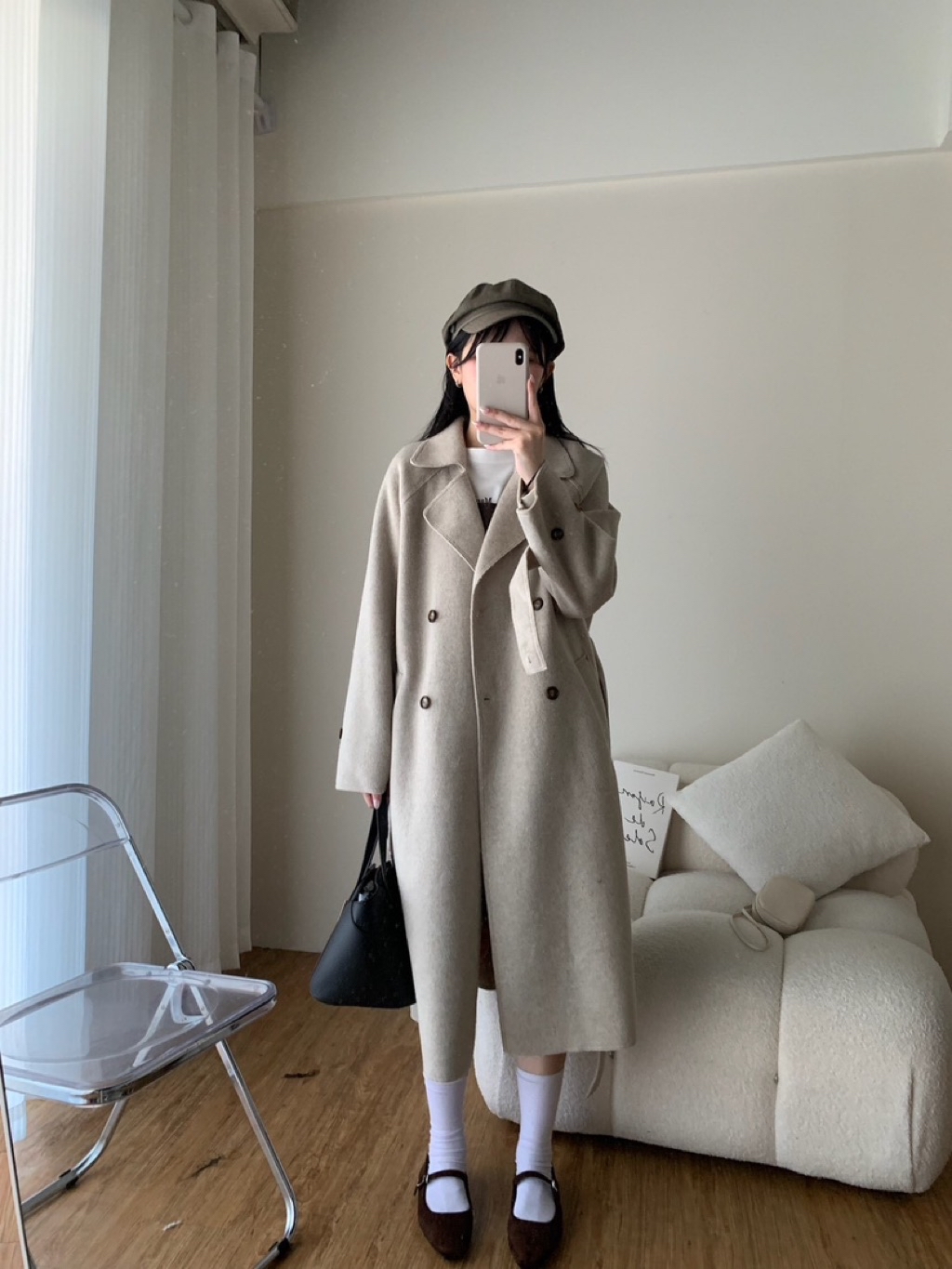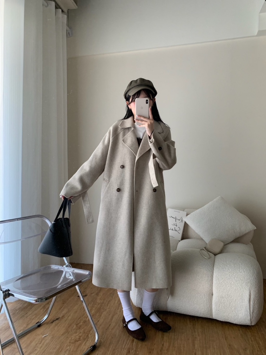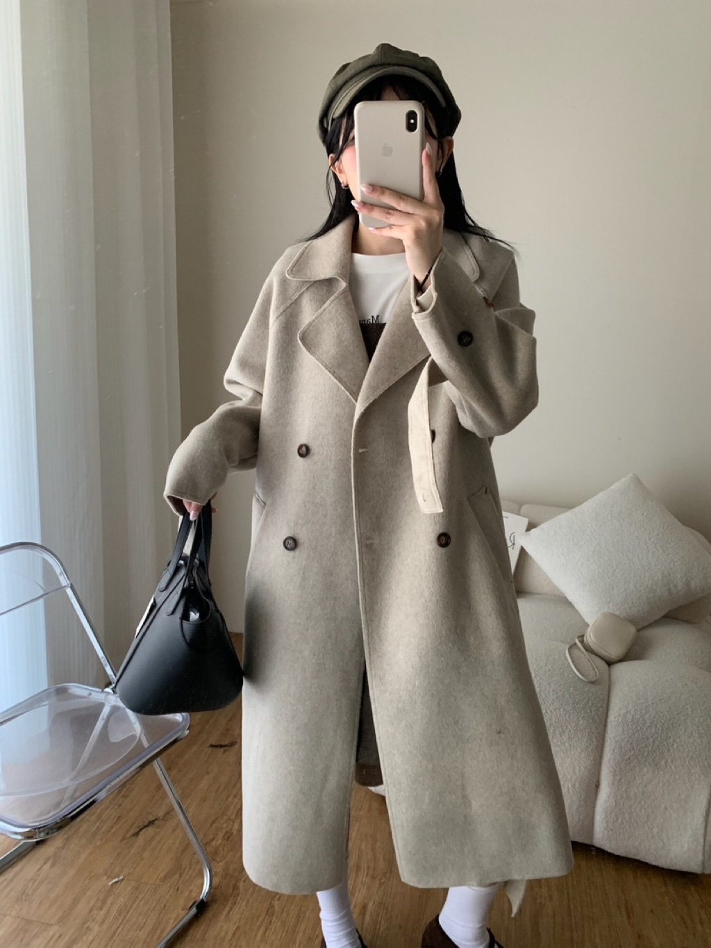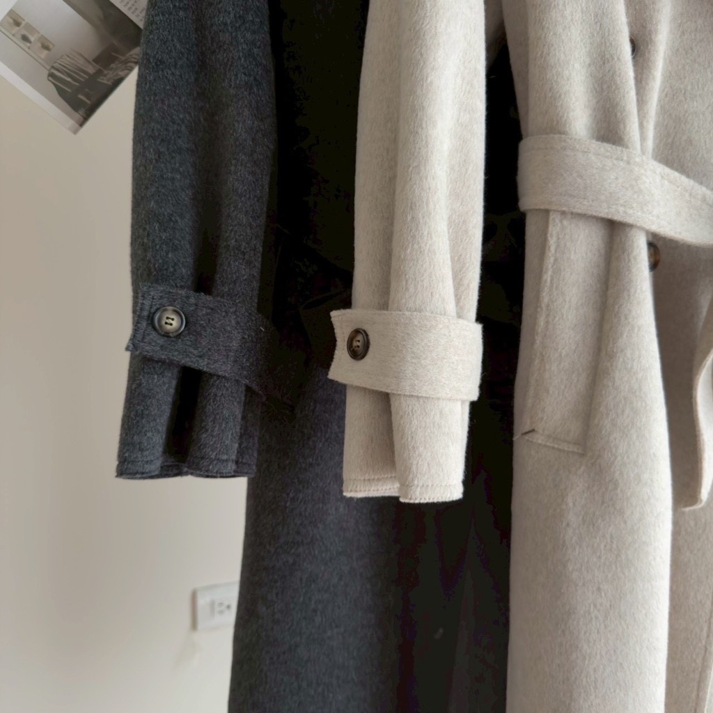 New新款號:3093◡̈ 秋季新款搭配𝗼𝗼𝘁𝗱綁帶雙面羊毛絨長款大衣超頂質料✨✨質感真的超好顏色:燕麥、深灰尺寸胸寬:56 衣長:113