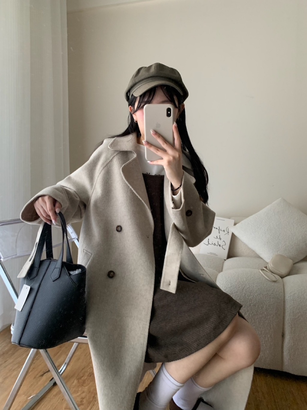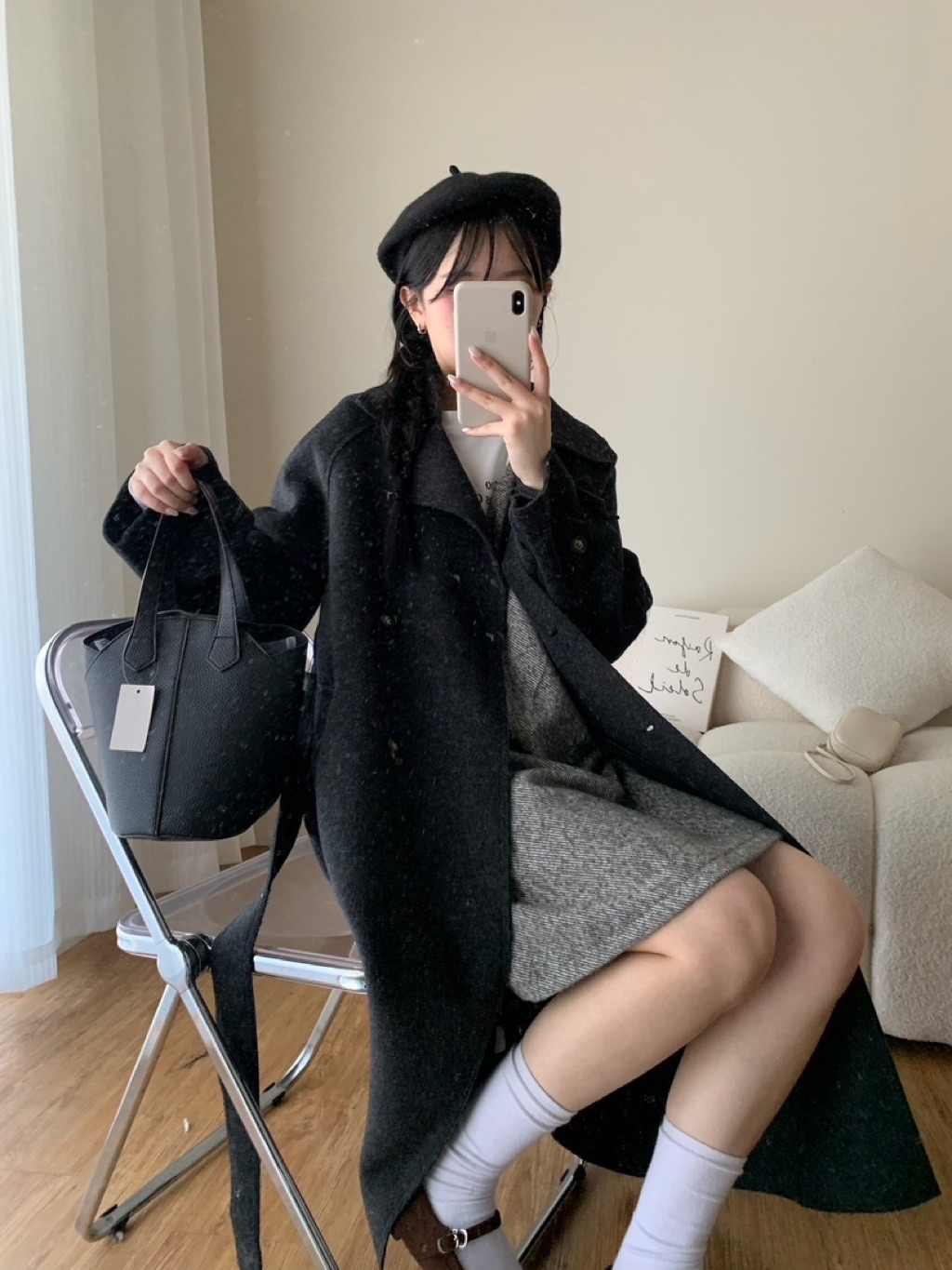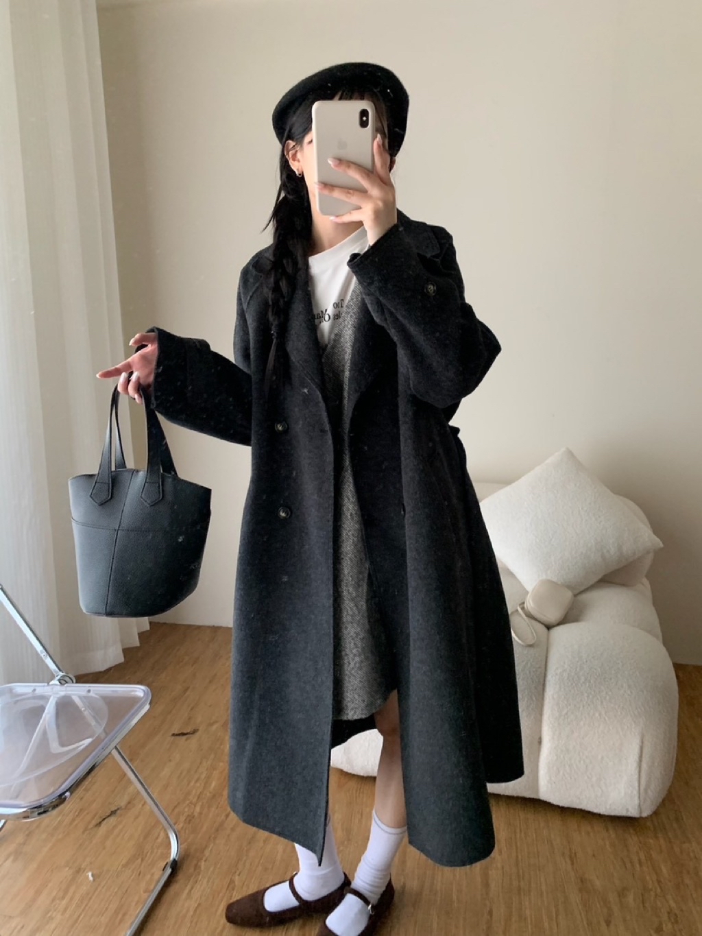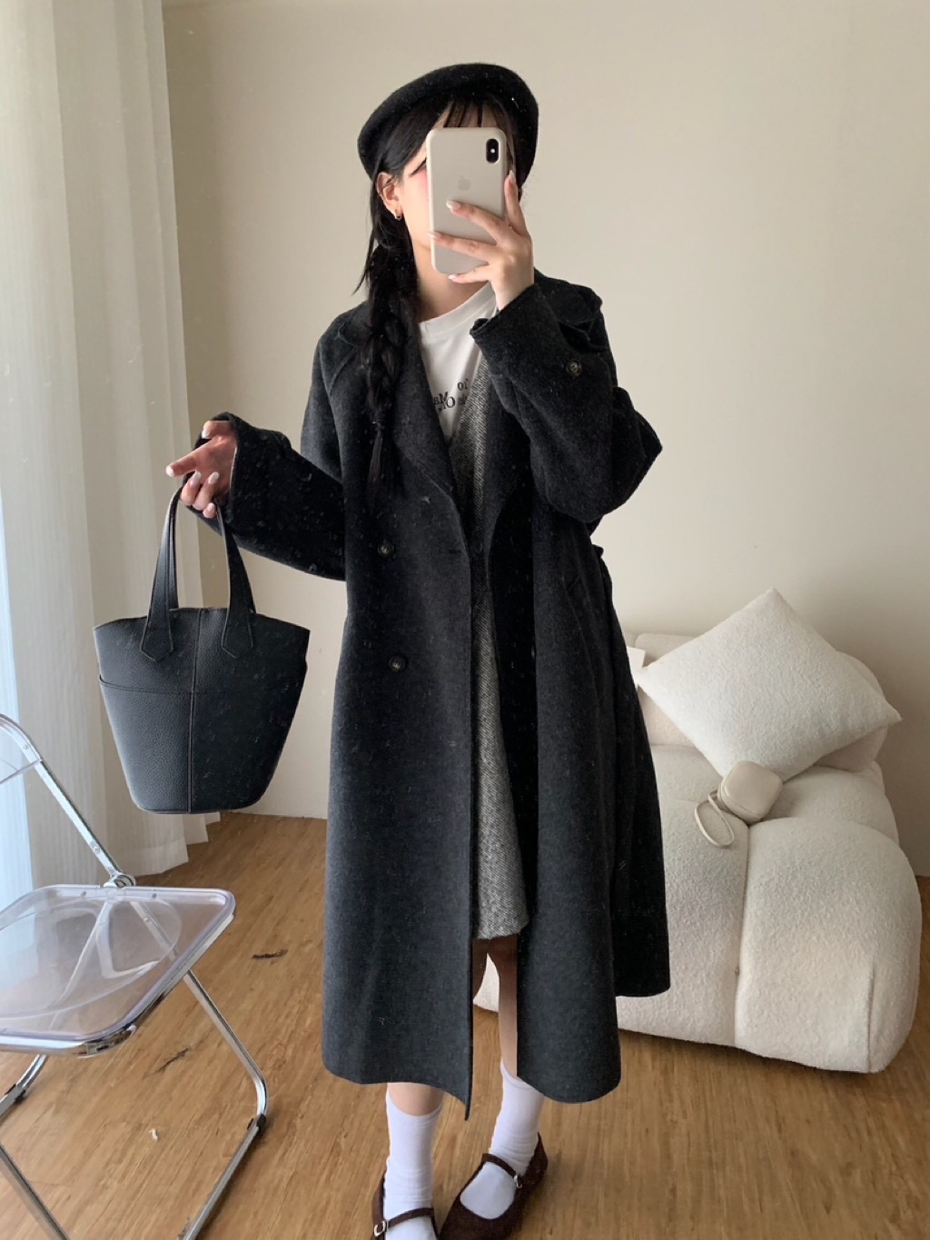 New新款號:3093◡̈ 秋季新款搭配𝗼𝗼𝘁𝗱綁帶雙面羊毛絨長款大衣超頂質料✨✨質感真的超好顏色:燕麥、深灰尺寸胸寬:56 衣長:113