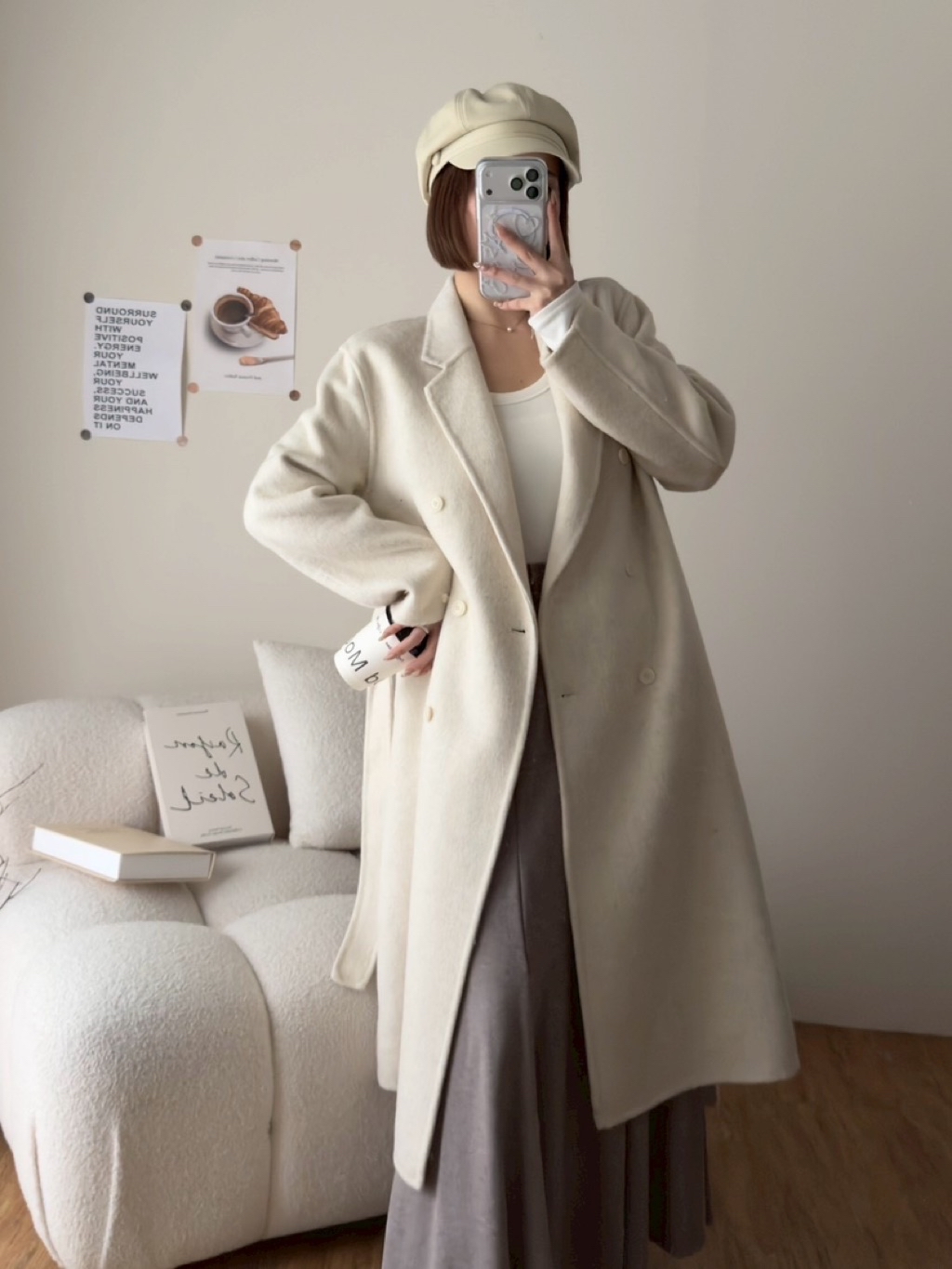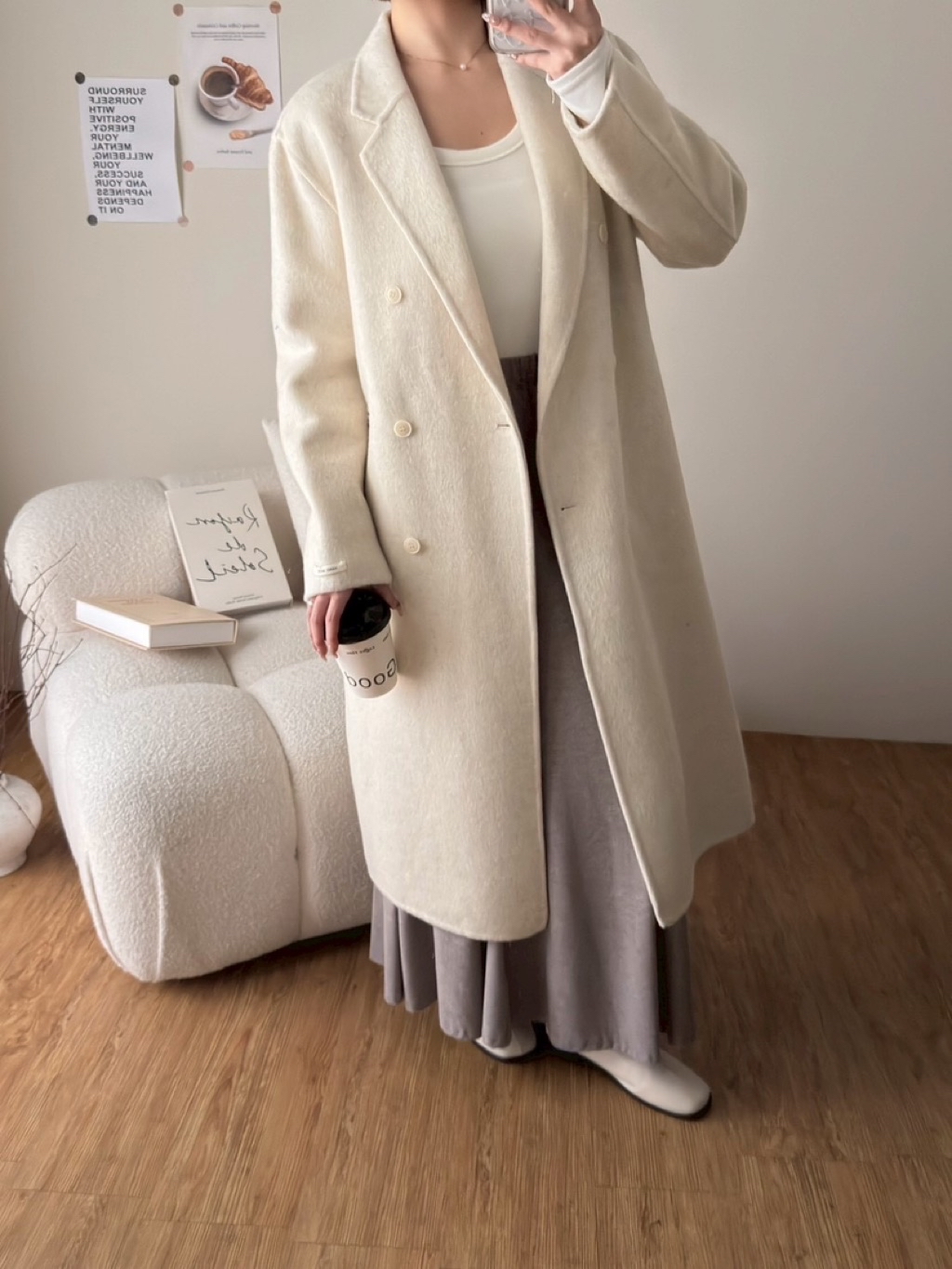 New新款號:6092◡̈ 秋季新款搭配𝗼𝗼𝘁𝗱全羊毛長款大衣超頂質料✨✨質感真的超好顏色:黑灰、米白、咖、綠尺寸胸寬:55 衣長:111