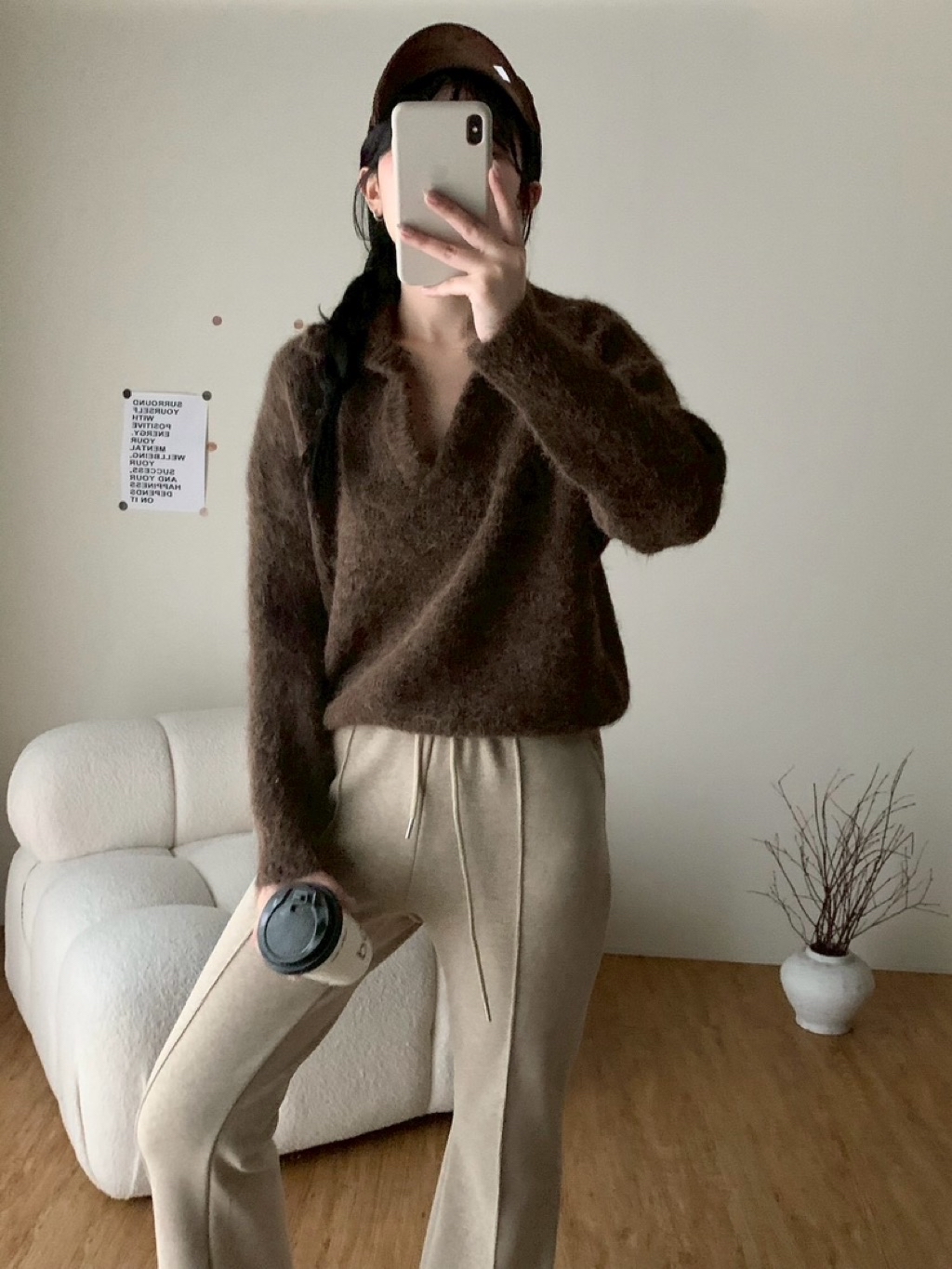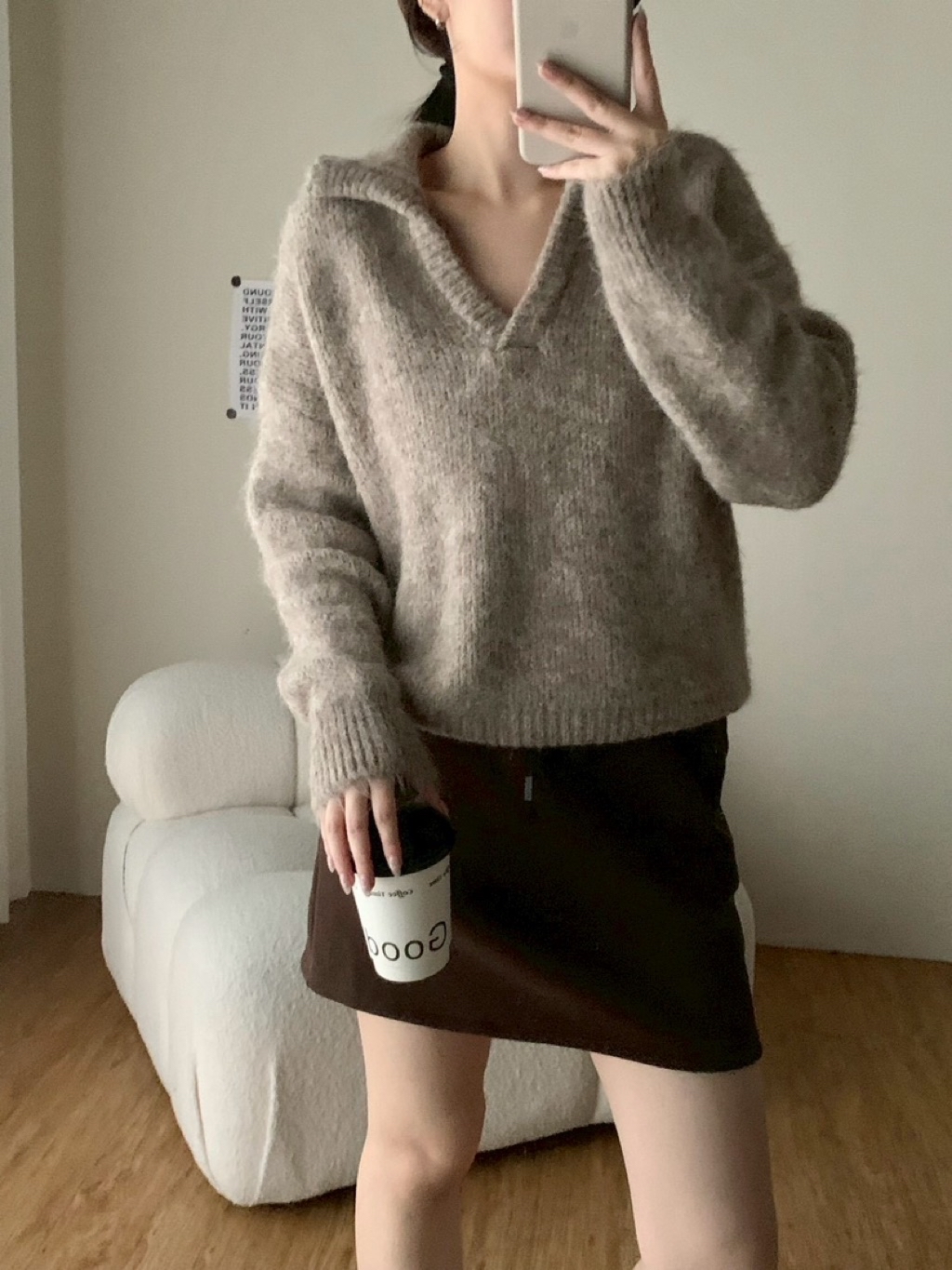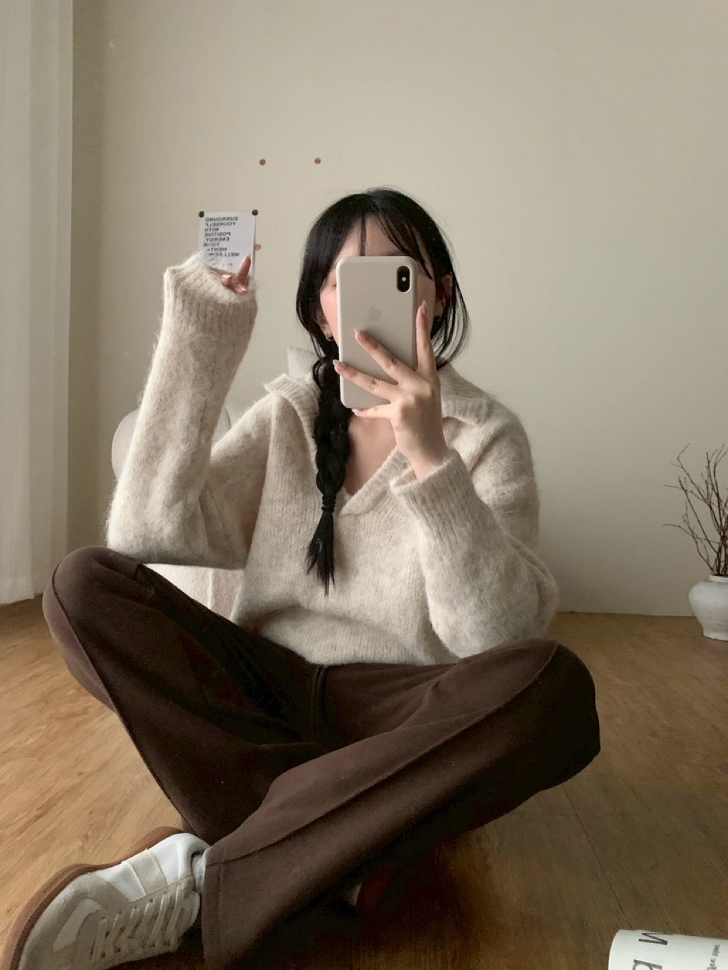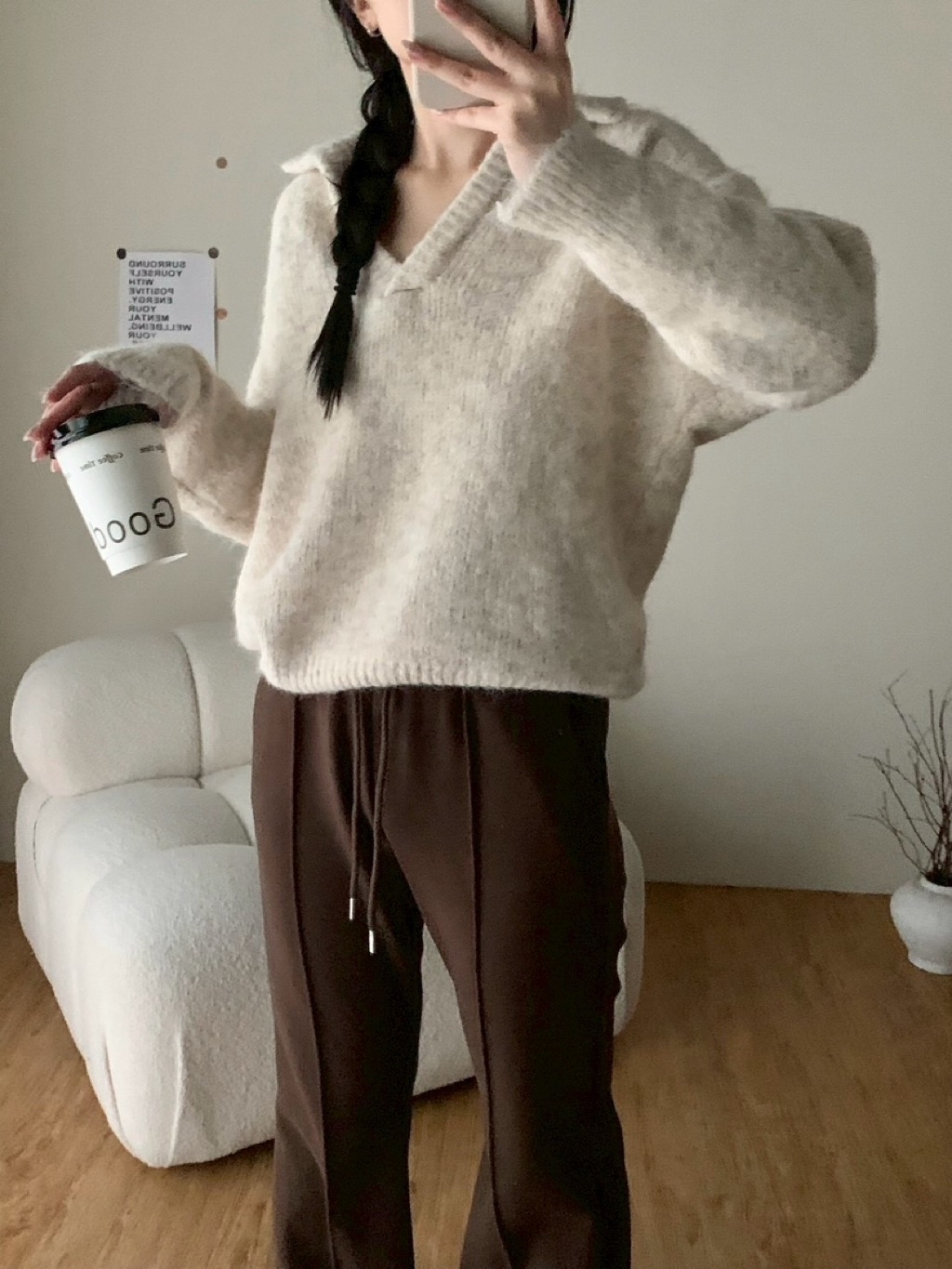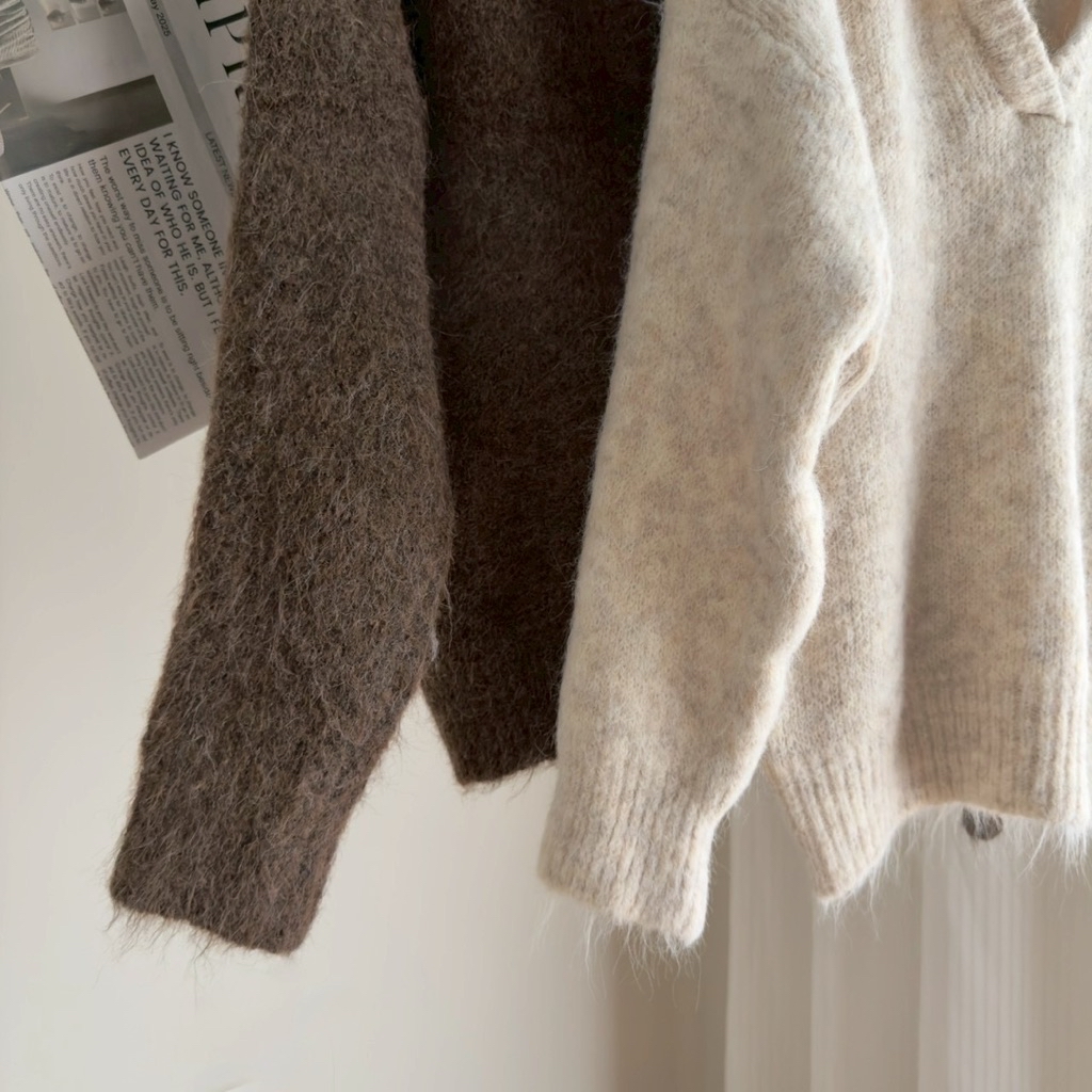 New新款號:685◡̈ 秋冬季新款搭配𝗼𝗼𝘁𝗱奶糯翻領V領毛衣新面料超美🧡顏色:淺灰、咖、駝、杏胸寬:63 衣長:65