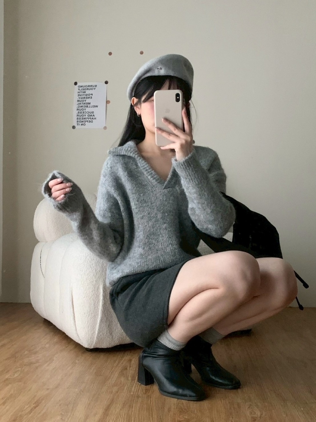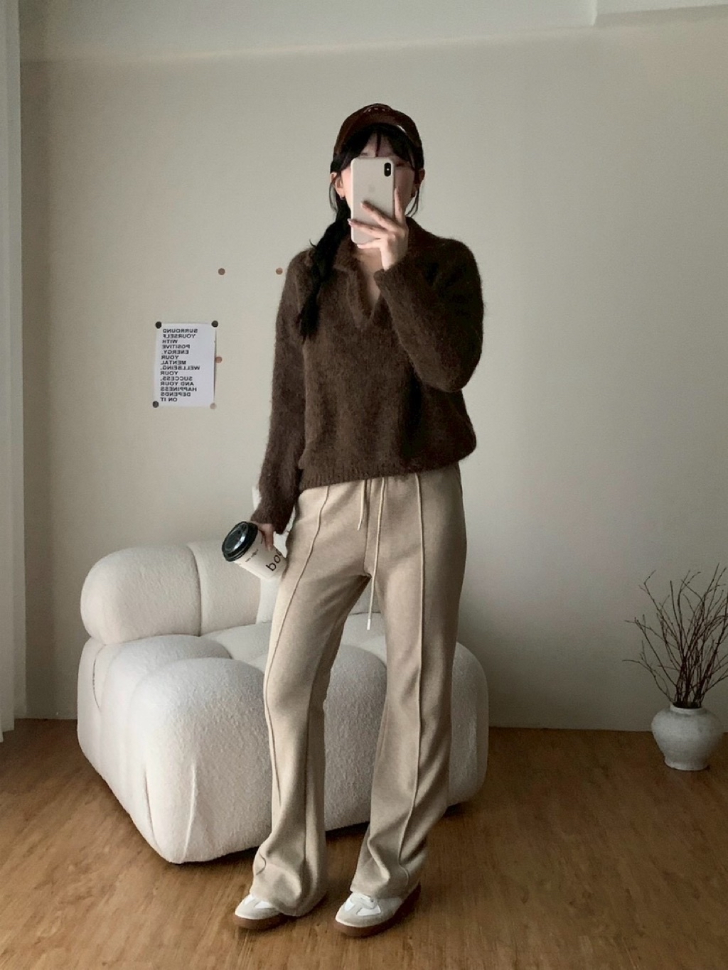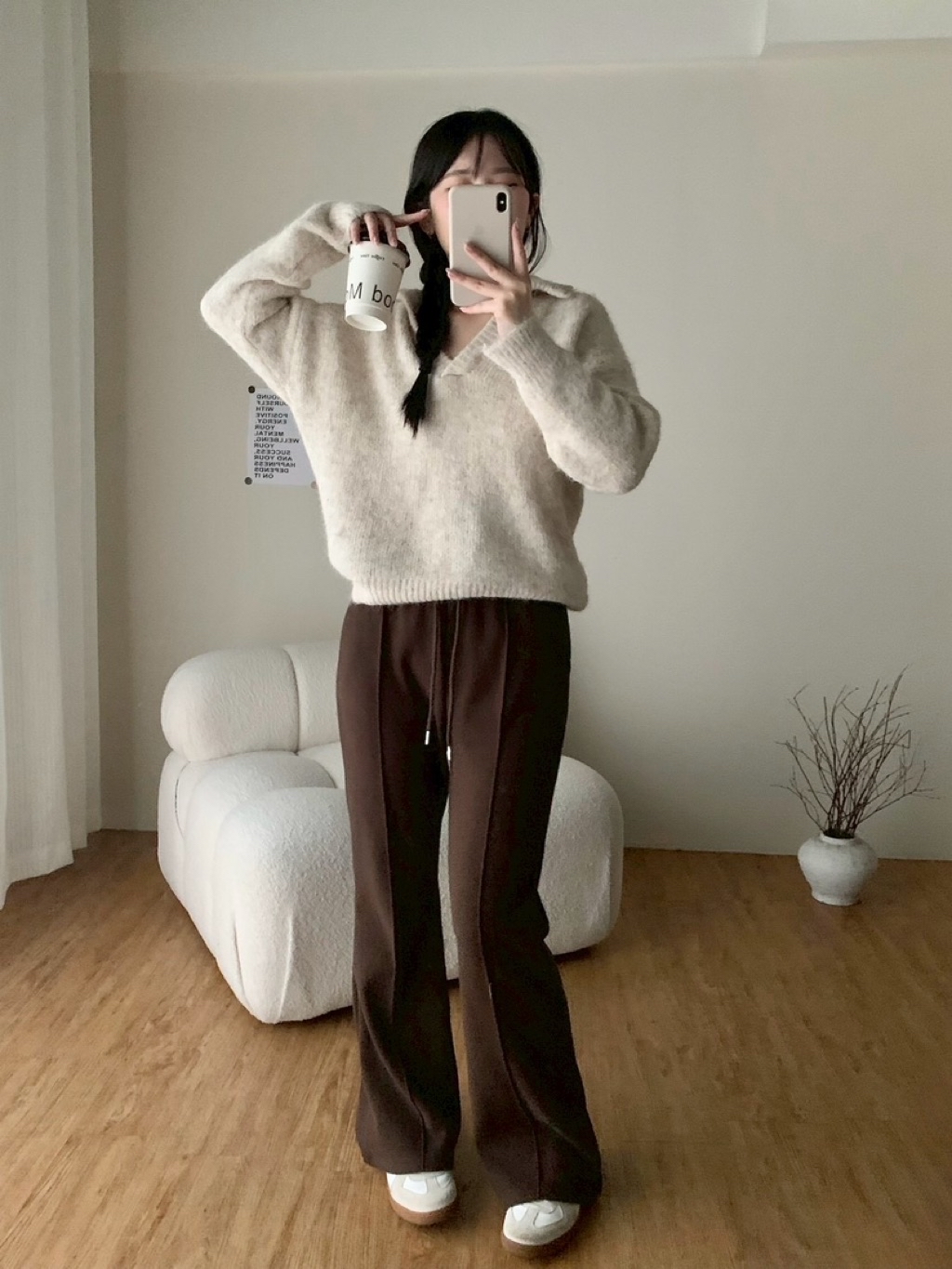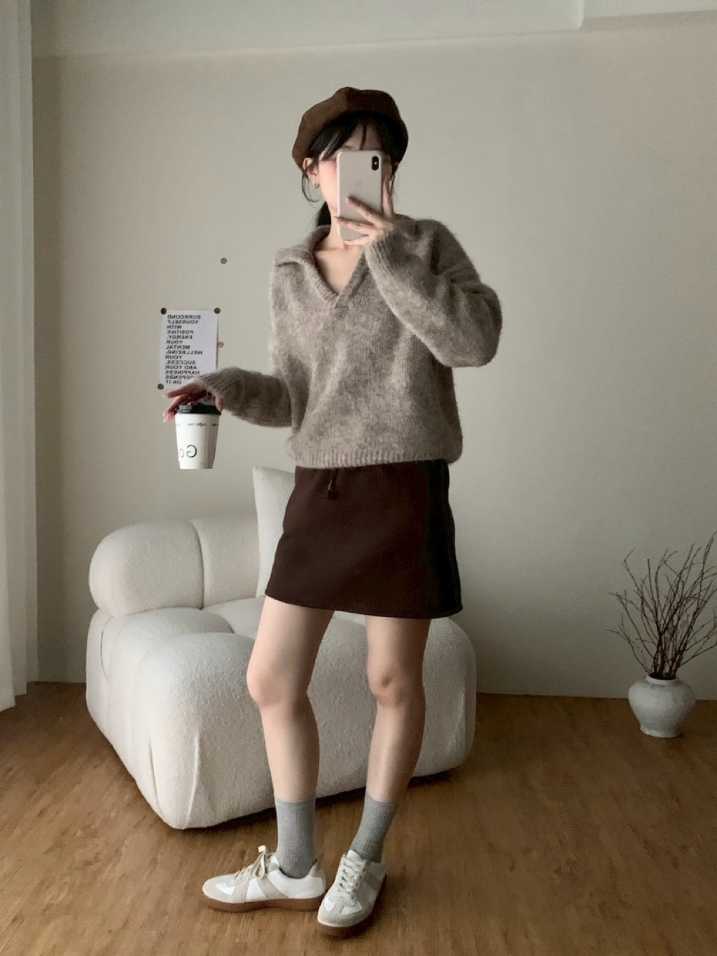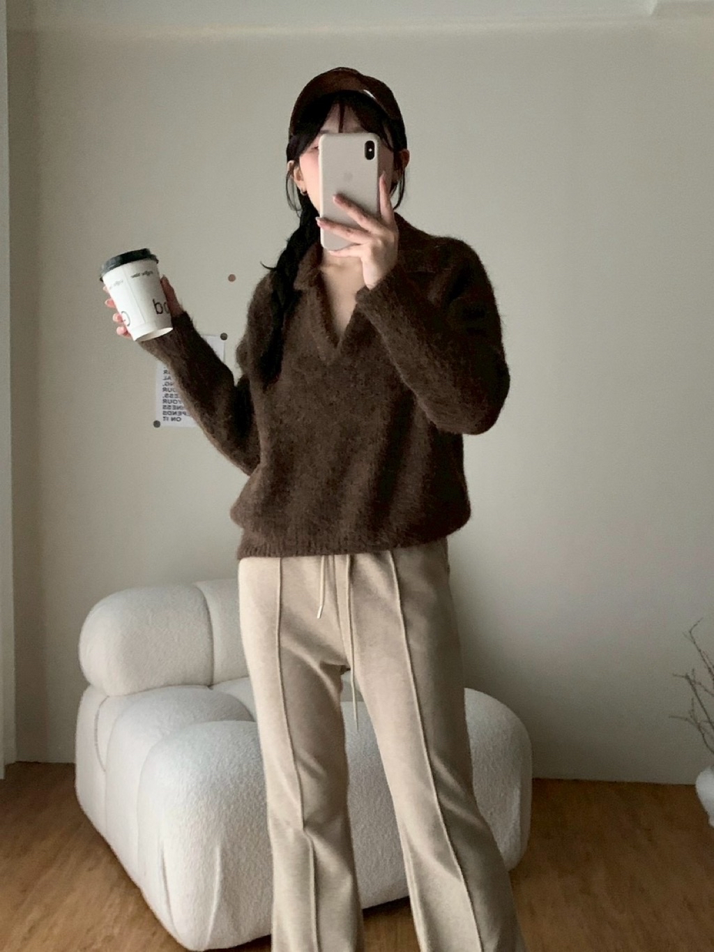 New新款號:685◡̈ 秋冬季新款搭配𝗼𝗼𝘁𝗱奶糯翻領V領毛衣新面料超美🧡顏色:淺灰、咖、駝、杏胸寬:63 衣長:65