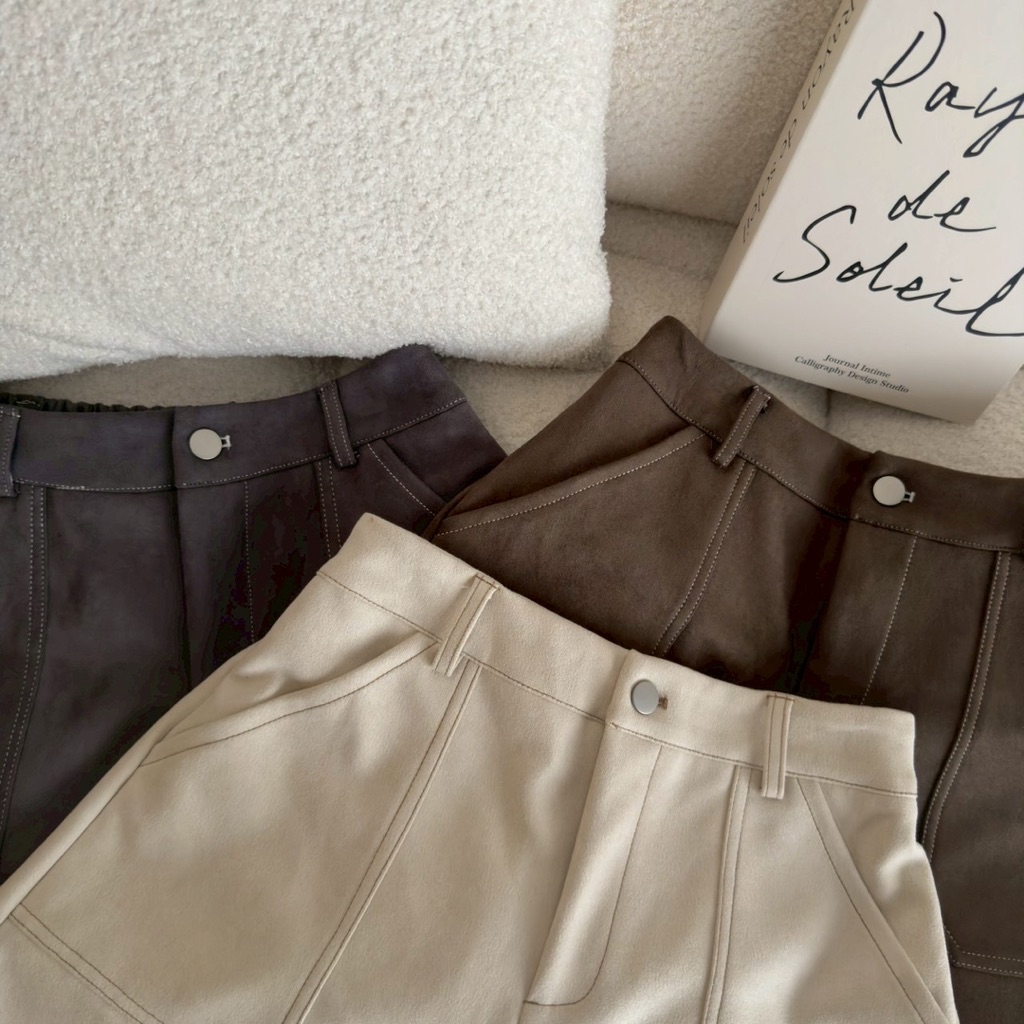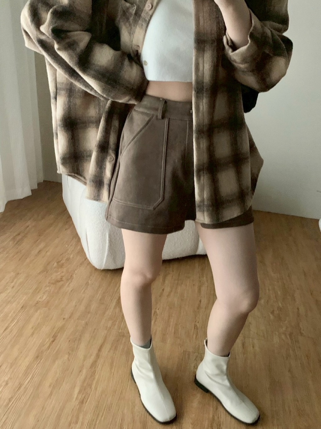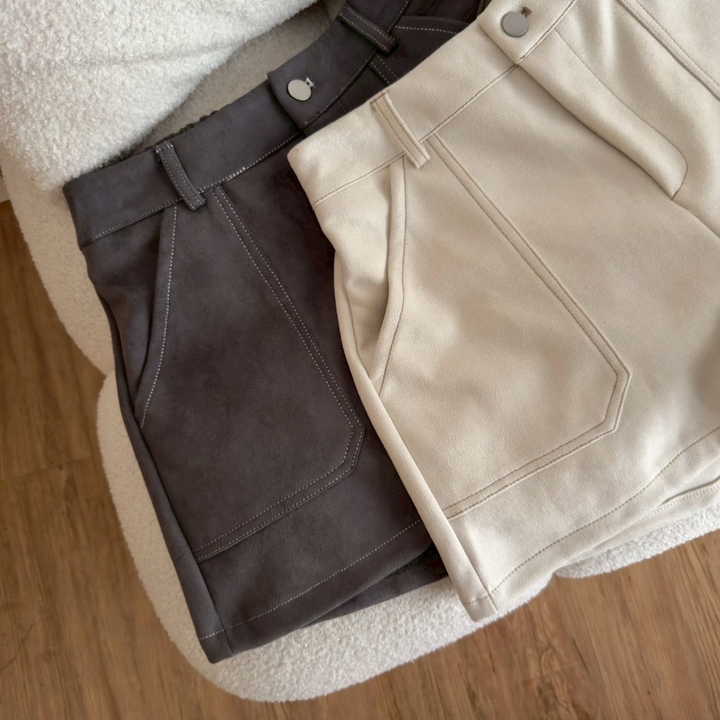 ✨New新款號:65730韓🇰🇷秋款🍂麂皮車線短褲🤍🤍顏色:杏、咖、灰腰圍:35-46 臀圍:50 褲襠:32 褲長:35