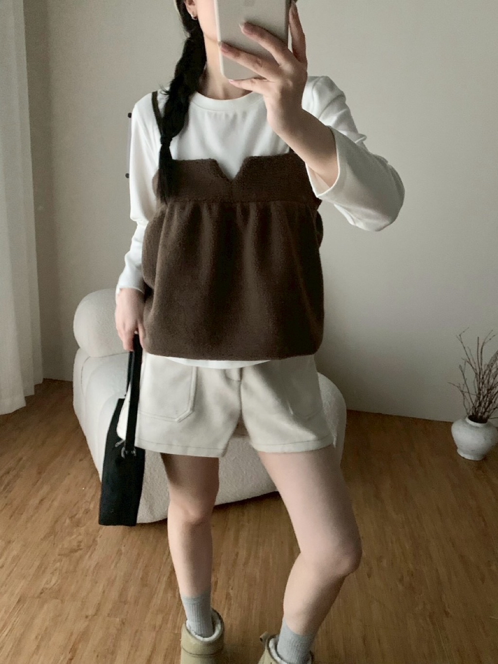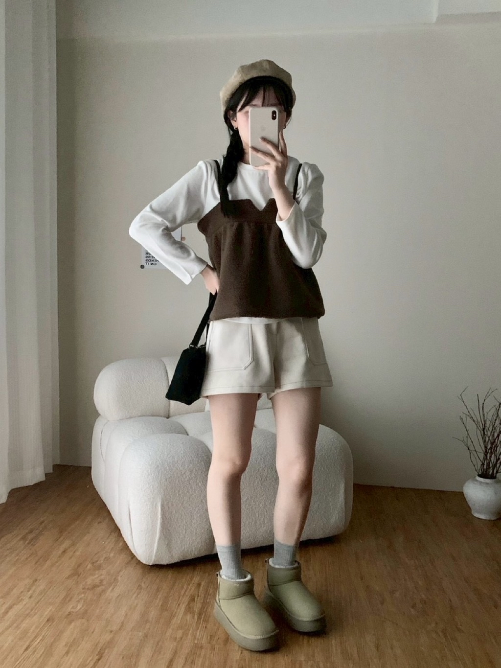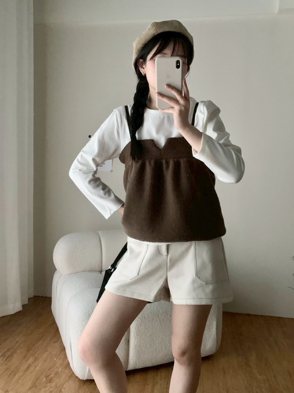 ✨New新款號:65730韓🇰🇷秋款🍂麂皮車線短褲🤍🤍顏色:杏、咖、灰腰圍:35-46 臀圍:50 褲襠:32 褲長:35