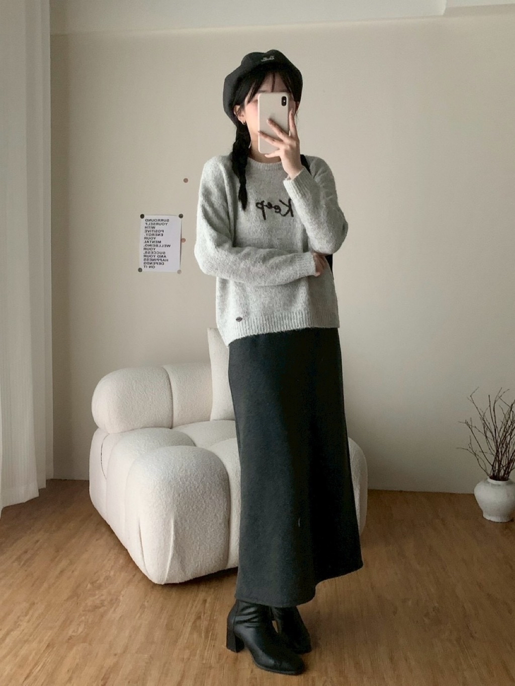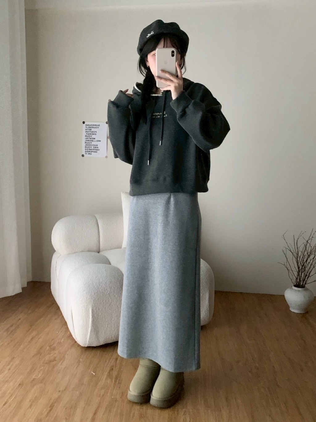 New新款號:98027◡̈ 秋季新款搭配𝗼𝗼𝘁𝗱羊絨加絨半身裙質感波棒(讚)後開衩顏色:米杏、灰杏、卡其、花灰、深灰、黑腰圍:36-47 臀圍:45 裙長:91