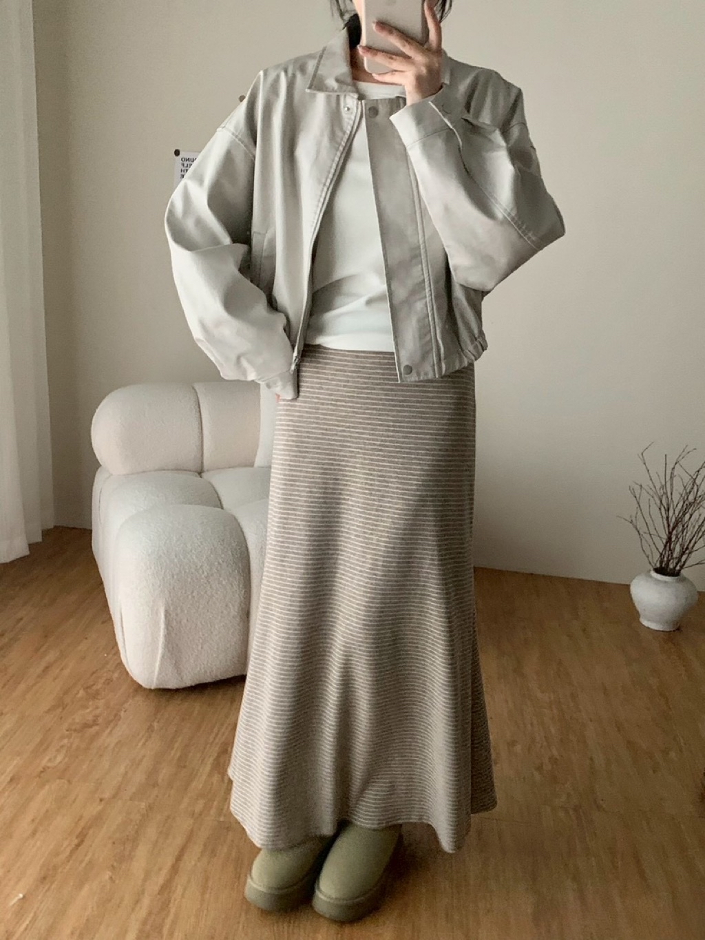 ✨New新款號:78971磨毛橫條魚尾長裙🤍🤍顏色:咖、深灰、杏可腰圍:33-43 臀圍:47 裙長:98