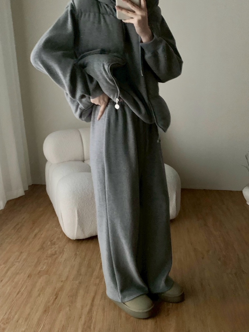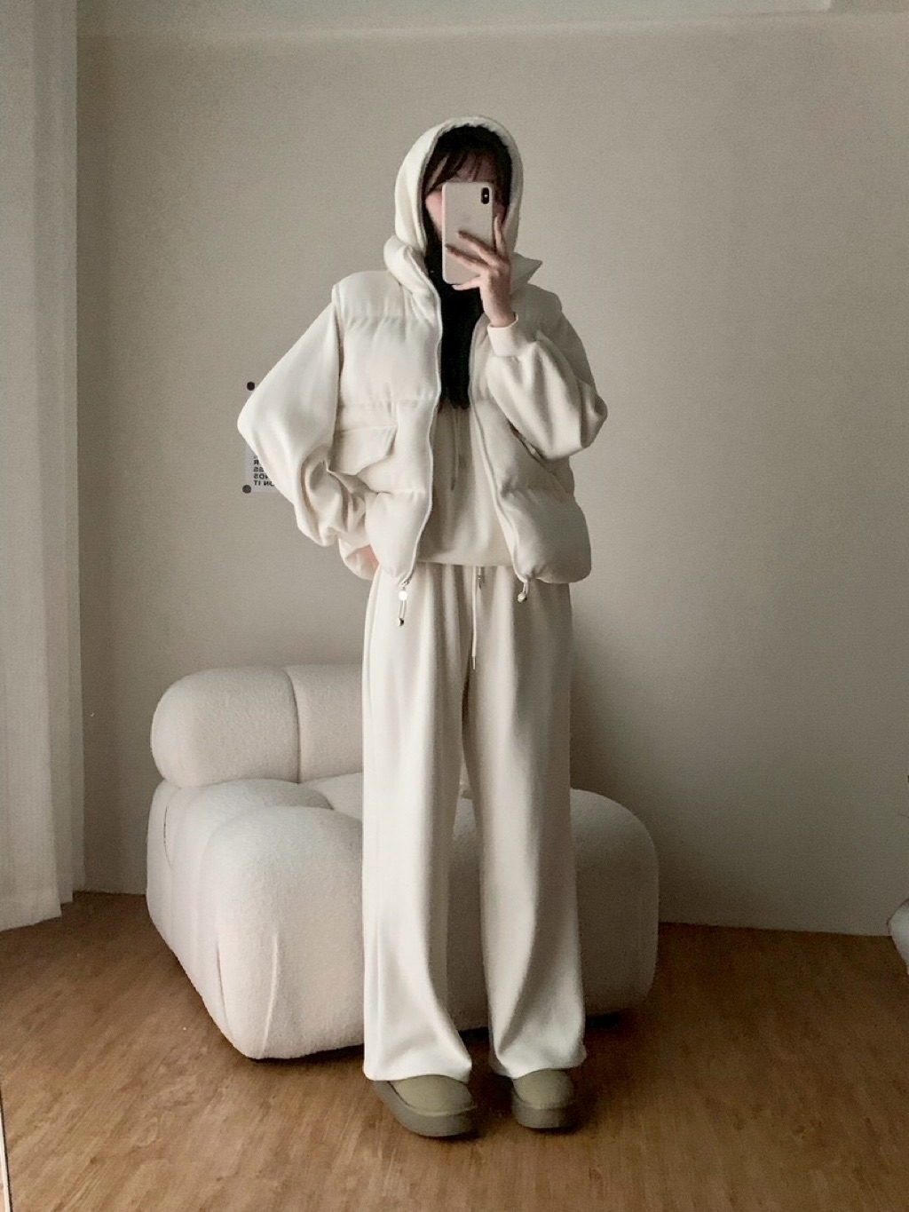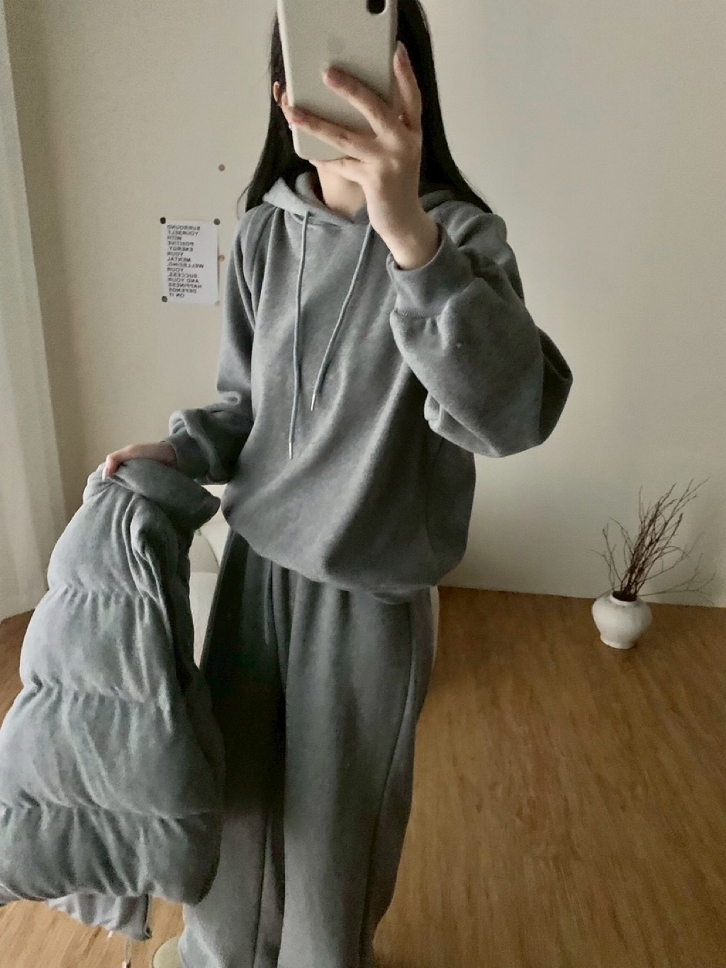 ✨New新款號:5476磨毛鋪棉背心➕連帽大T➕長褲三件套超高CP值🤍最近脆最紅的款🧡🧡🧡🧡火🔥熱登場顏色:灰、卡、粉、杏背心胸寬:60 衣長:60上衣胸寬:62 衣長:62長褲腰圍:34-53 臀圍:56 褲襠:33 褲長:100