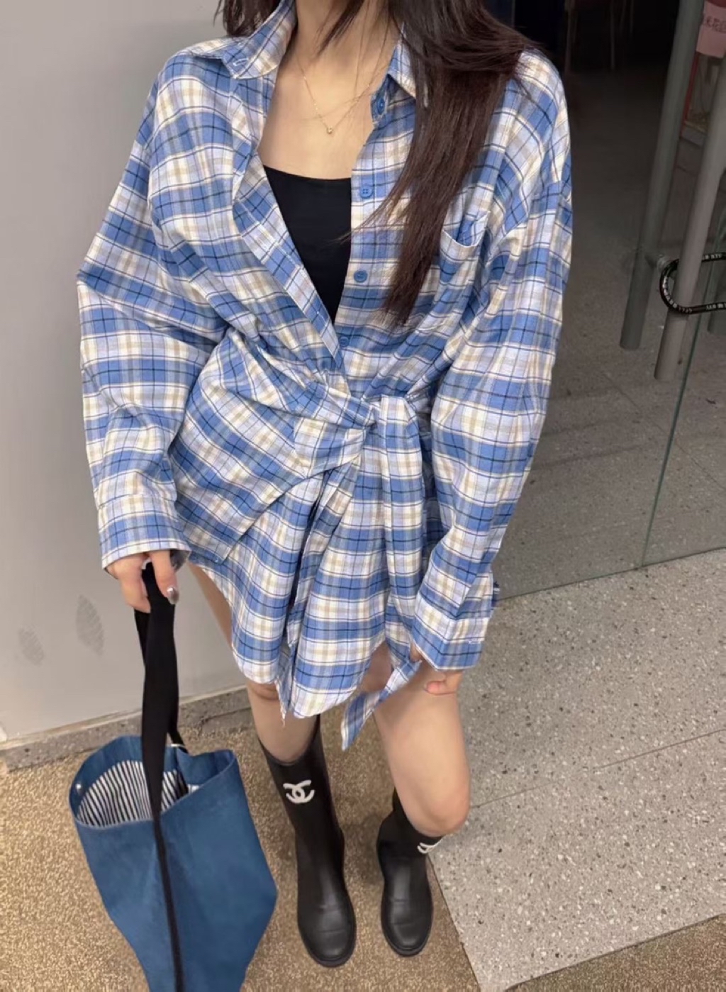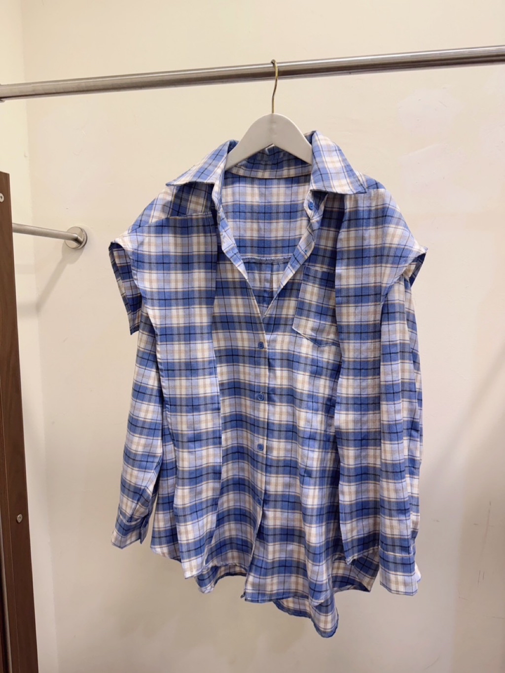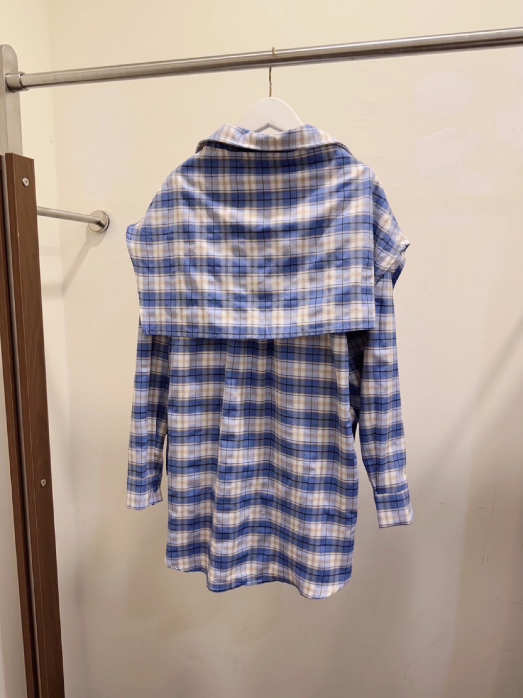🩷2026 S/S ɴᴇᴡ ᴄᴏʟʟᴇᴄᴛɪᴏɴ 🩷 格子綁帶造型襯衫 #9040可以有披肩的穿法 也可以綁在腰間搭配短褲會有洋裝的效果有一點帥氣有一點時髦的好看✔️ᴄᴏʟᴏʀ:藍 黑✔️sɪᴢᴇ:F 肩55胸60袖51前長75後長78