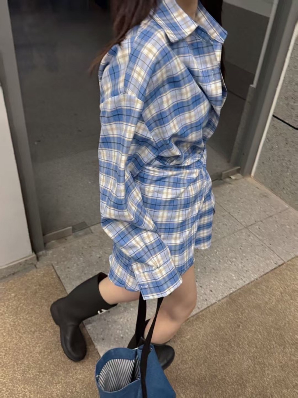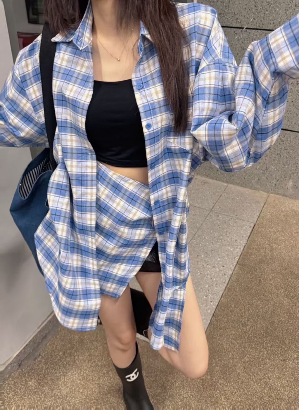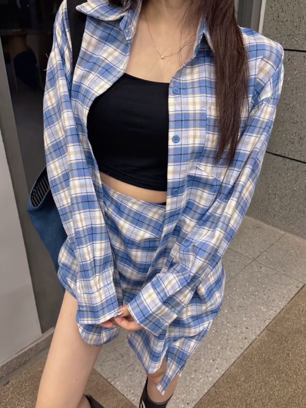 🩷2026 S/S ɴᴇᴡ ᴄᴏʟʟᴇᴄᴛɪᴏɴ 🩷 格子綁帶造型襯衫 #9040可以有披肩的穿法 也可以綁在腰間搭配短褲會有洋裝的效果有一點帥氣有一點時髦的好看✔️ᴄᴏʟᴏʀ:藍 黑✔️sɪᴢᴇ:F 肩55胸60袖51前長75後長78