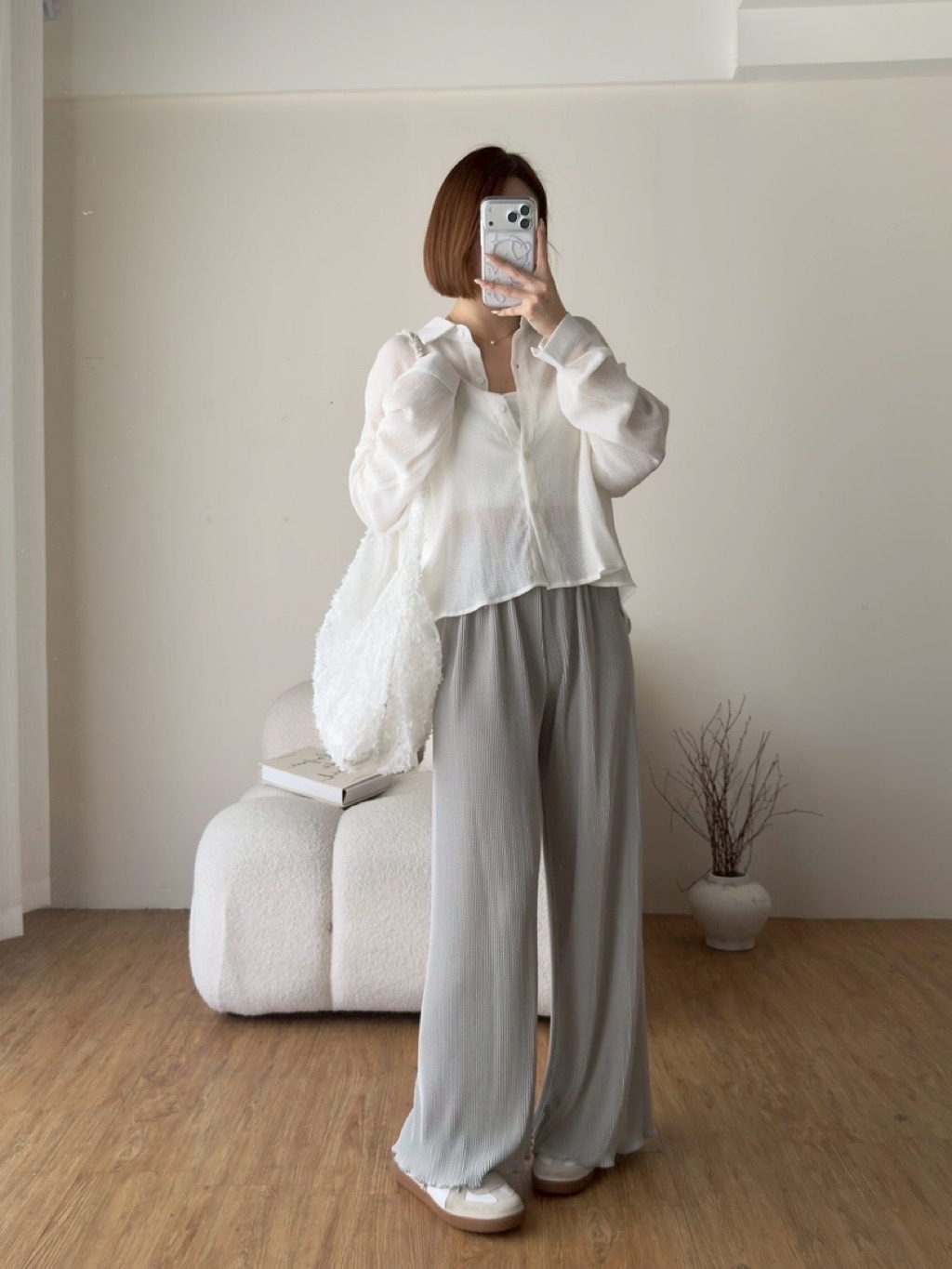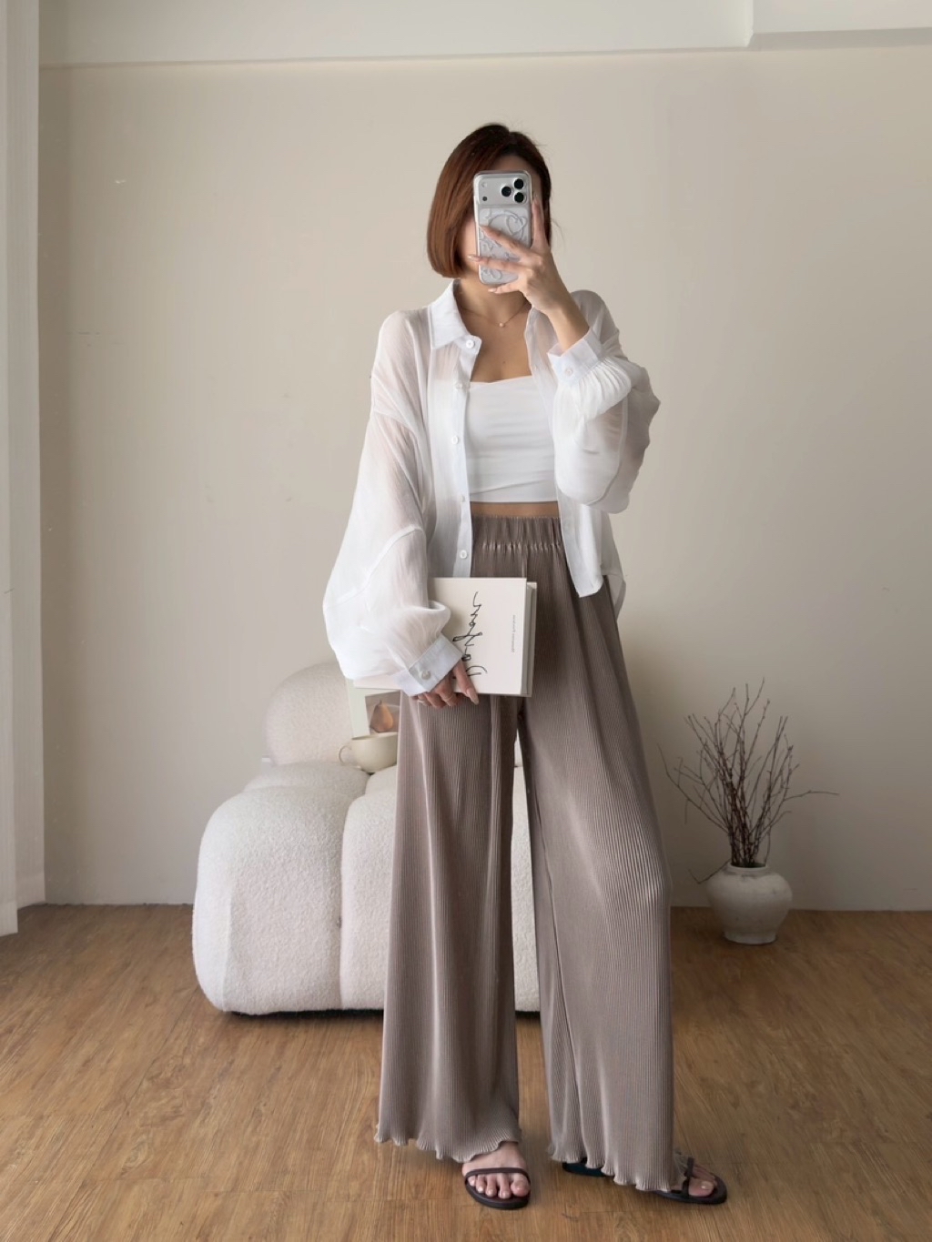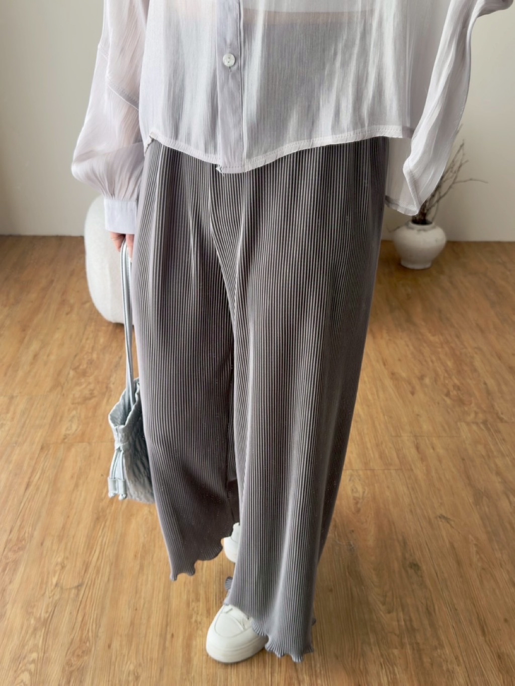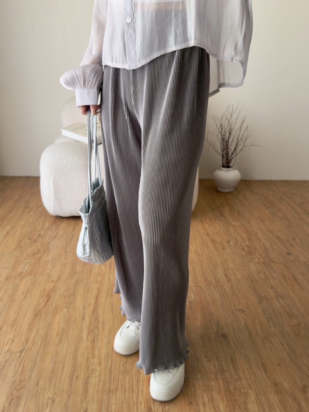 ✨New新款號:8762韓🇰🇷春季新款🌸細壓褶水母長褲🤍🤍面料質感敲頂顏色:淺灰、深灰、咖、黑腰圍:32-66 臀圍:64 褲襠:35 褲長:99