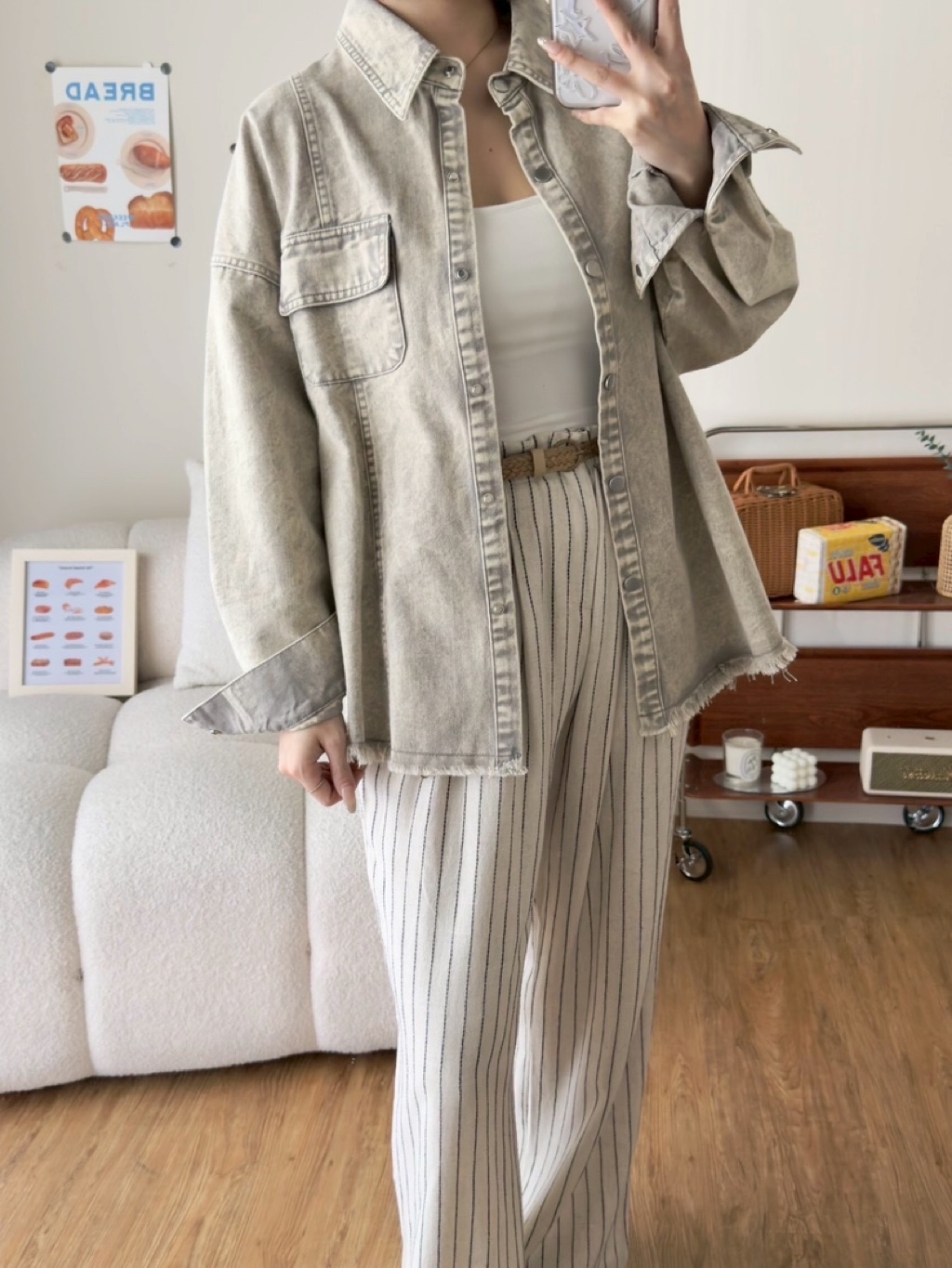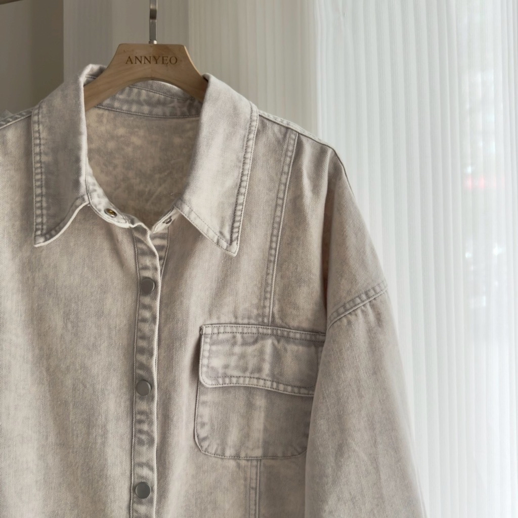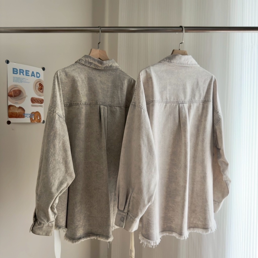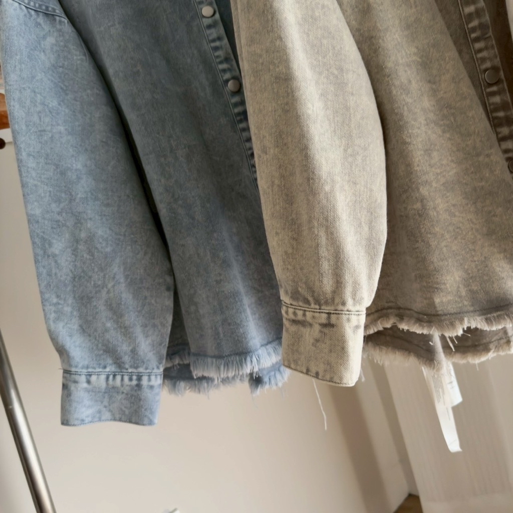 New新款號:9569◡̈ 春夏季新款搭配𝗼𝗼𝘁𝗱雙口袋暈染洗水牛仔外套質感做工超頂(好厲害)顏色:灰、淺灰、藍、粉胸寬:61 前長:68 (含不修邊) 後長:75(含不修邊