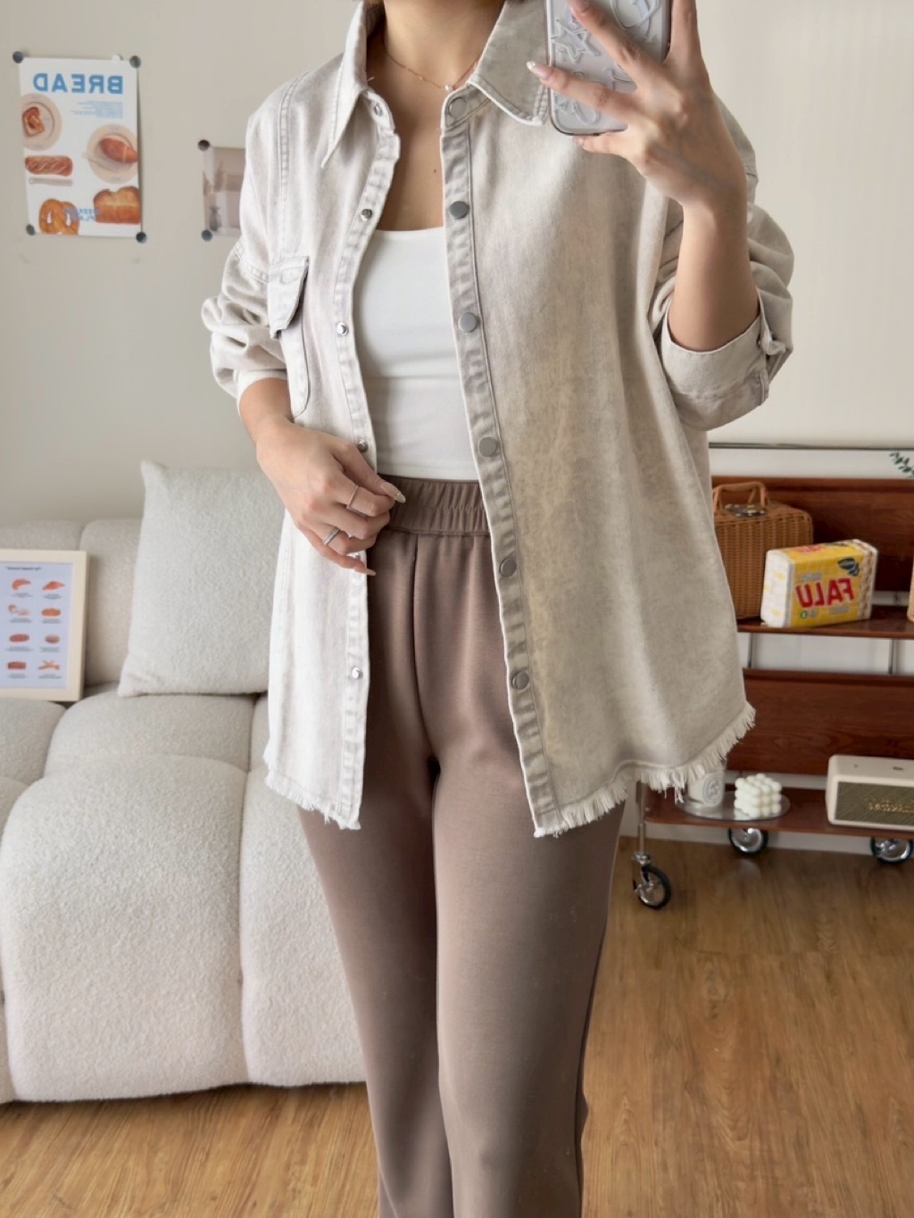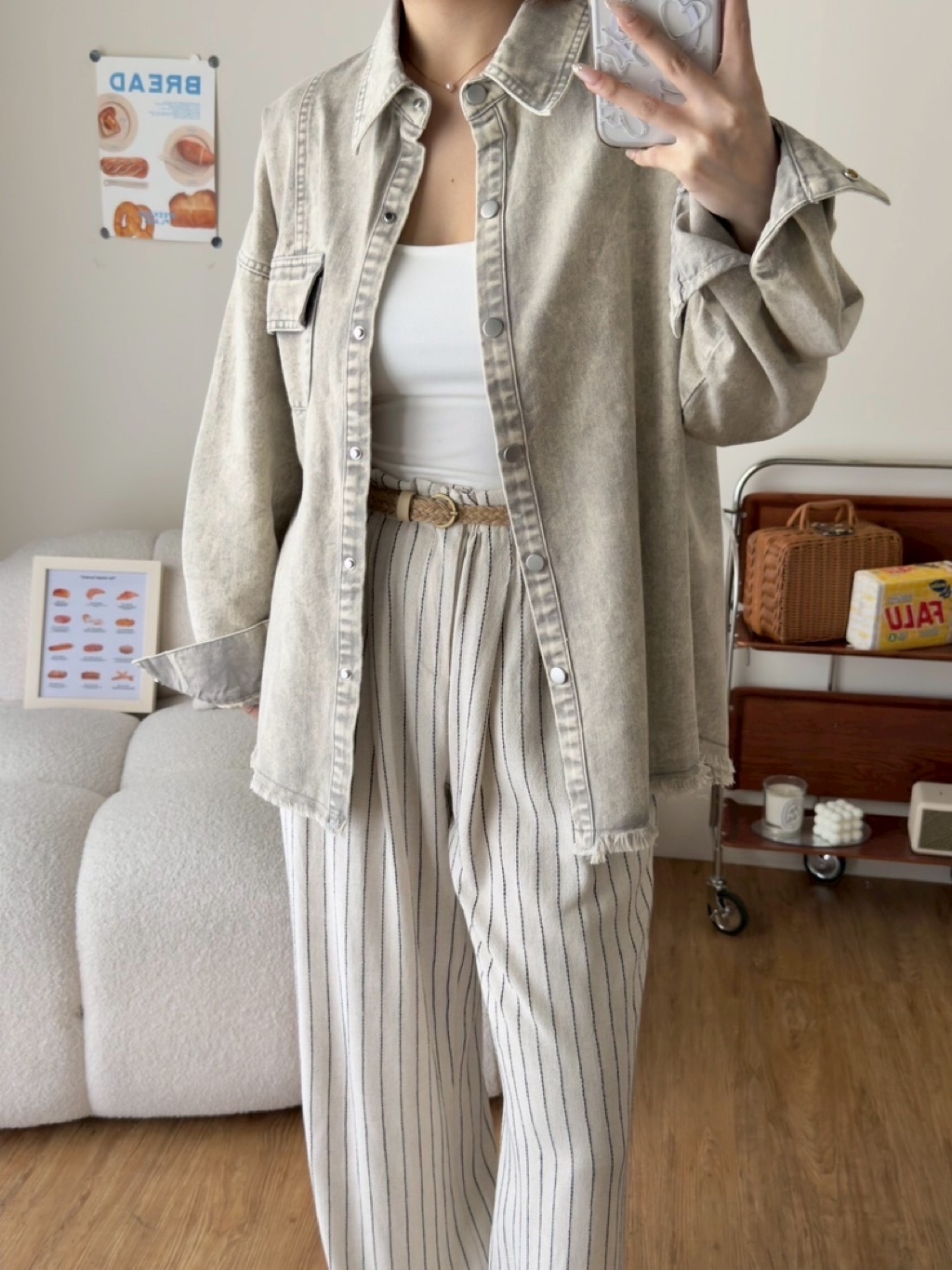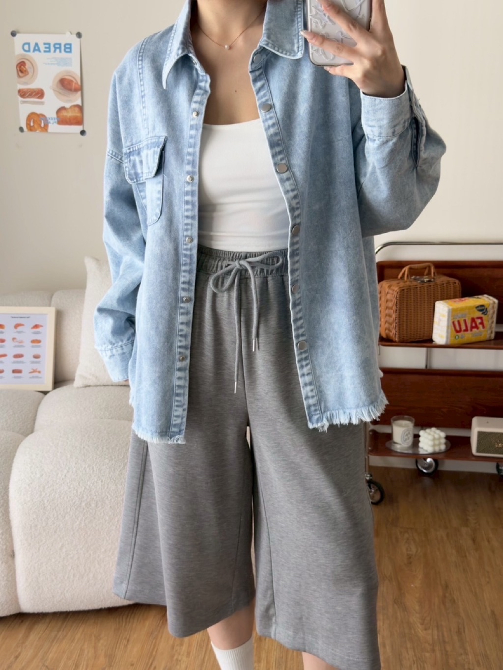 New新款號:9569◡̈ 春夏季新款搭配𝗼𝗼𝘁𝗱雙口袋暈染洗水牛仔外套質感做工超頂(好厲害)顏色:灰、淺灰、藍、粉胸寬:61 前長:68 (含不修邊) 後長:75(含不修邊