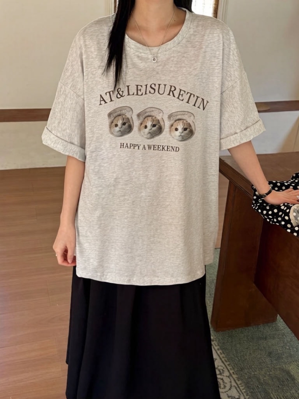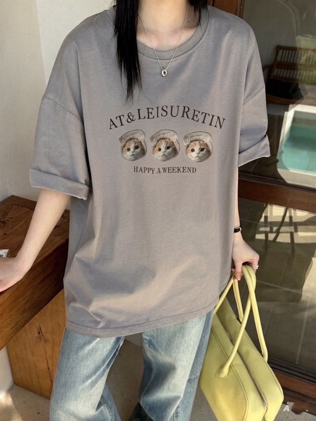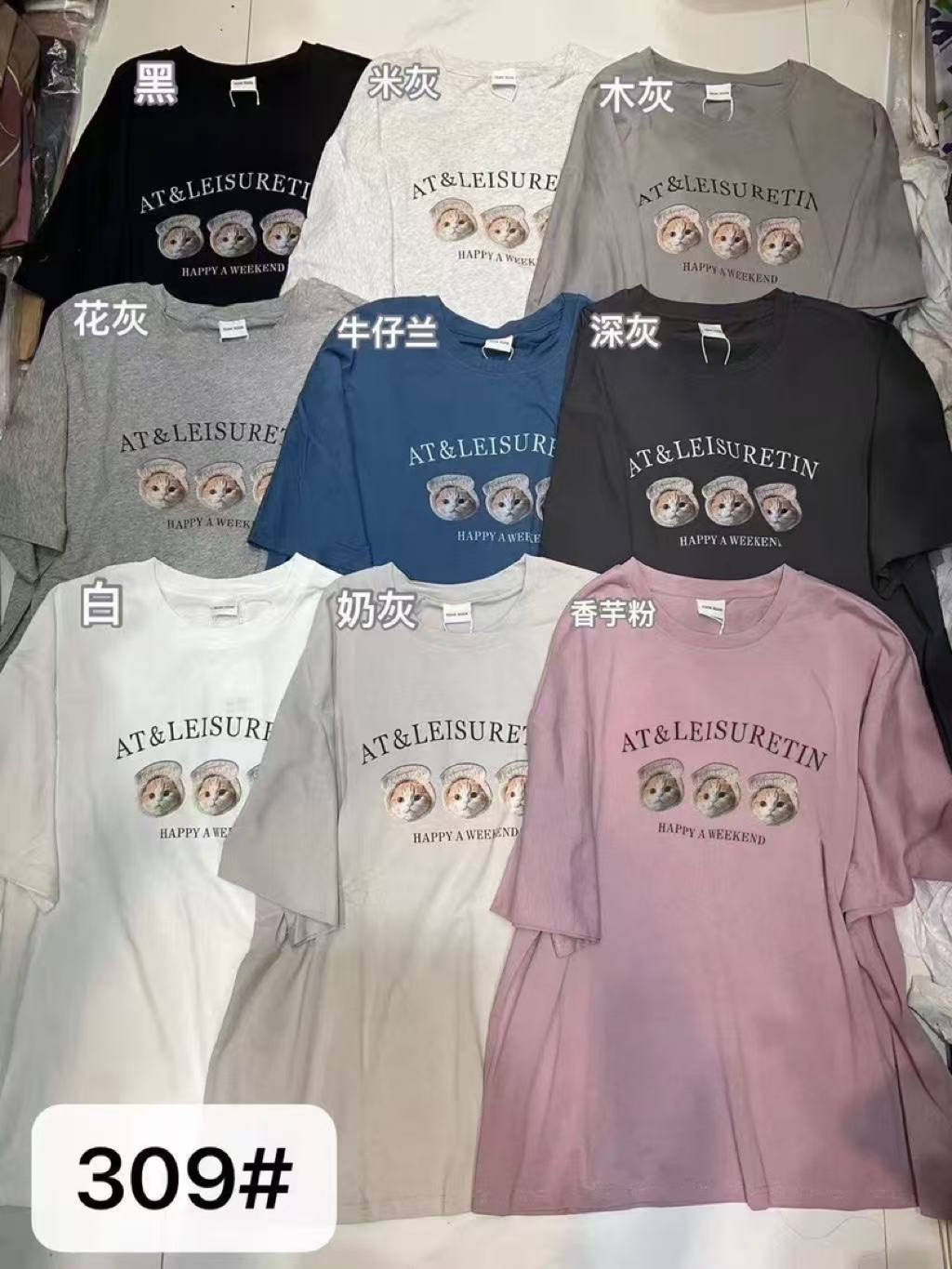 New新款號:309韓🇰🇷春夏款🍋吐司貓咪大T顏色:米灰、木灰、花灰、深灰、白、奶灰、粉胸寬:68 衣長:75