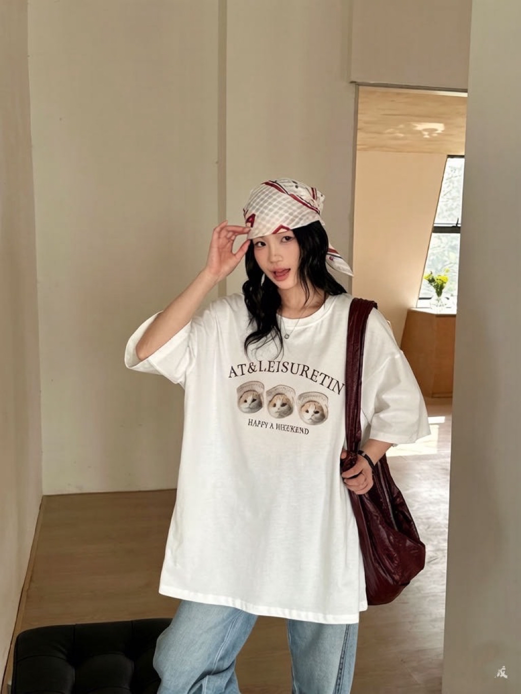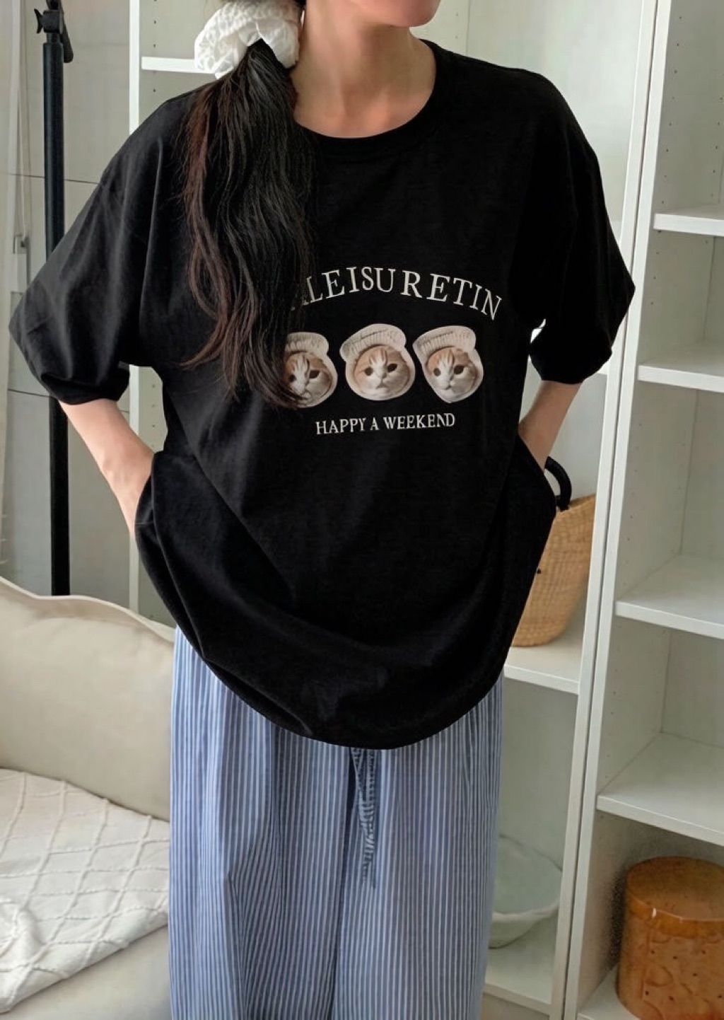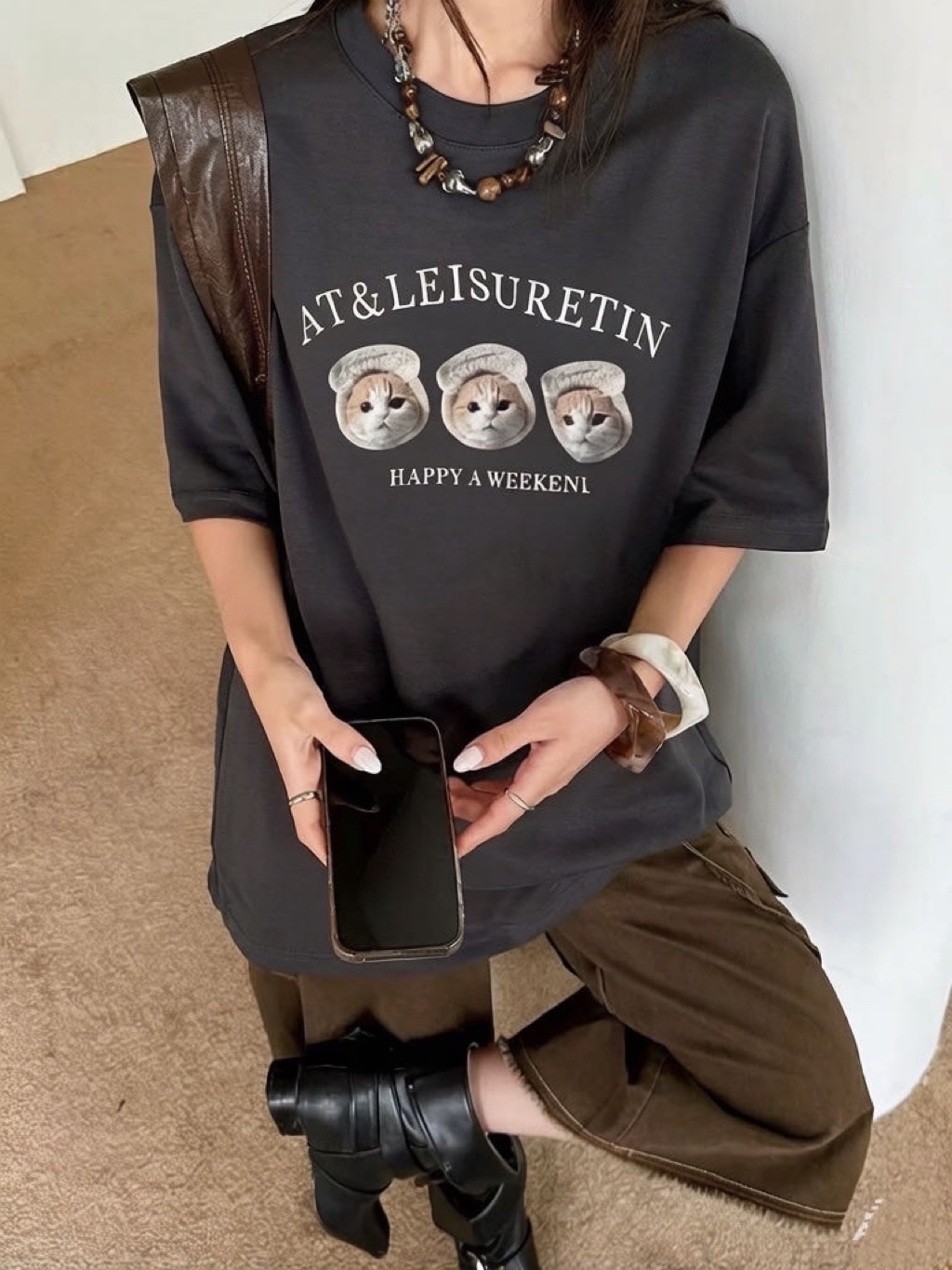 New新款號:309韓🇰🇷春夏款🍋吐司貓咪大T顏色:米灰、木灰、花灰、深灰、白、奶灰、粉胸寬:68 衣長:75