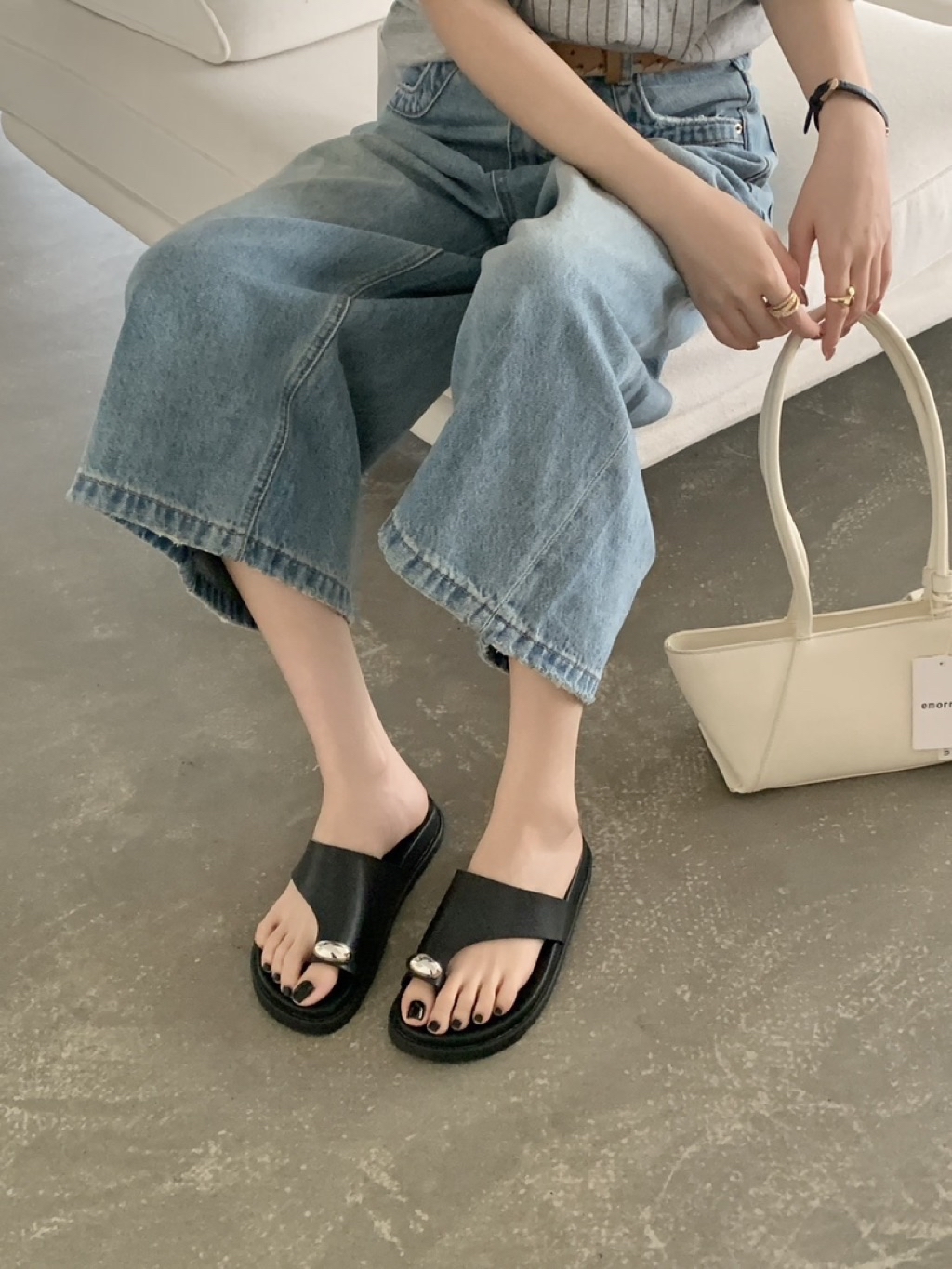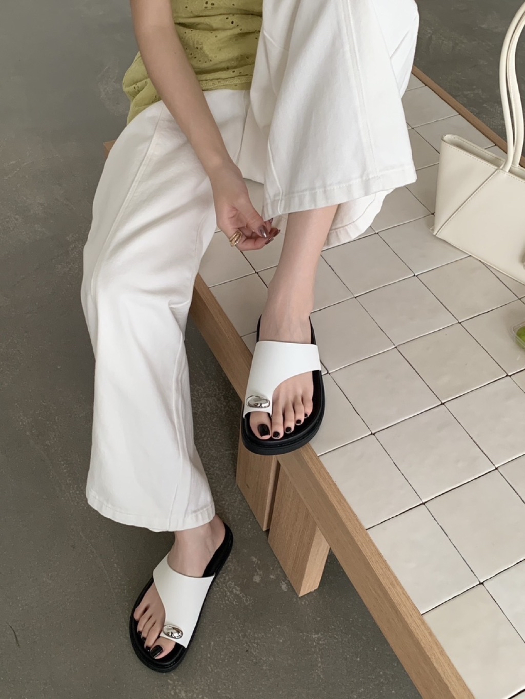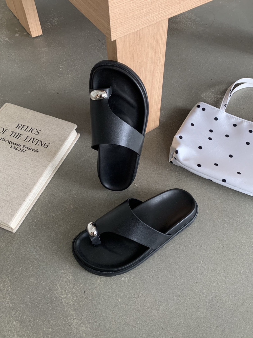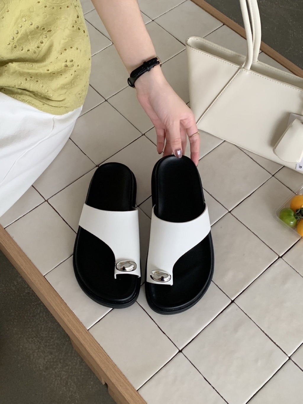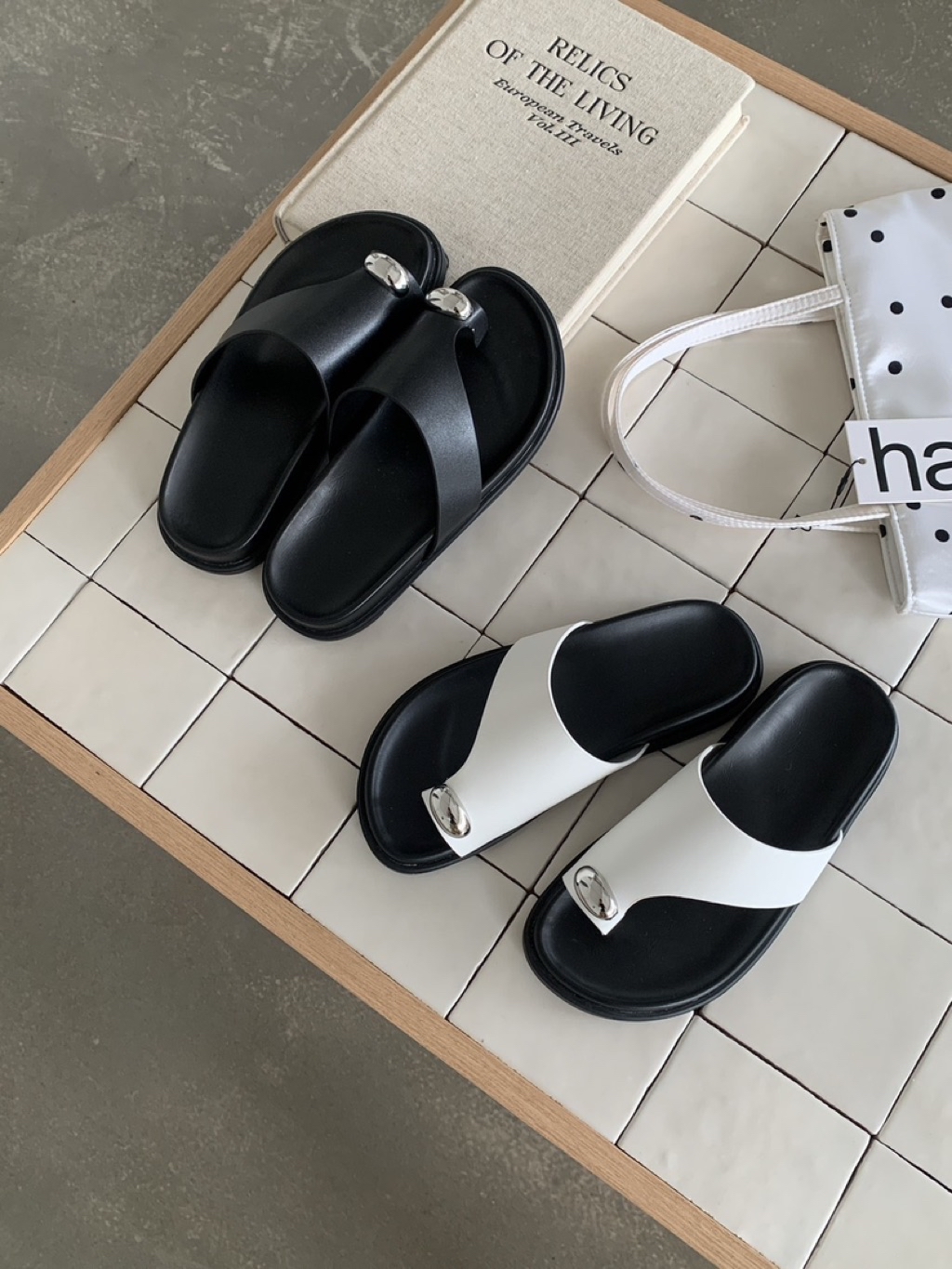 🇰🇷正韓金屬點綴極簡真皮時髦拖鞋