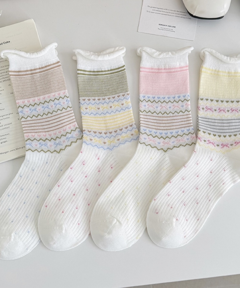 日系波浪捲邊點點圖騰短襪✅貨號:26041109顏色:綠/粉/黃/咖可愛的夏季配色中筒襪搭配涼鞋也好可愛